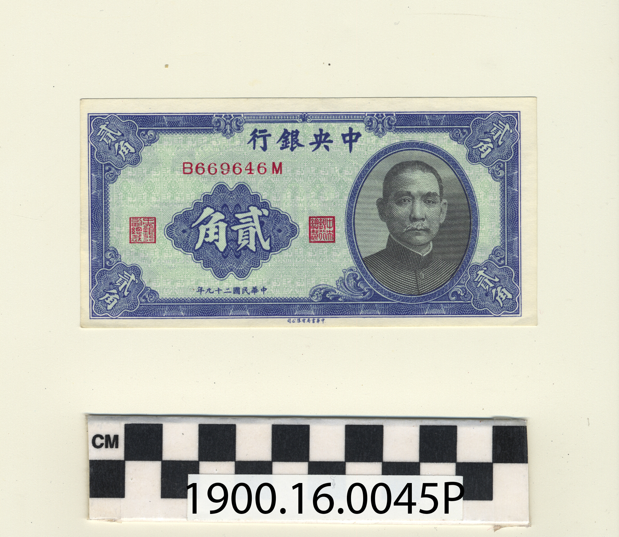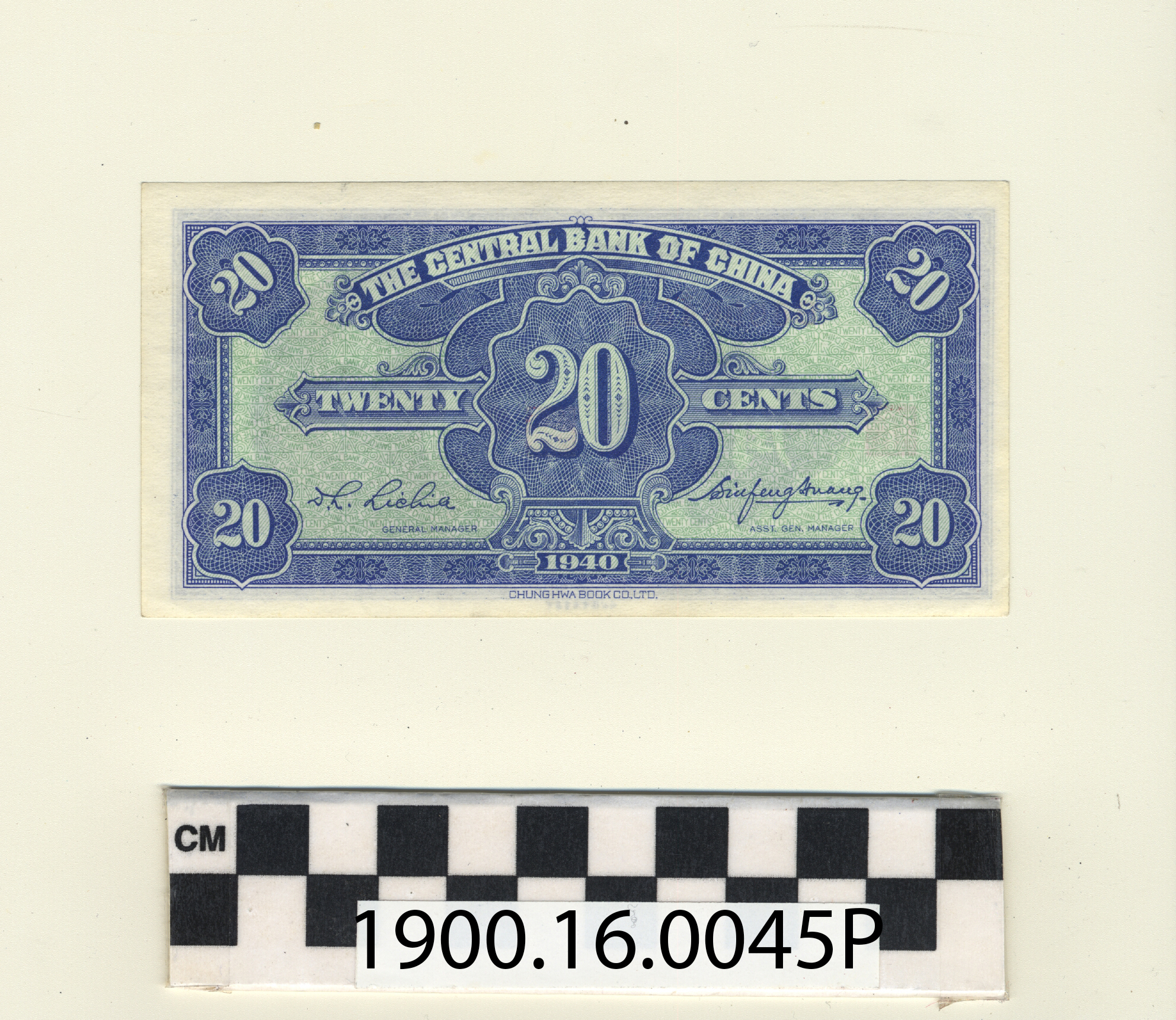 | Artifact Identification | Bank Note: Republic of China, Kuomintang Government, Central Bank of China, 20 Cents (1900.16.0045P) |