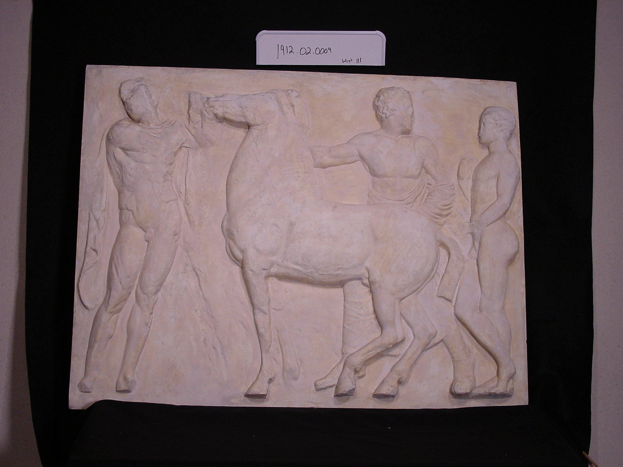 | Artifact Identification | Plaster Cast of West Parthenon Frieze Panel–Two Men and a Boy Standing Beside a Horse (1912.02.0009) |