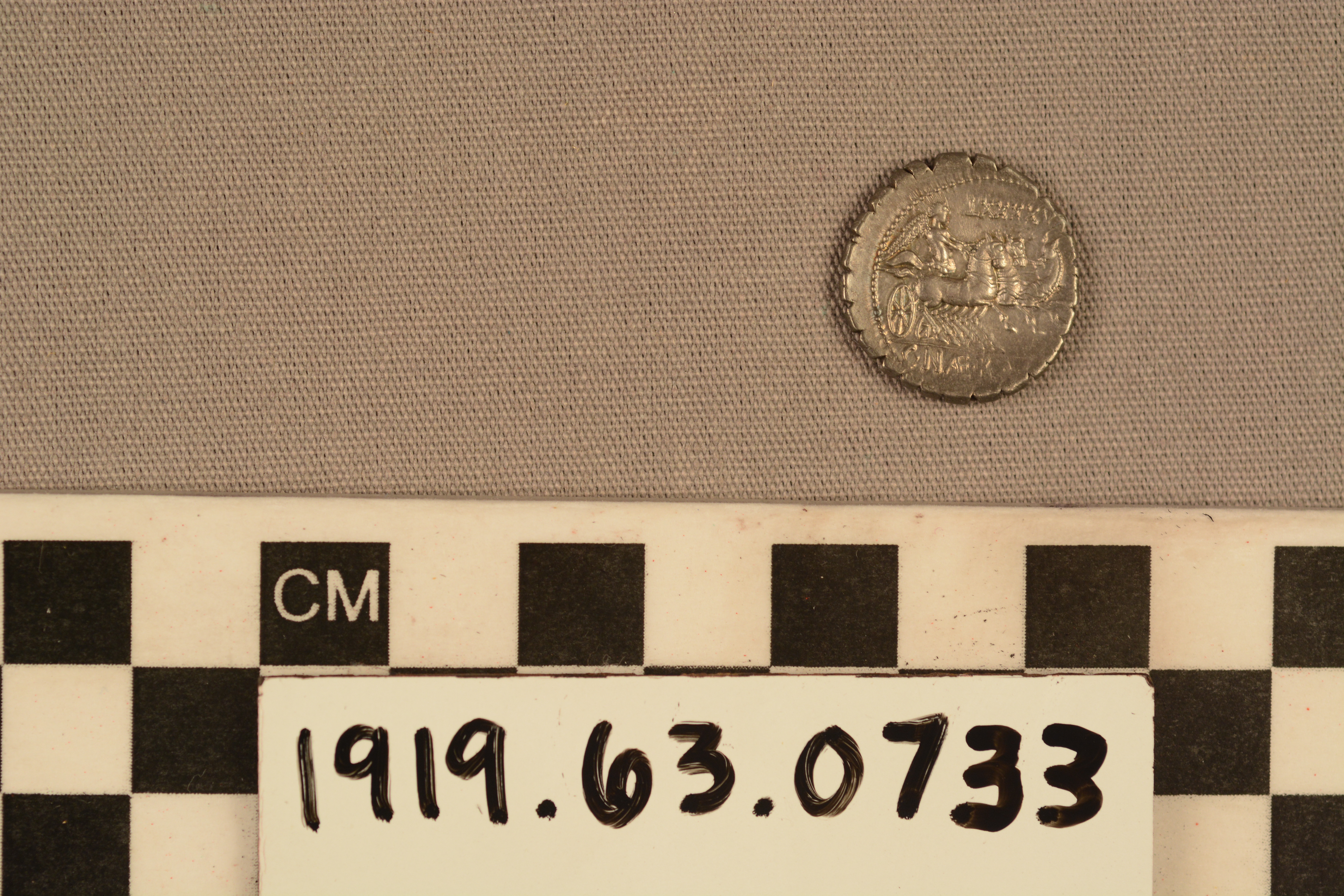 | Artifact Identification | Coin: Denarius Serratus of Rome (1919.63.0733) |