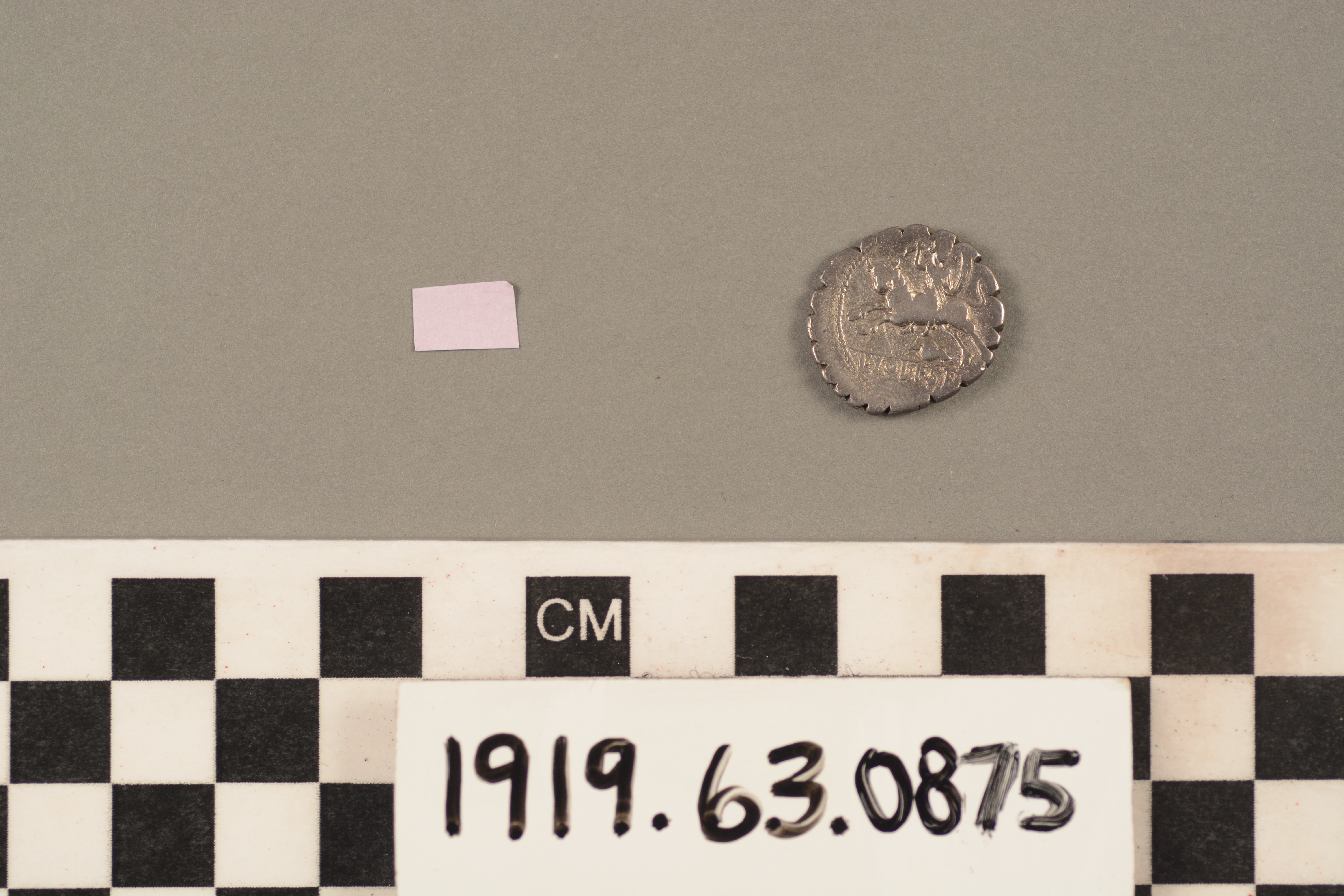 | Artifact Identification | Coin: Denarius Serratus of Rome (1919.63.0875) |