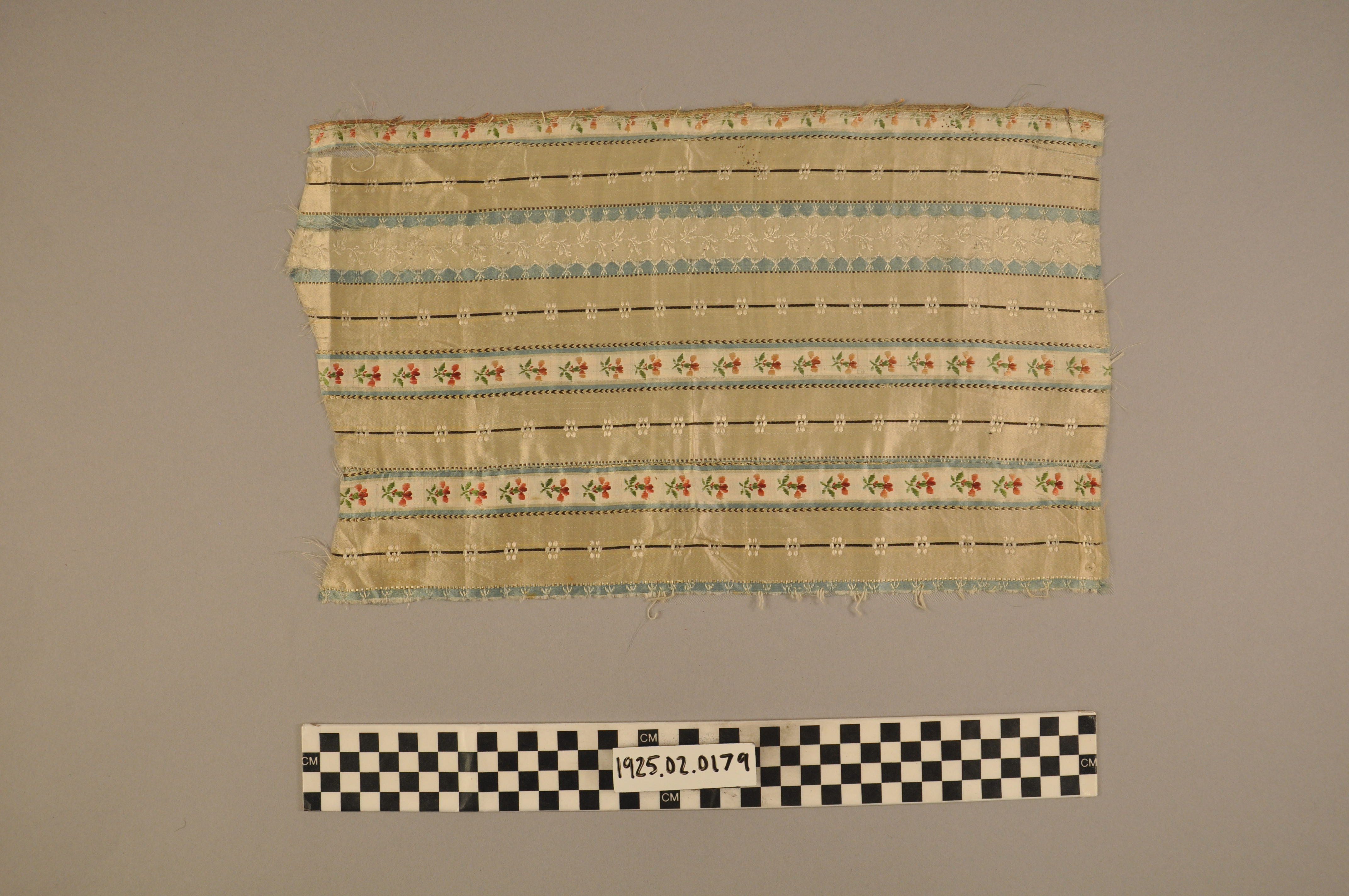 | Artifact Identification | Material Sample: Ribbon Brocade Fragment (1925.02.0179) |