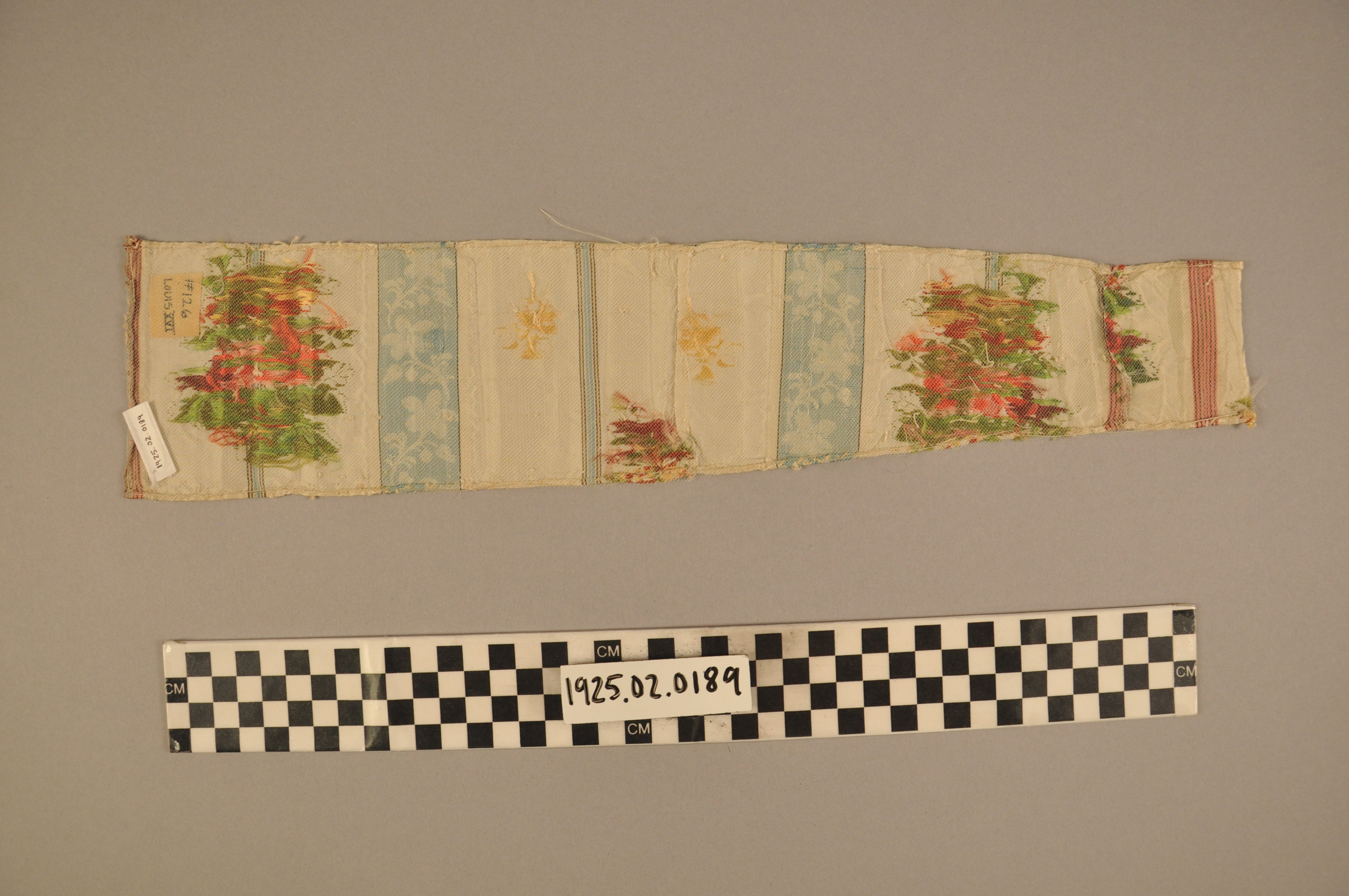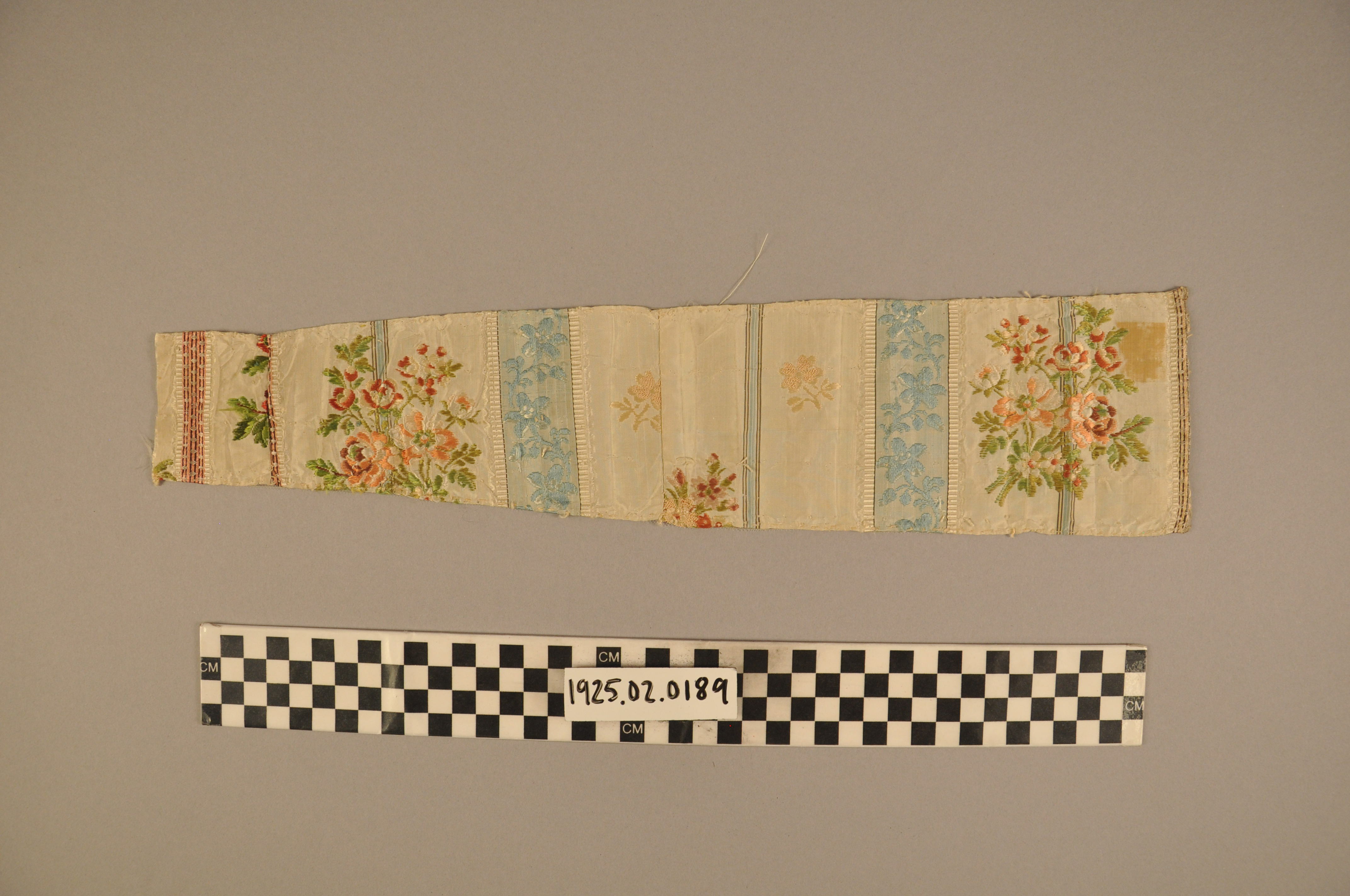 | Artifact Identification | Material Sample: Taffeta Brocade Fragment (1925.02.0189) |