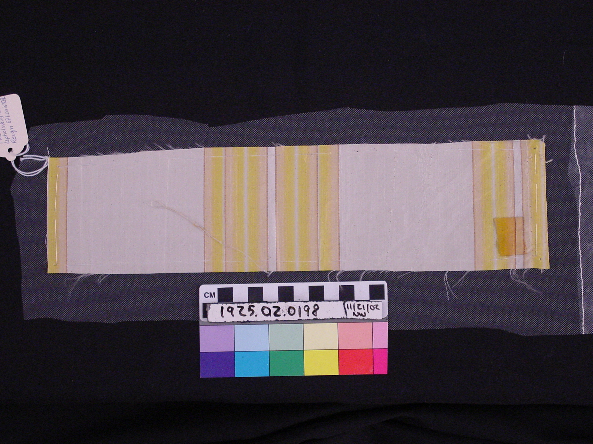 | Artifact Identification | Material Sample: Taffeta Upholstery Fragment (1925.02.0198) |