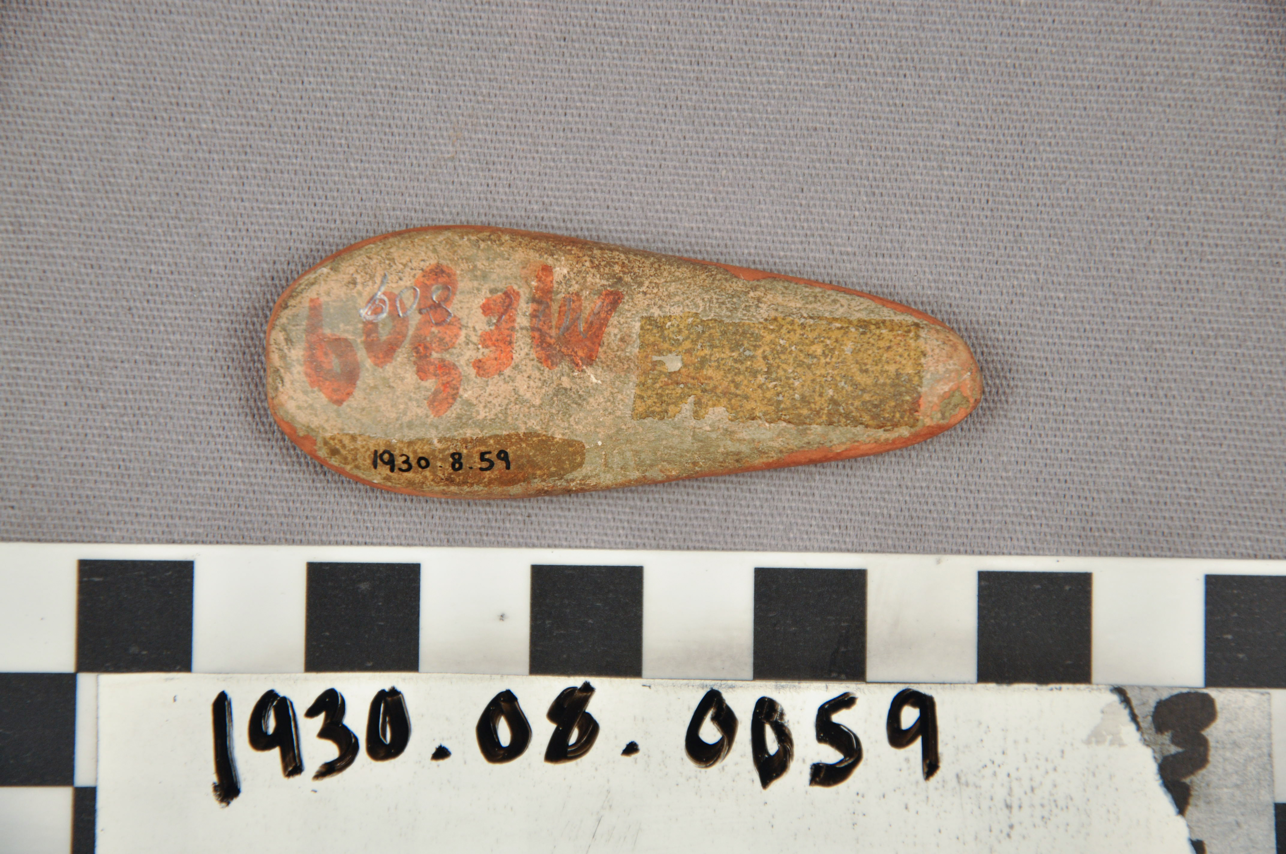 | Artifact Identification | Stone Tool: Painted Pebble (1930.08.0059) |