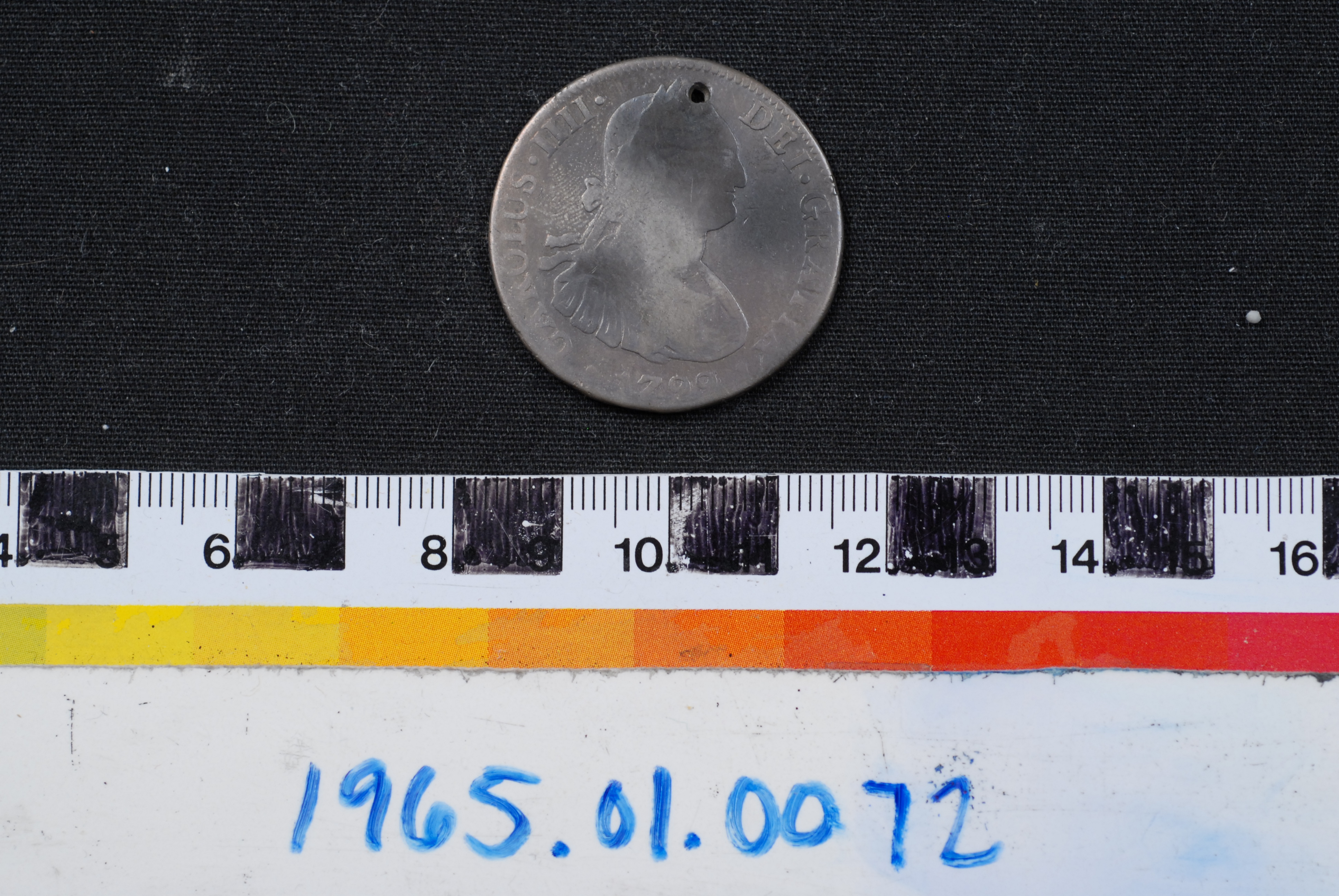 | Artifact Identification | Coin: Kingdom of Spain, 4 Reales (1965.01.0072) |