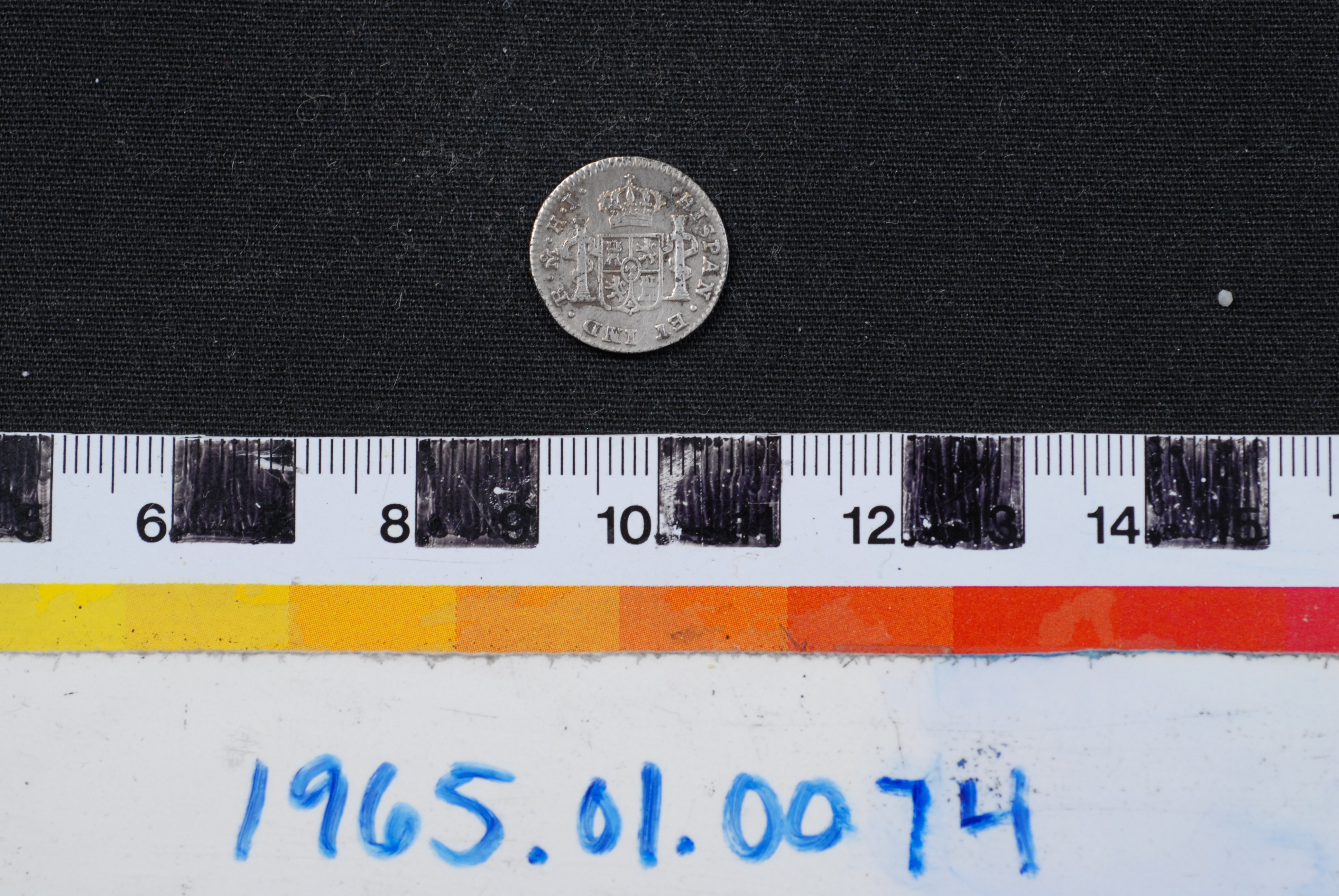 | Artifact Identification | Coin: Kingdom of Spain, 1/2 Reale (1965.01.0074) |