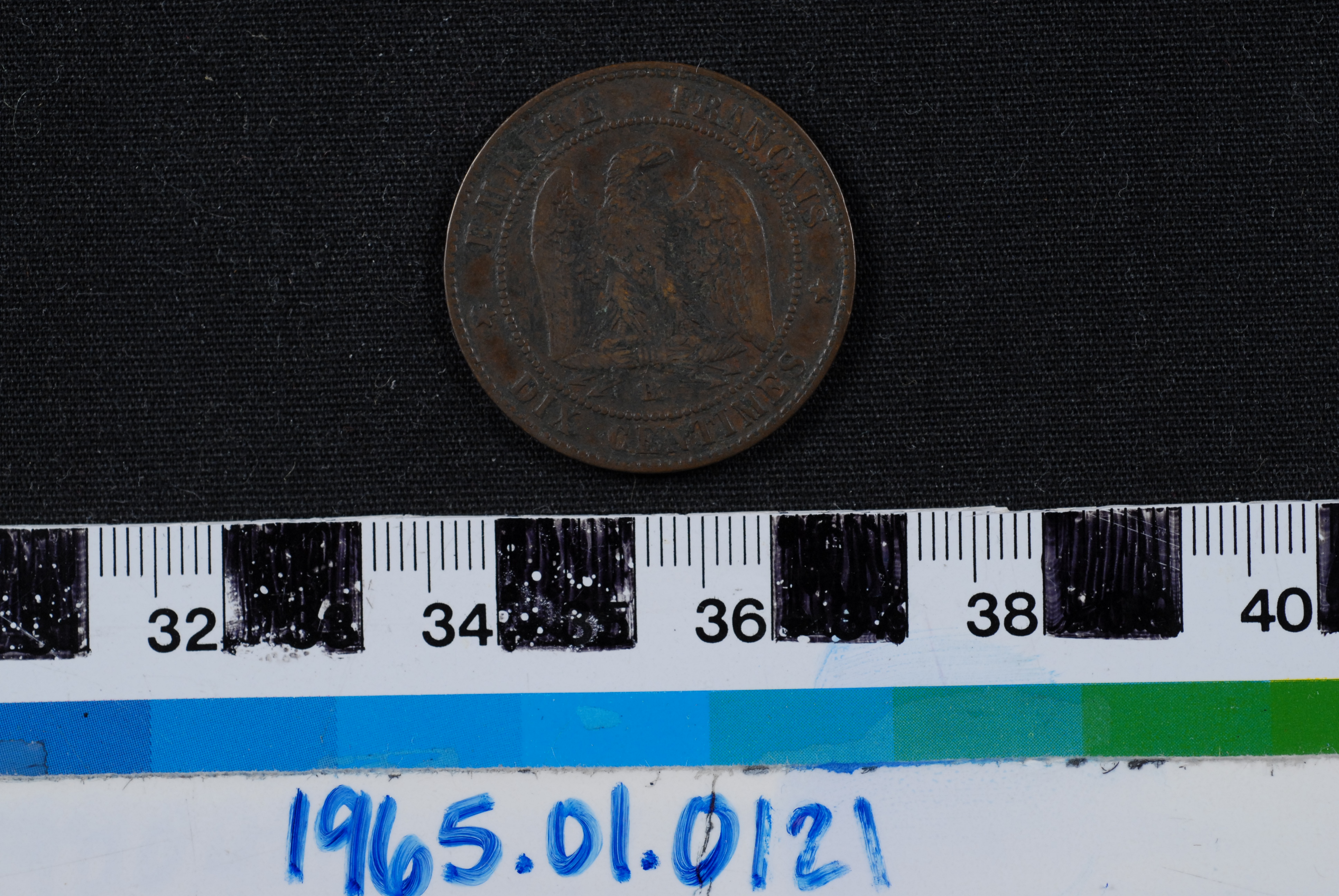 | Artifact Identification | Coin: Second French Empire, 10 Centimes (1965.01.0121) |