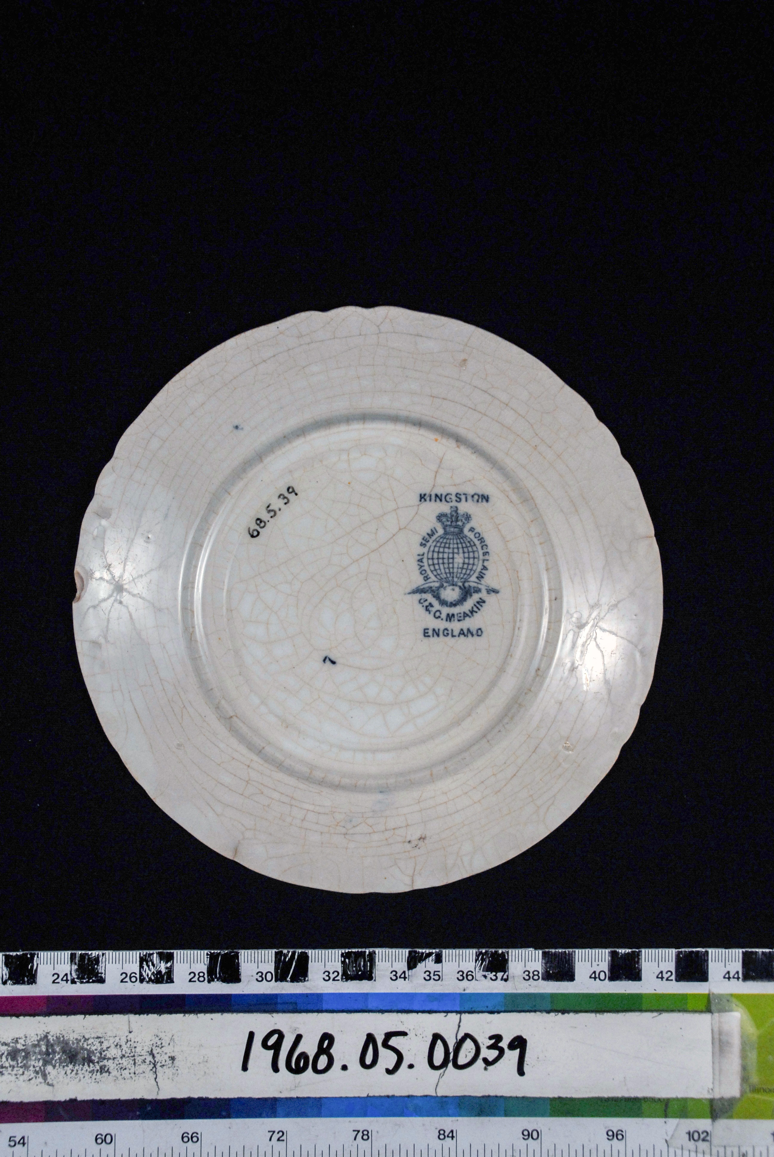 | Artist/Maker | Manufacturer's stamp on base: associated with a crown, globe, and eagle logo, “Kingston, England Royal Semi-Porcelain O.C.G.(?) Meakin“ |