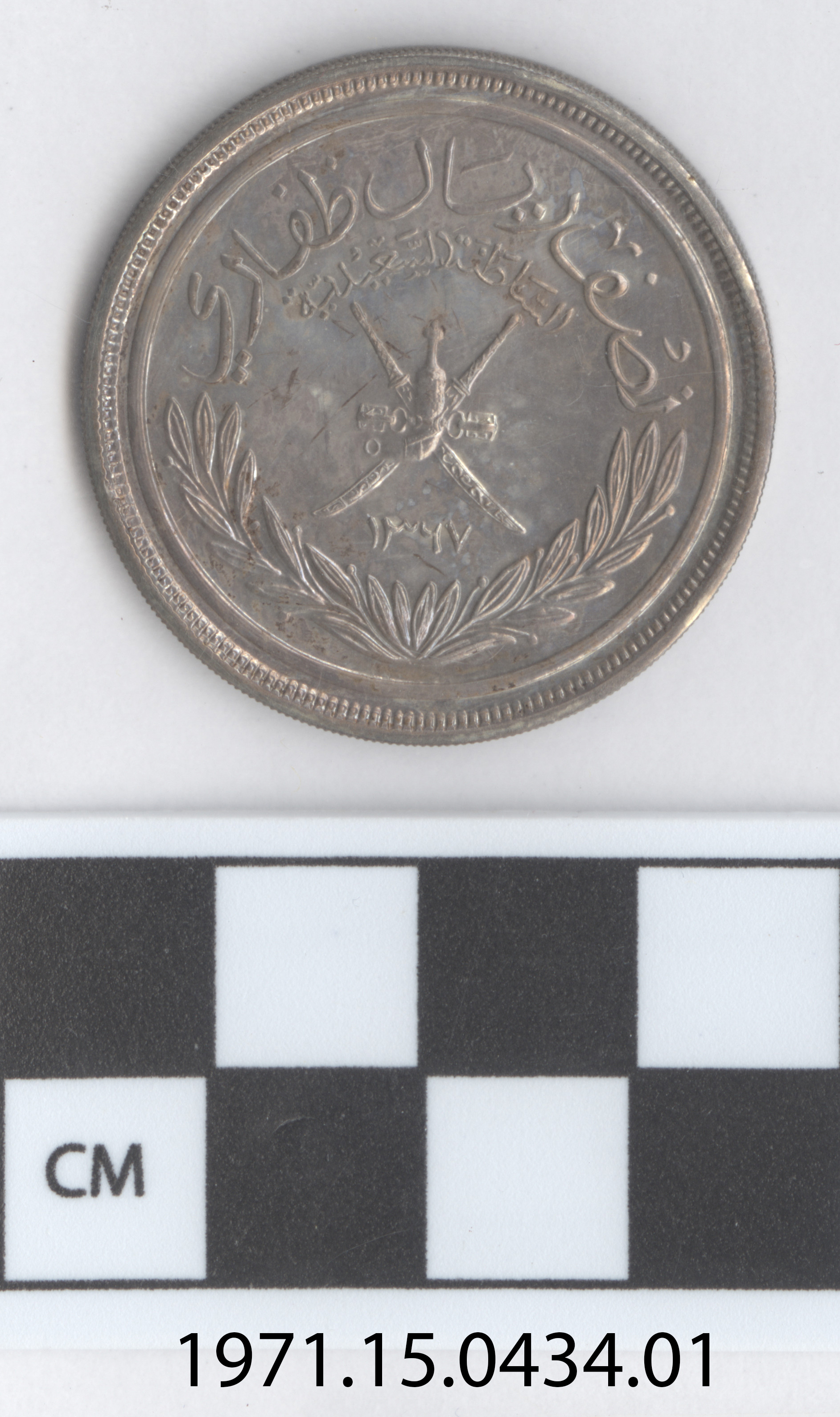 | Artifact Identification | Coin: Muscat and Oman, 1/2 Dhofari Ryal (1971.15.0434) |