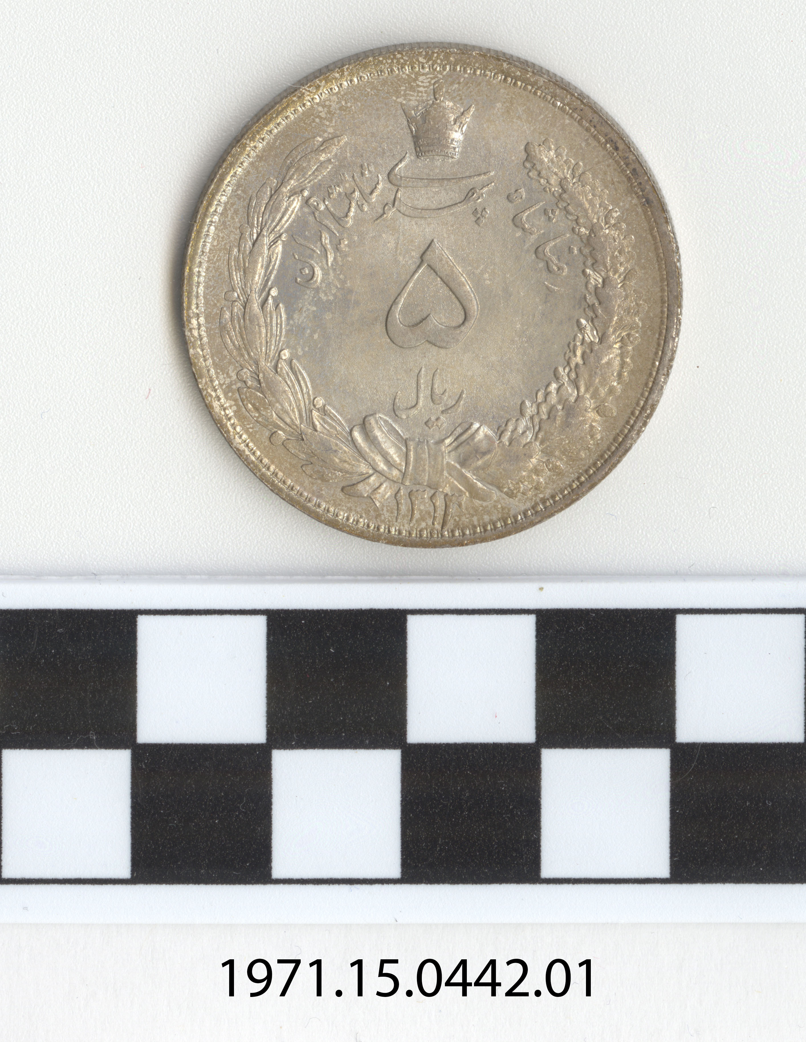 | Artifact Identification | Coin: Persia, 5 Rials (1971.15.0442) |