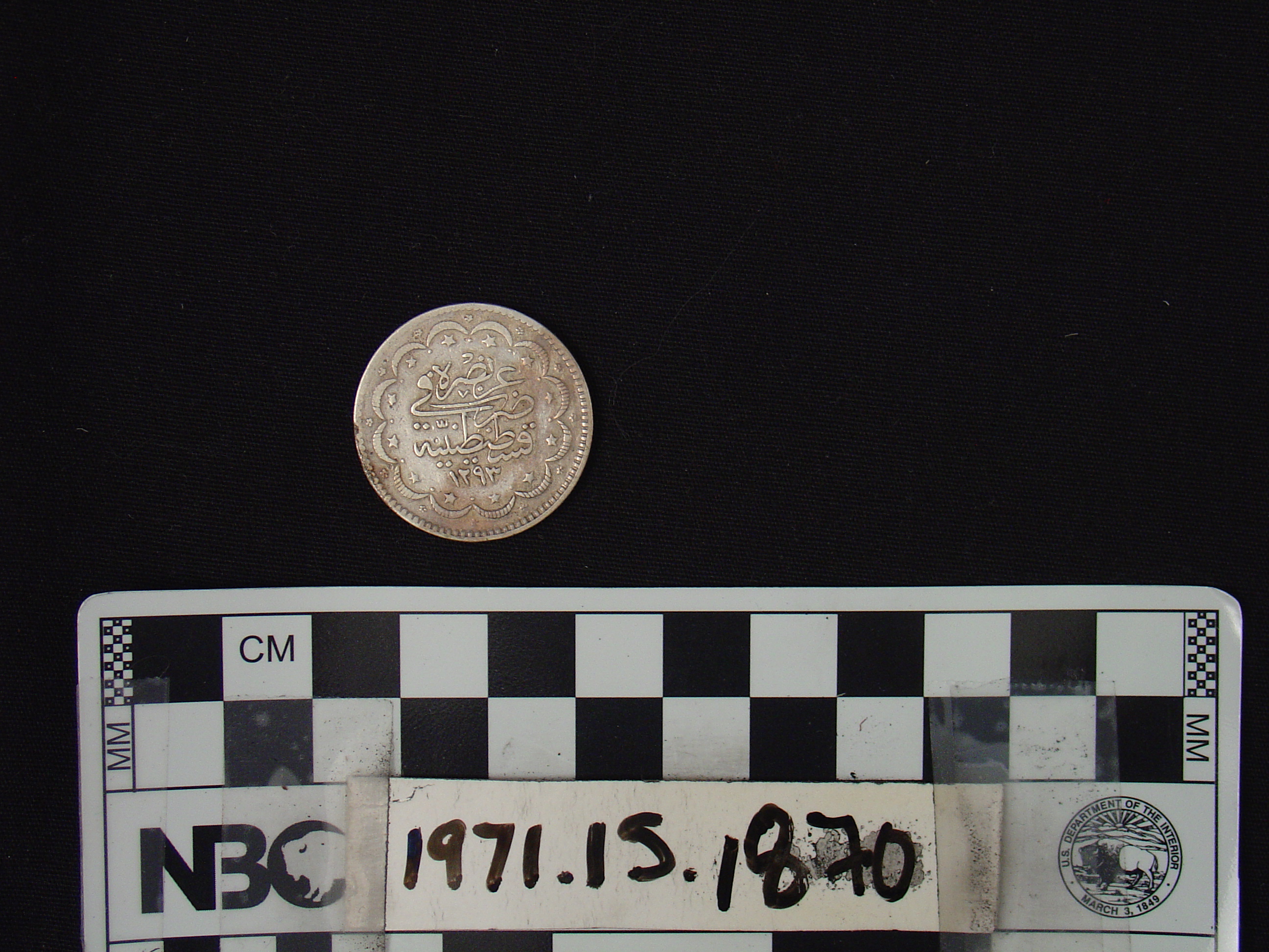 | Artifact Identification | Coin: Ottoman silver of Abdul Hamid II (1293-1327 AH)yr3 (1971.15.1870) |