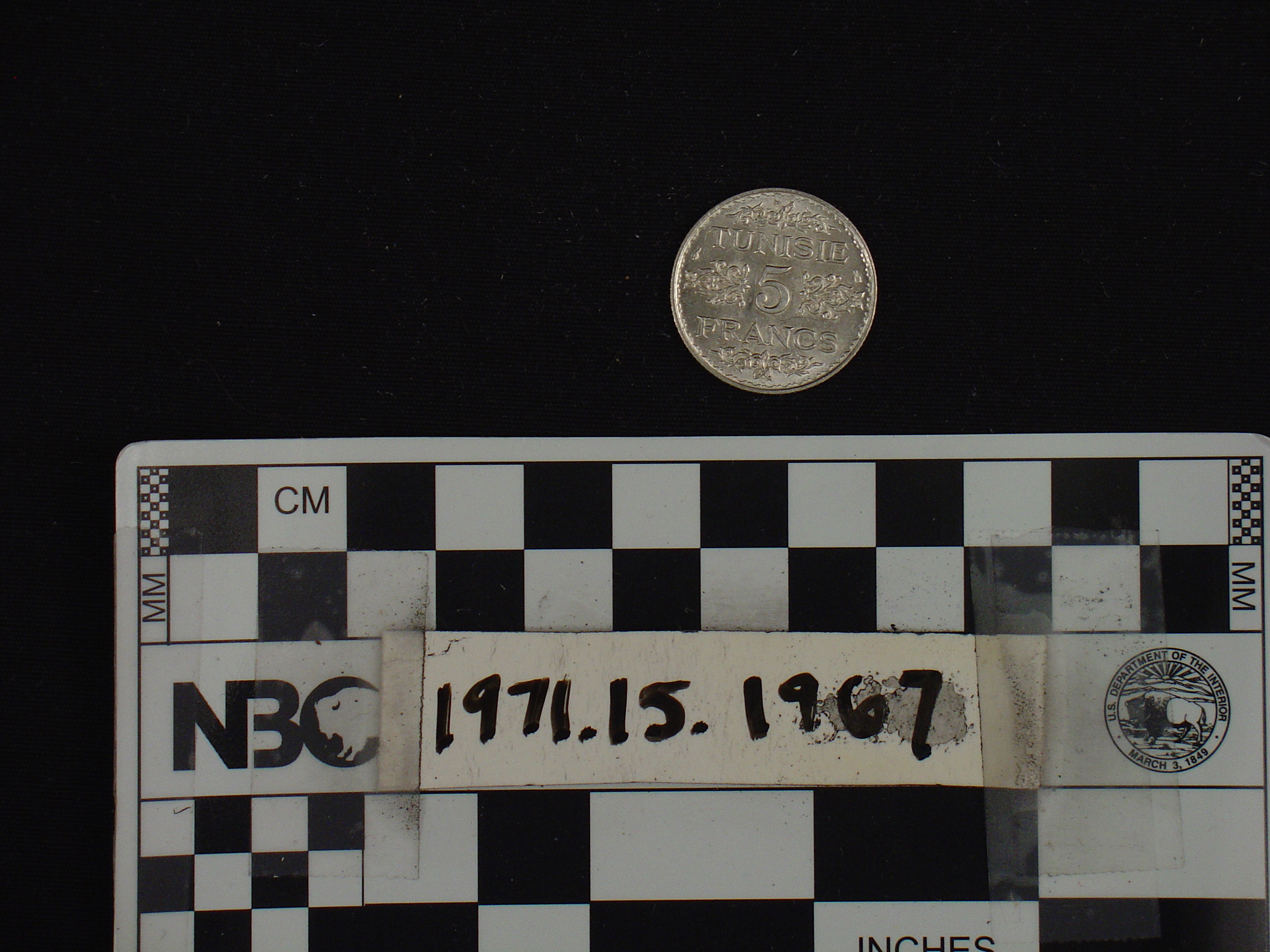 | Artifact Identification | Coin: Tunisia, 5 Franc (1971.15.1967) |