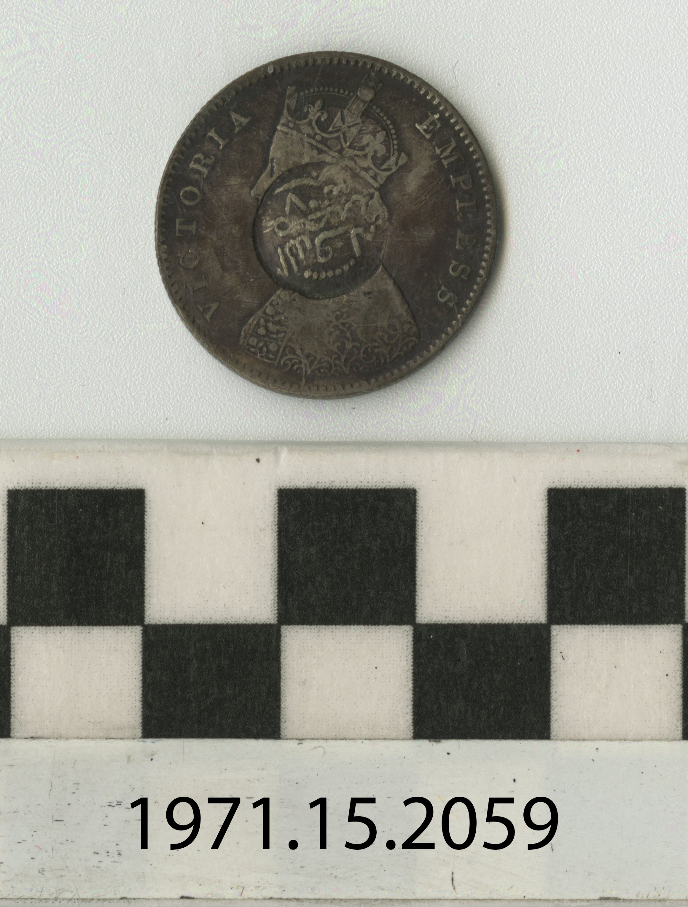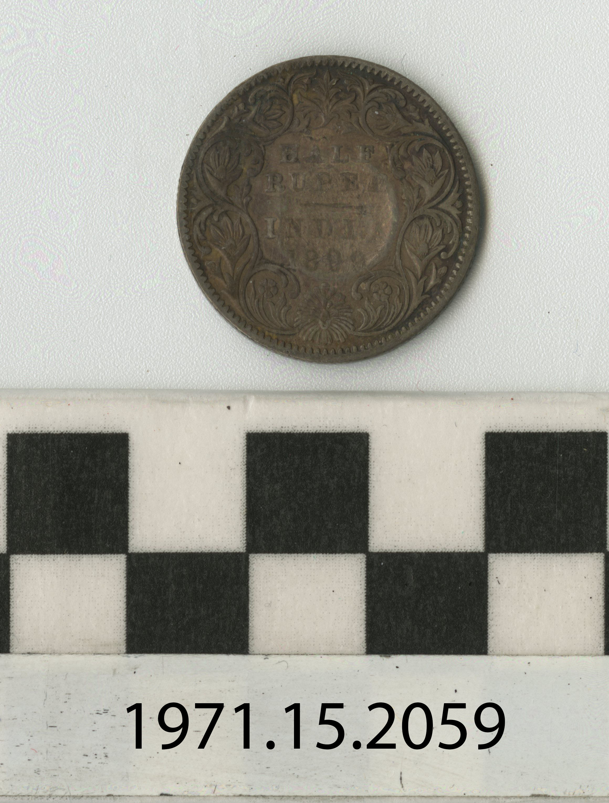 | Artifact Identification | Coin: India, 1/2 Rupee Overstrike (1971.15.2059) |