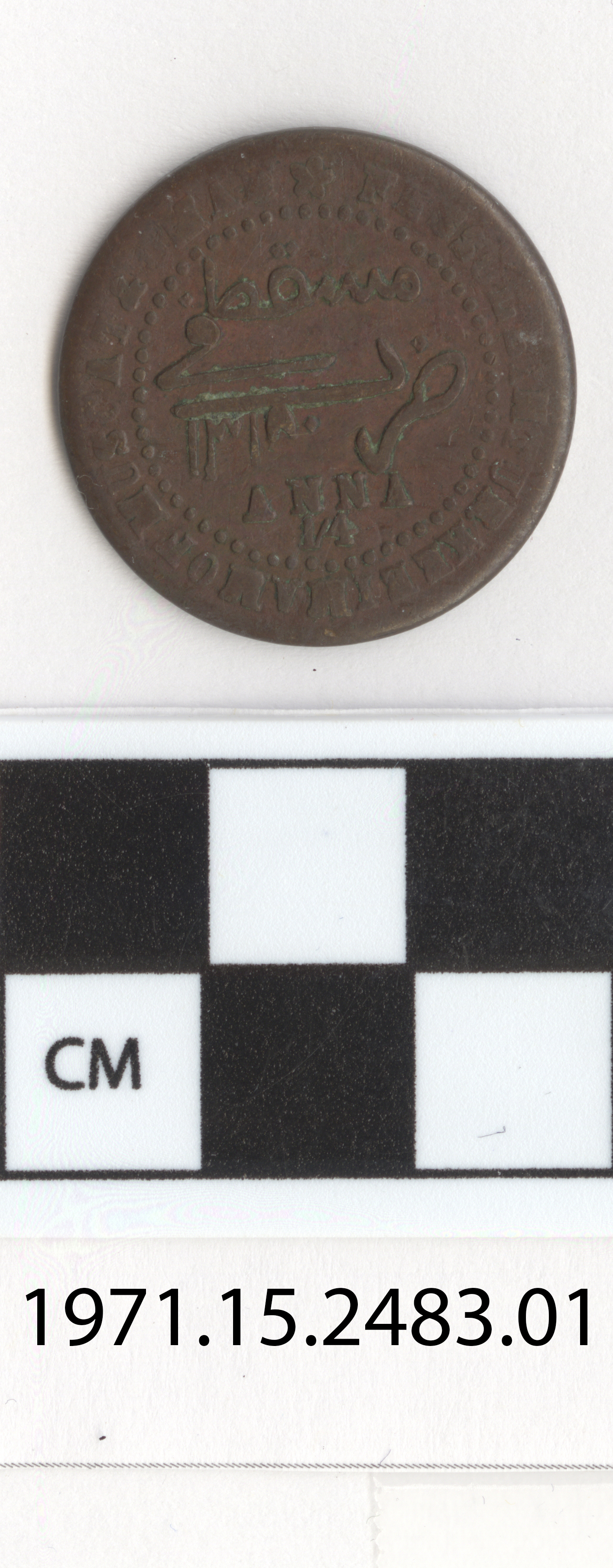 | Artifact Identification | Coin: Muscat and Oman, 1/4 Anna (1971.15.2483) |