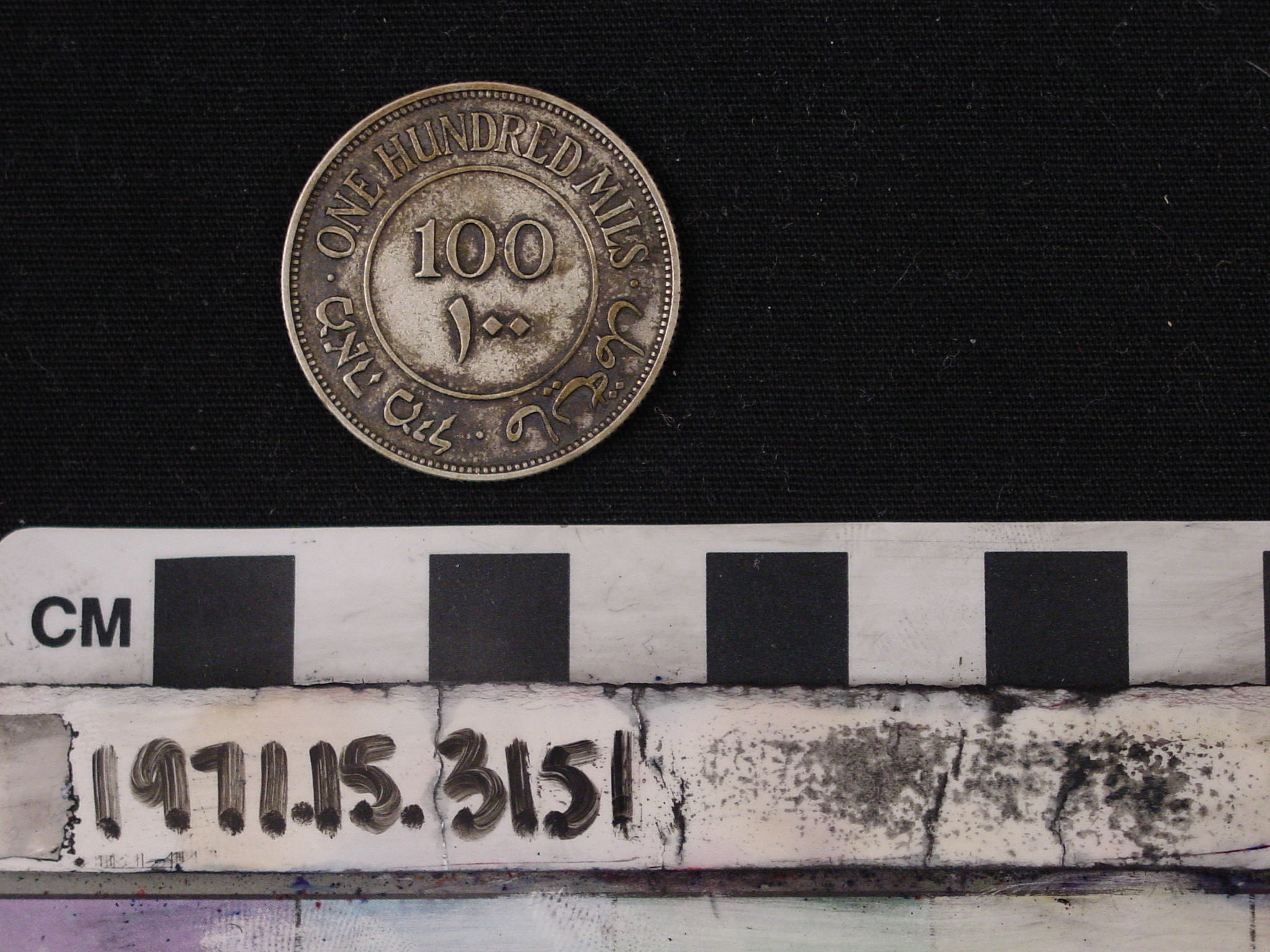 | Artifact Identification | Coin: 100 Mil Alloy (1971.15.3151) |