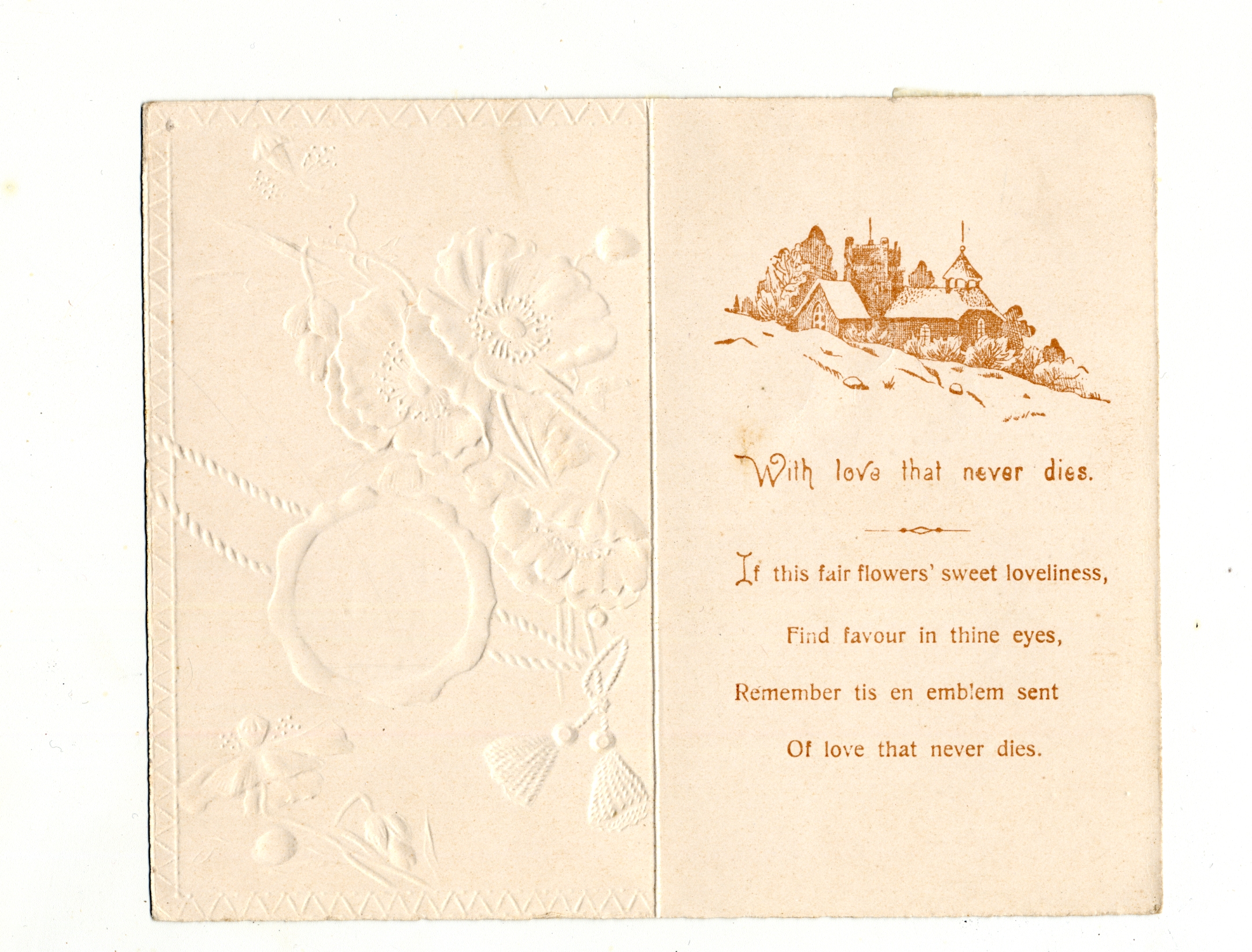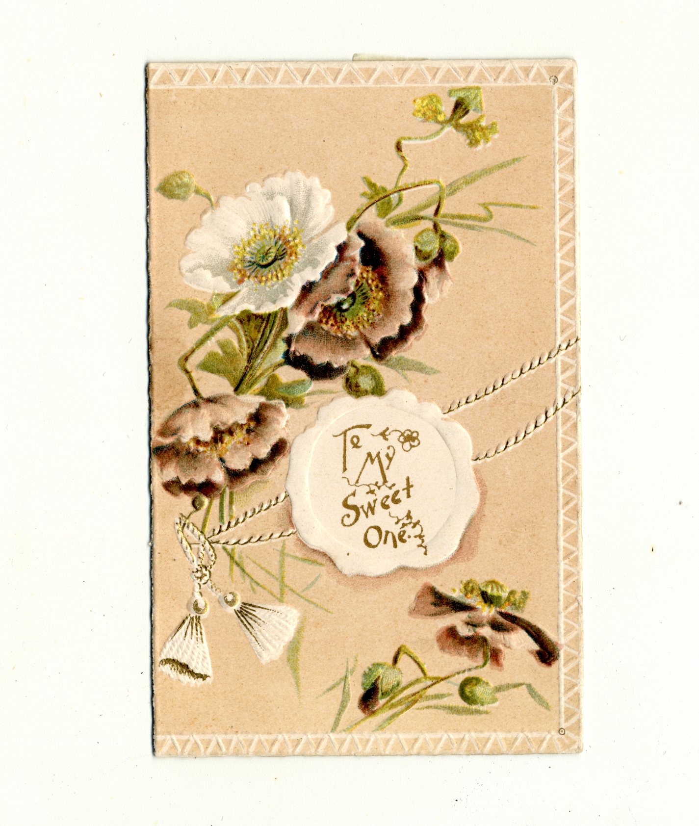 | Description | The “sentimental” Valentines of the 19th-century earned their name by frequently featuring Christian symbols, children, animals, and other saccharine images and themes. What made Valentines popular as greeting cards was their ability to convey strong emotions. Therefore, the designs of these Valentine types were meant to captivate an audience that found more wholesome love messages appealing. This card demonstrates the sentimental theme by having a floral design to accompany a love message, an image that is meant to encourage warm and affectionate feelings. |