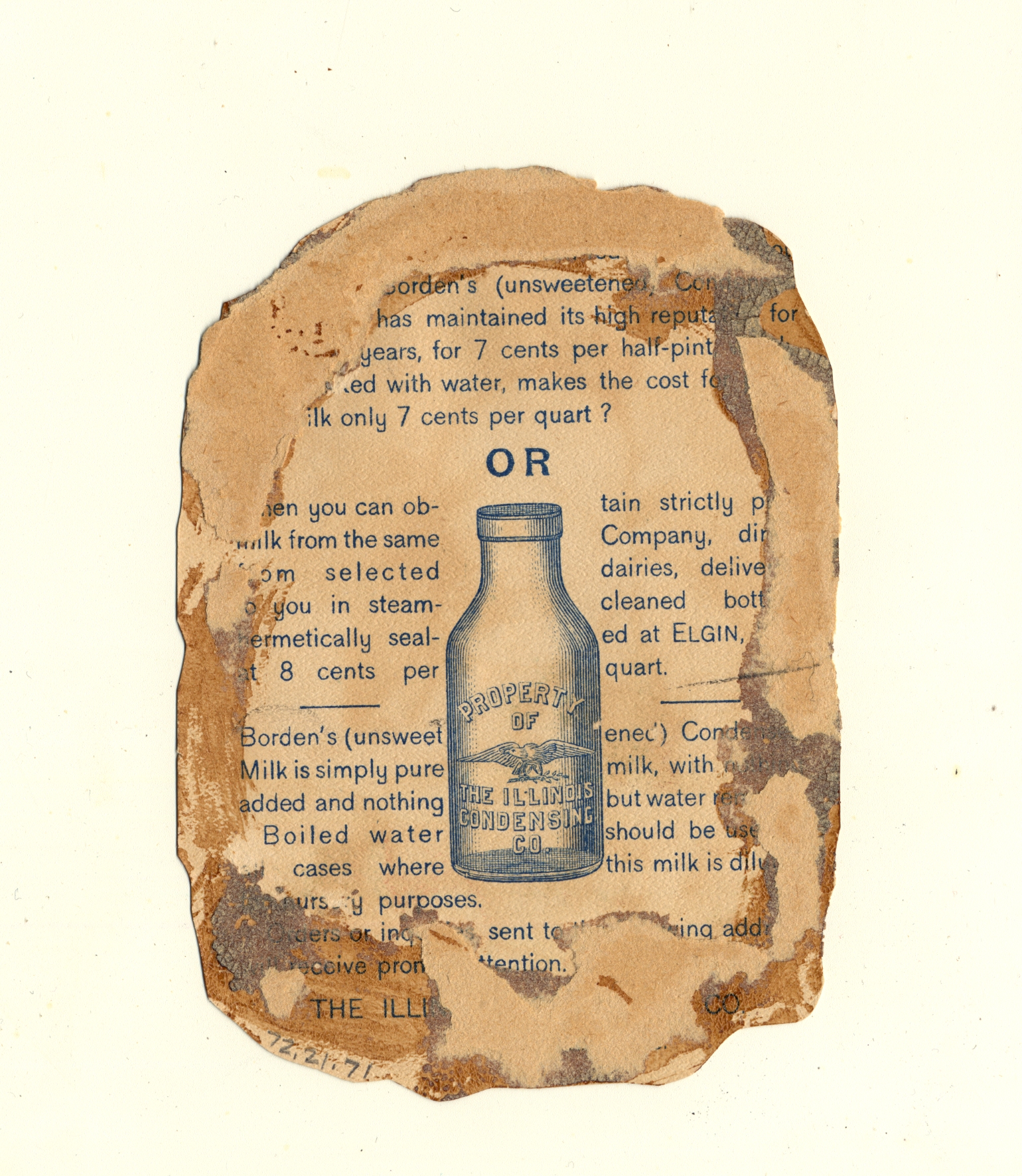 | Artifact Identification | Business Advertisement Card: "Borden's Condensed Milk" (1972.21.0071) |