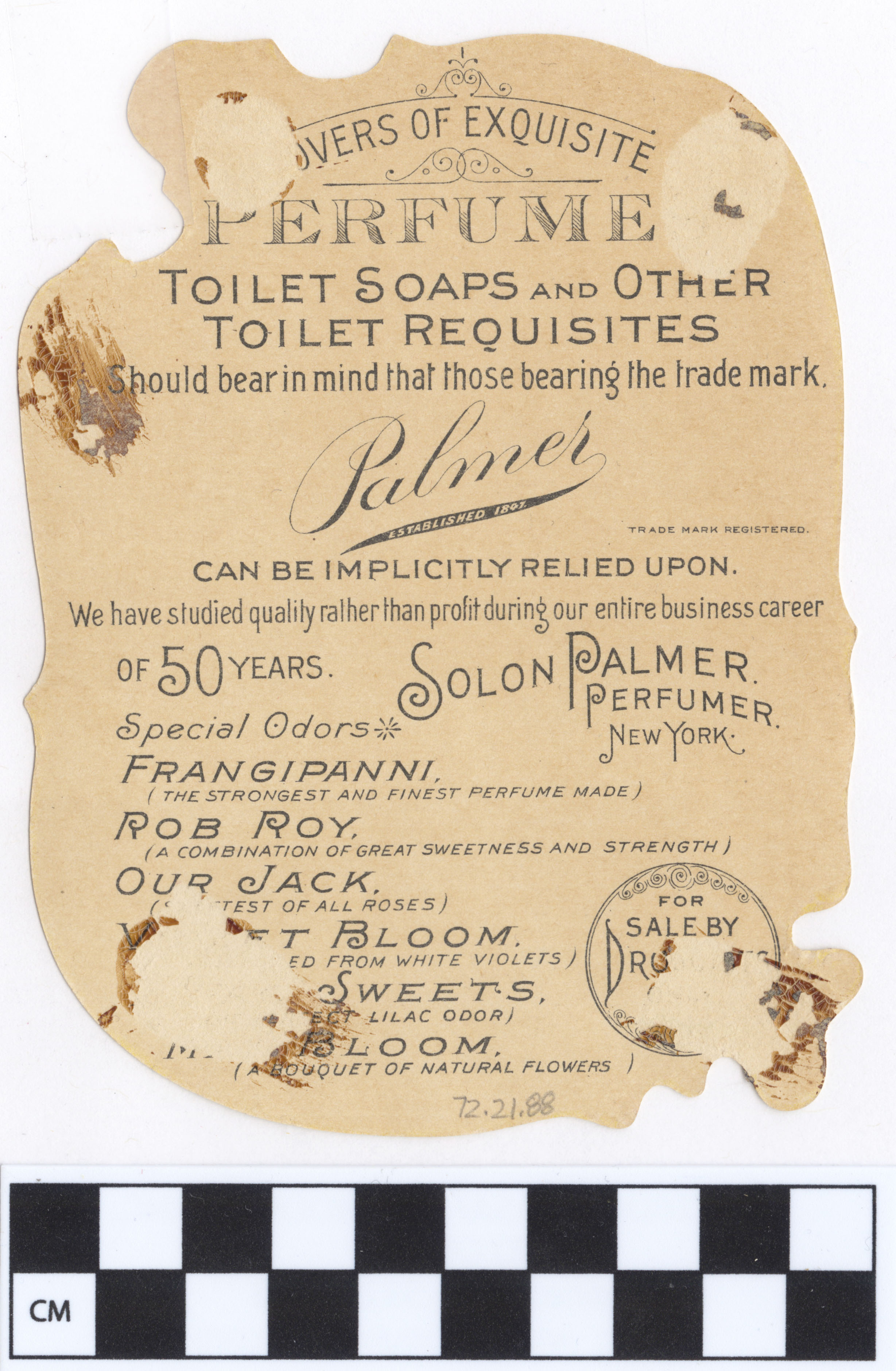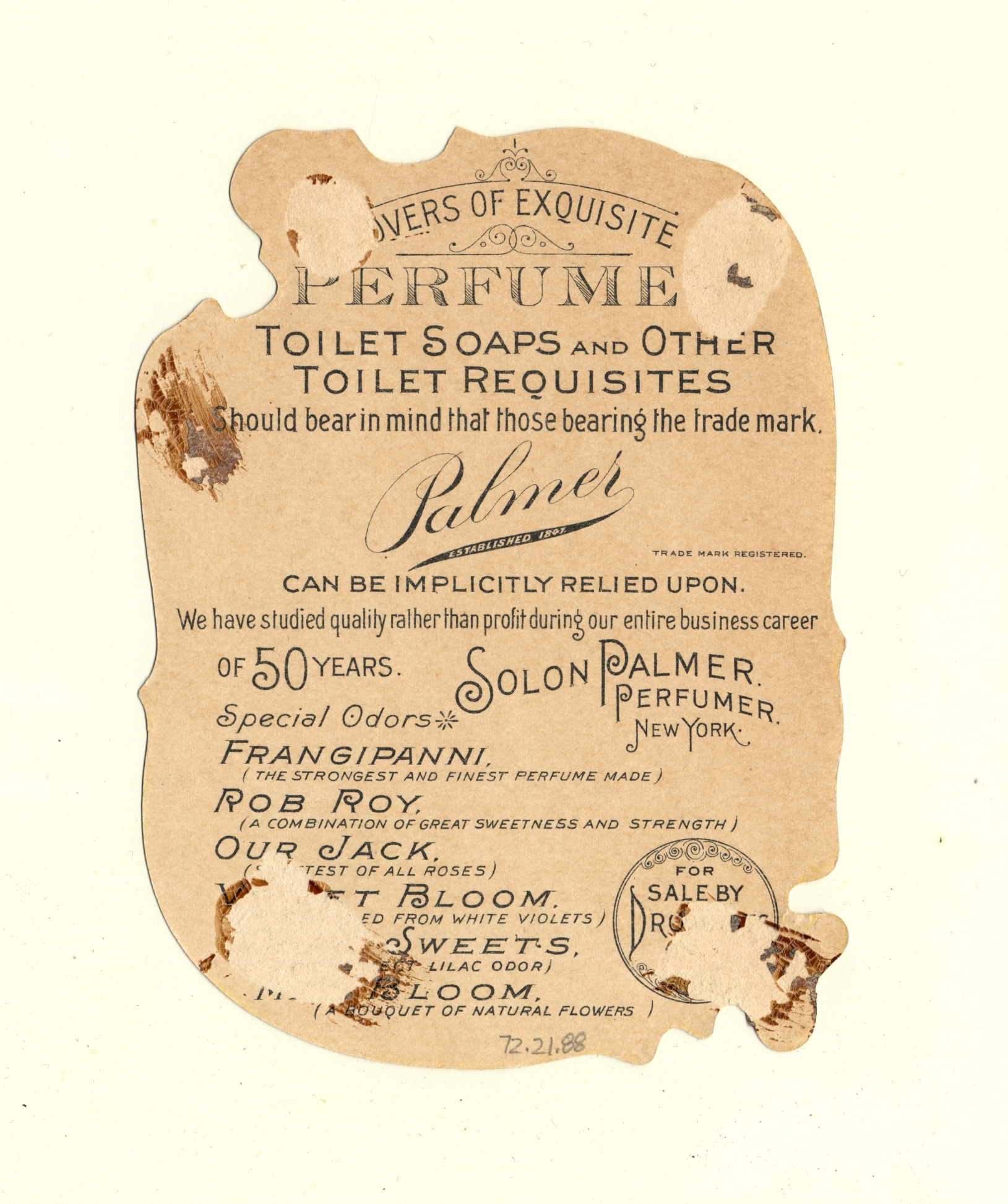 | Artifact Identification | Business Advertisement Card: Palmer May Bloom (1972.21.0088) |