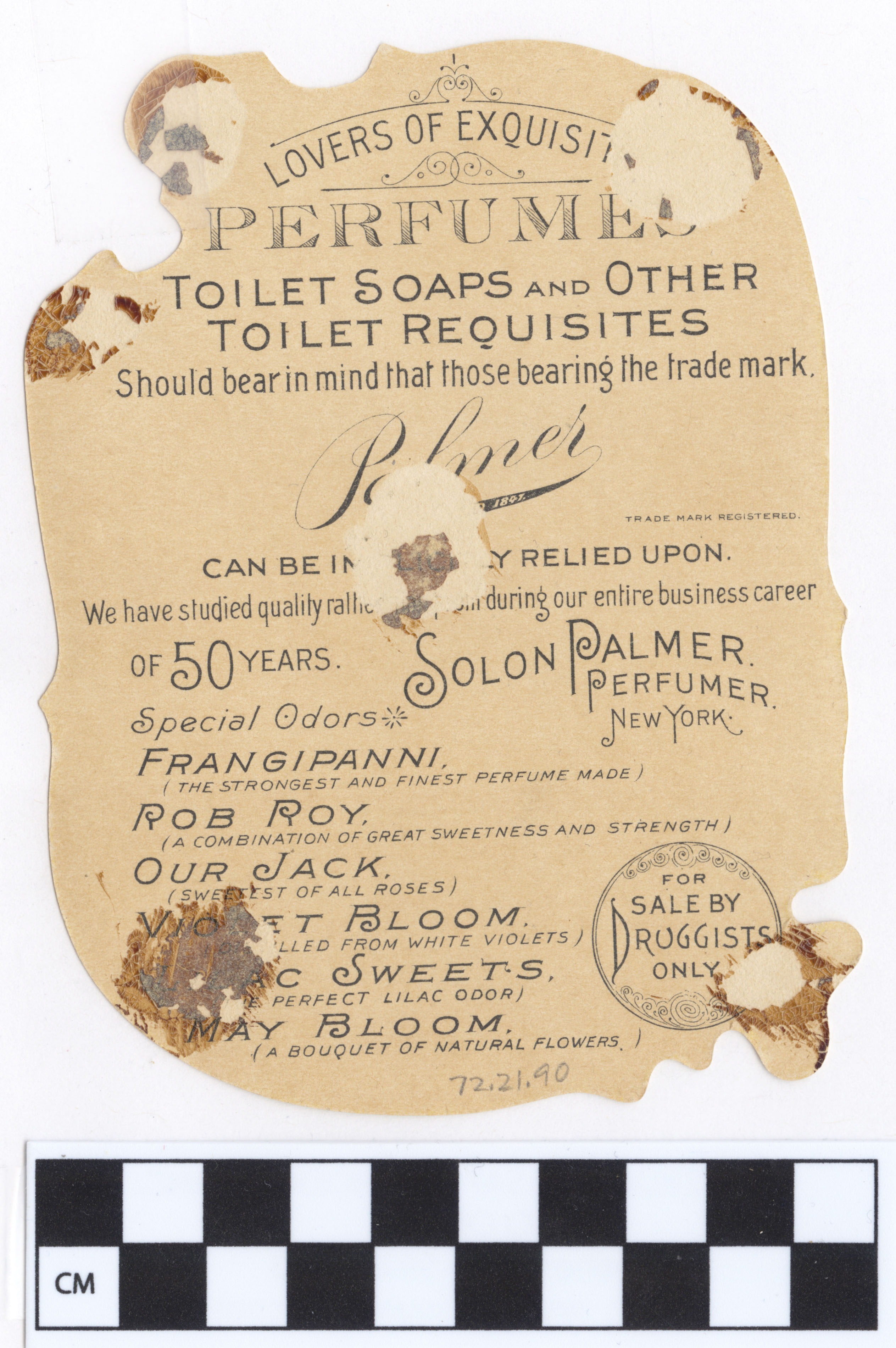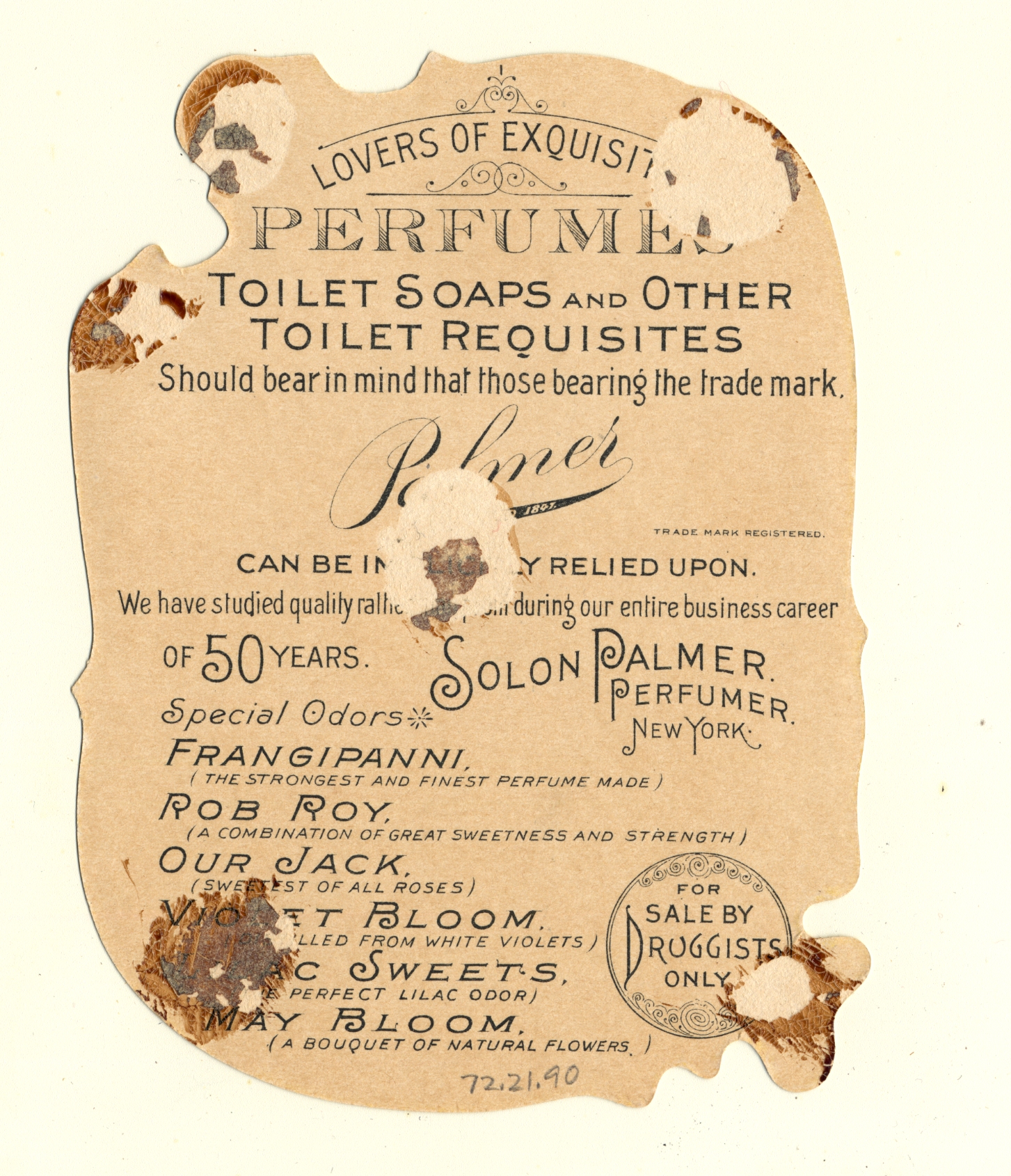 | Artifact Identification | Business Advertisement Card: Palmer Lilac Sweets (1972.21.0090) |