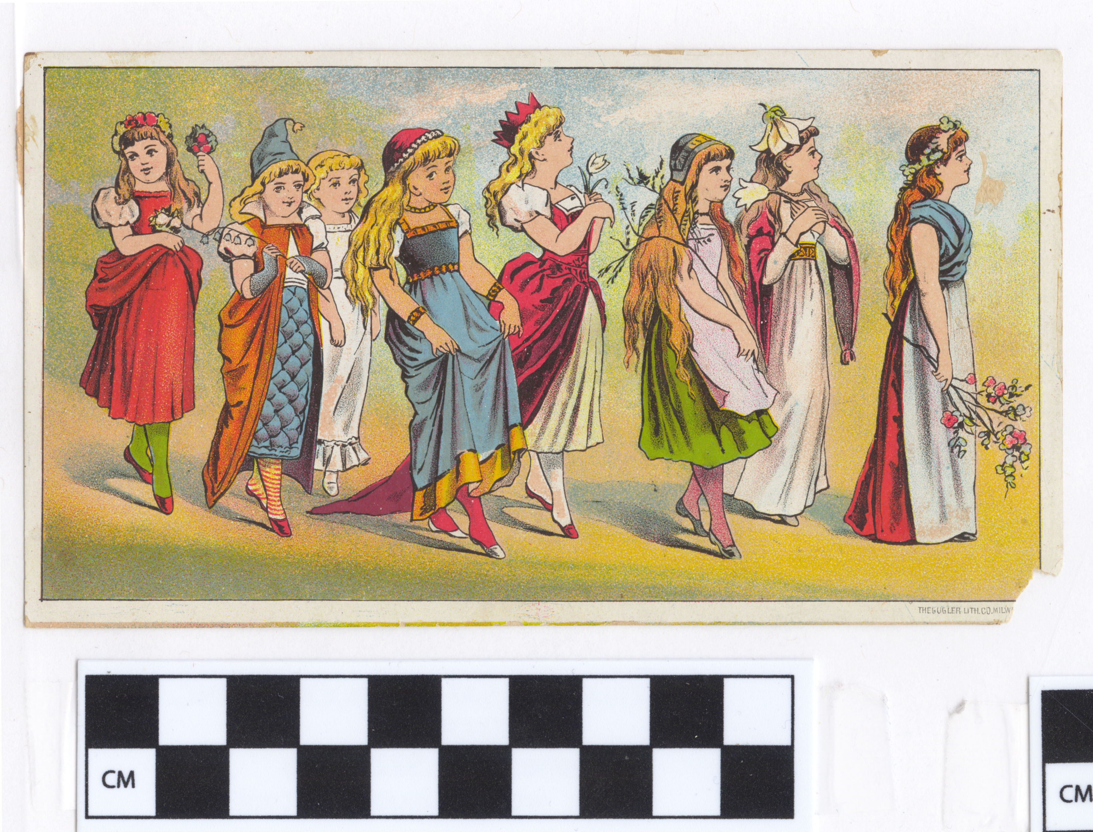 | Description | Advertising cards that featured children and young adults engaging in consumer lifestyles were appealing to young audiences. For young American girls, a demographic that often lived in constraining social environments, these cards were particularly endearing and relatable, especially when they featured girls of the same age group. The girls on the card participating in happy and even adventurous consumer activities were symbolic of what opportunities were available for young women in a new American industrialized era. This card for F.C. Olmstead & Co. features many girls elegantly dressed in an outdoor setting, suggesting that the wondrous qualities of the advertised products will improve a girl's quality of life. |