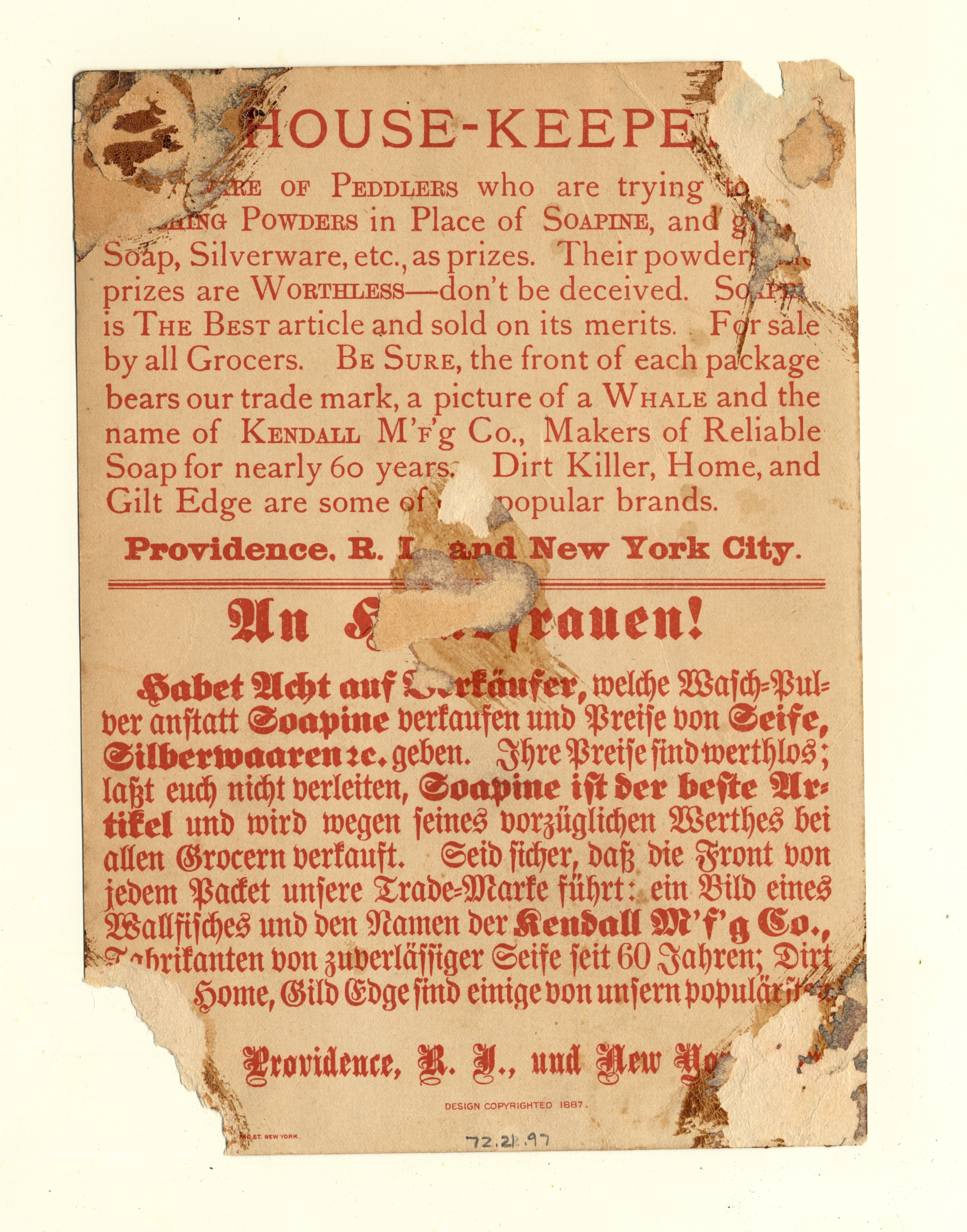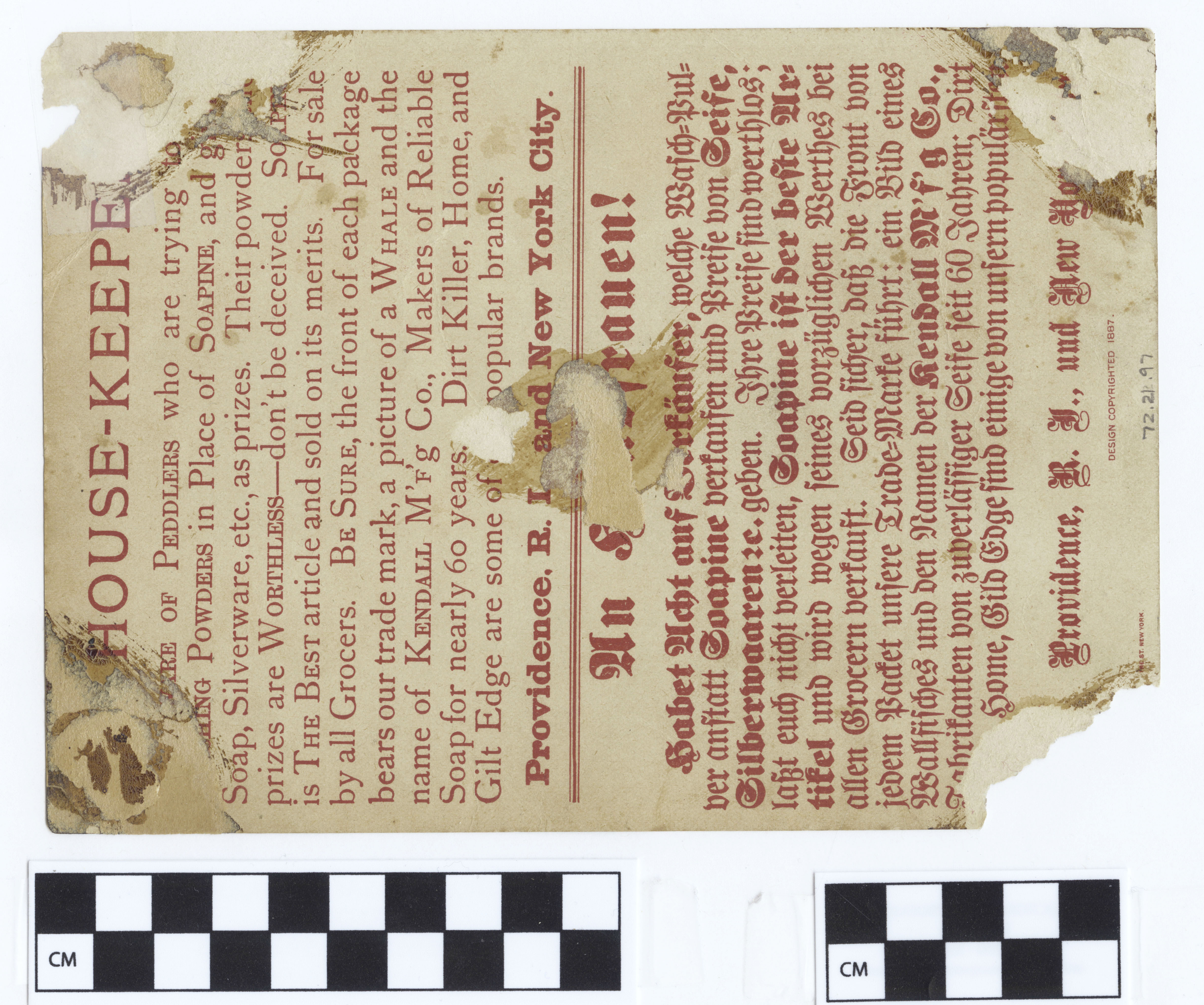 | Artifact Identification | Business Advertisement Card: Kendall M'f'g Co. (1972.21.0097) |