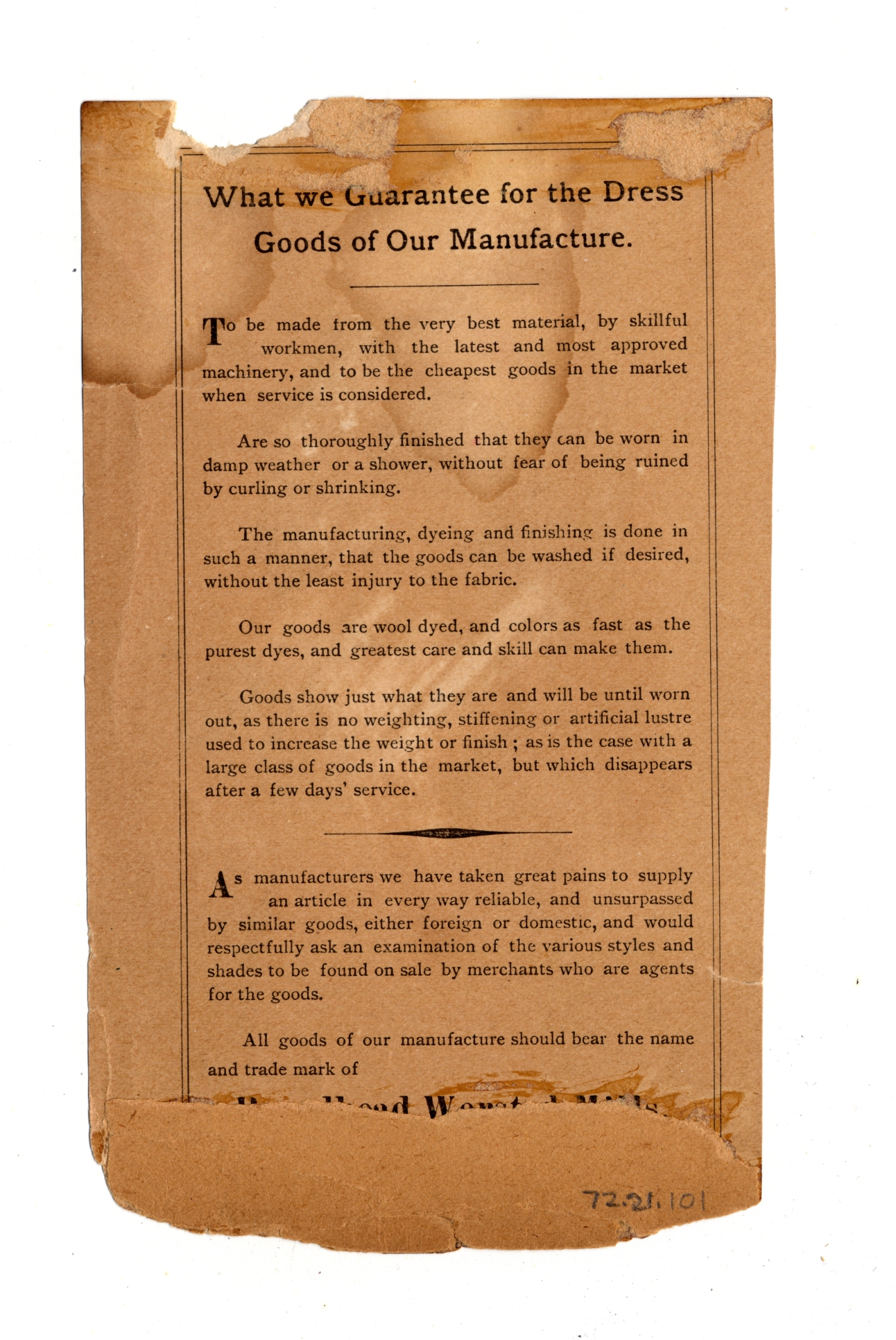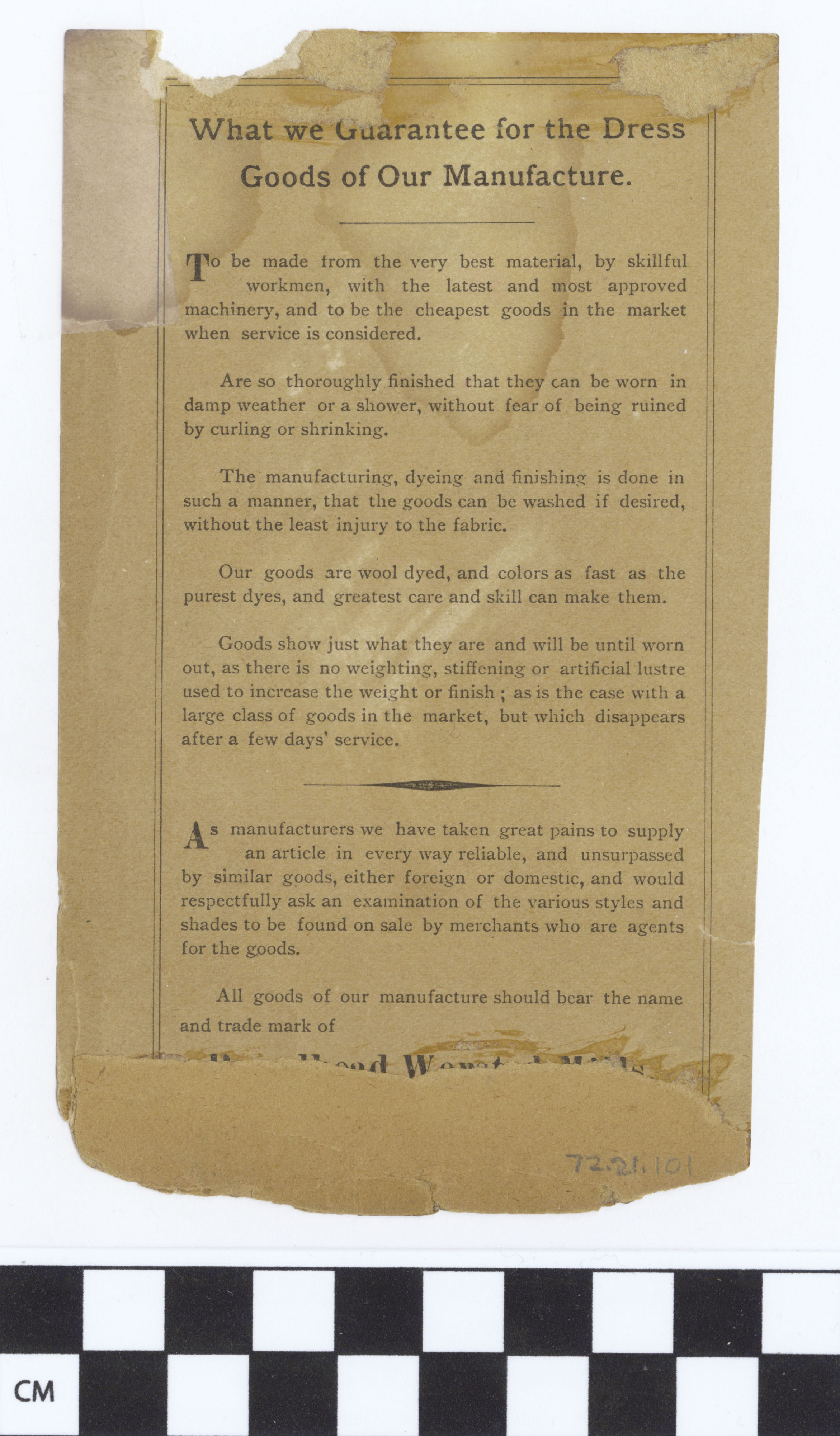 | Artifact Identification | Business Advertisement Card: Wm Broadhead & Sons (1972.21.0101) |