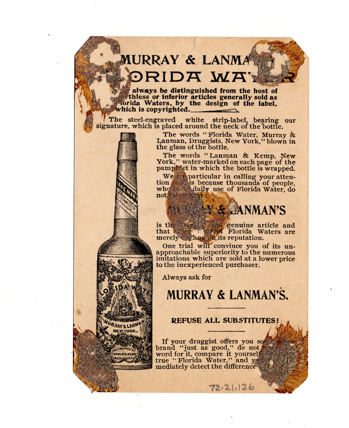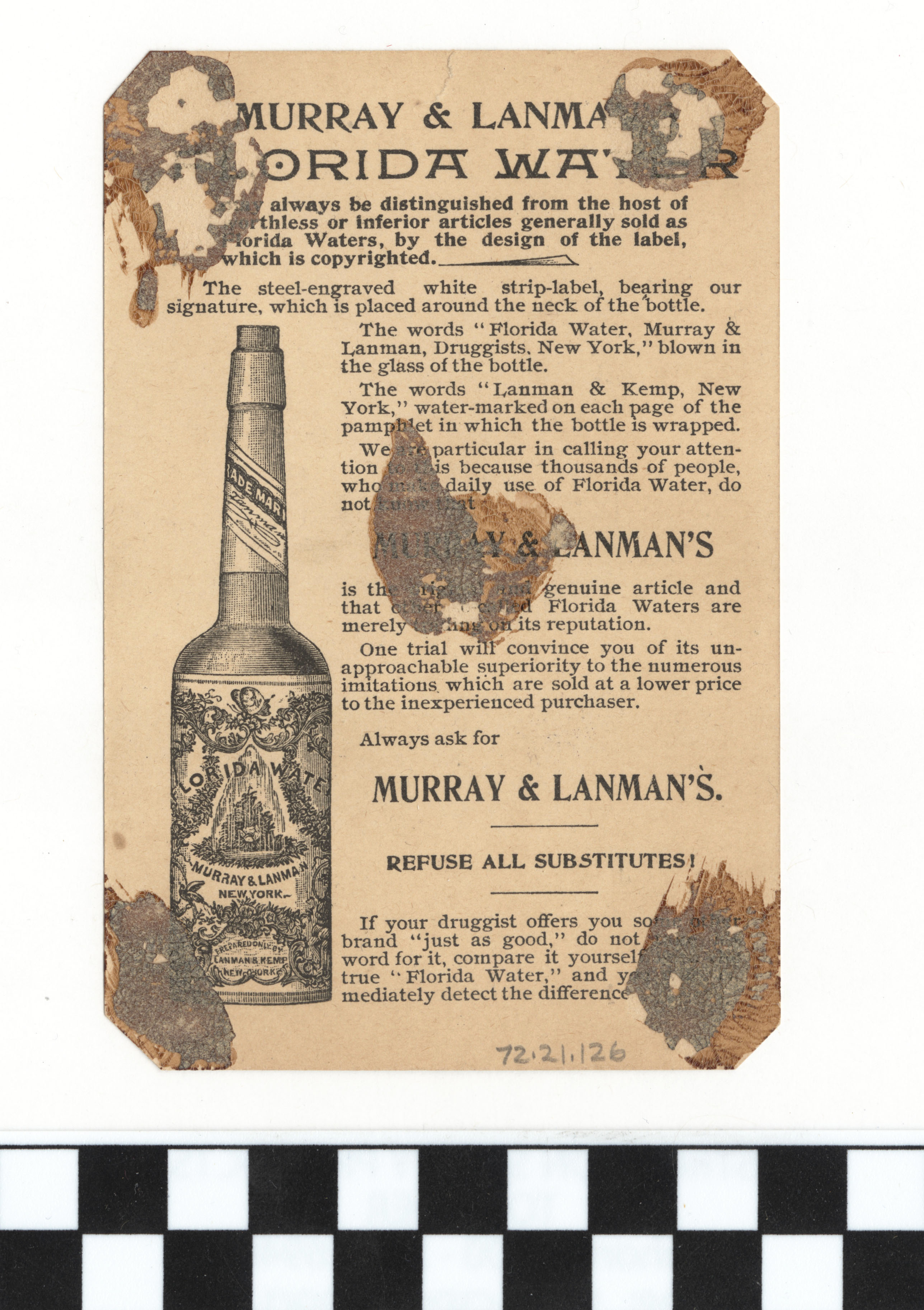 | Artifact Identification | Business Advertisement Card: Florida Water (1972.21.0126) |