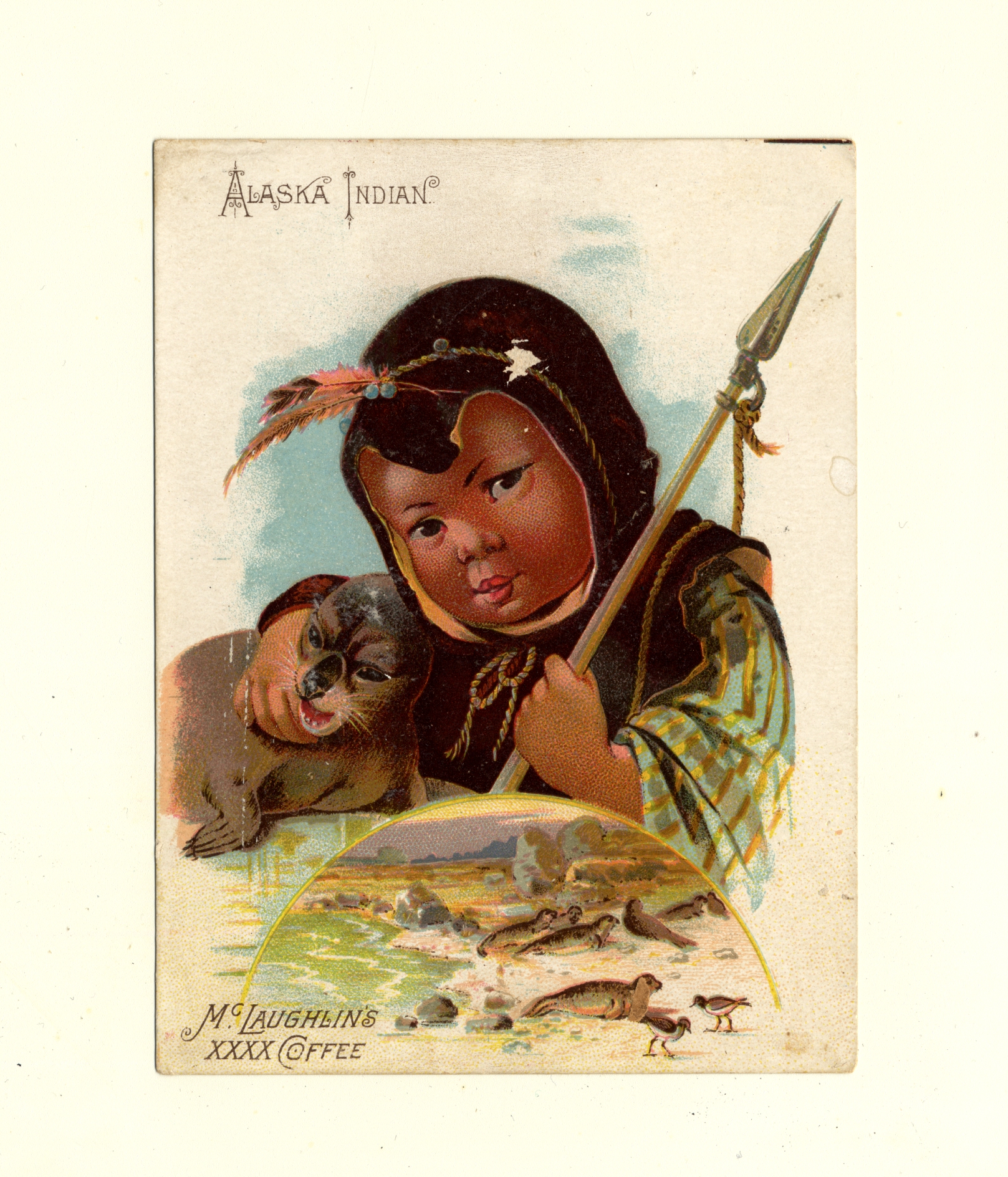 | Description | Many American advertising cards in the nineteenth century displayed a variety of visual and rhetorical themes to foster the attention of potential consumers. The appealing elements these cards displayed convinced the public that these easily disposable ephemera pieces were worthy of preservation. In this card for McLaughlin's XXXX Coffee, two advertising tropes which can be observed are derogatory scenes of American minority groups and the inclusion of animals. |