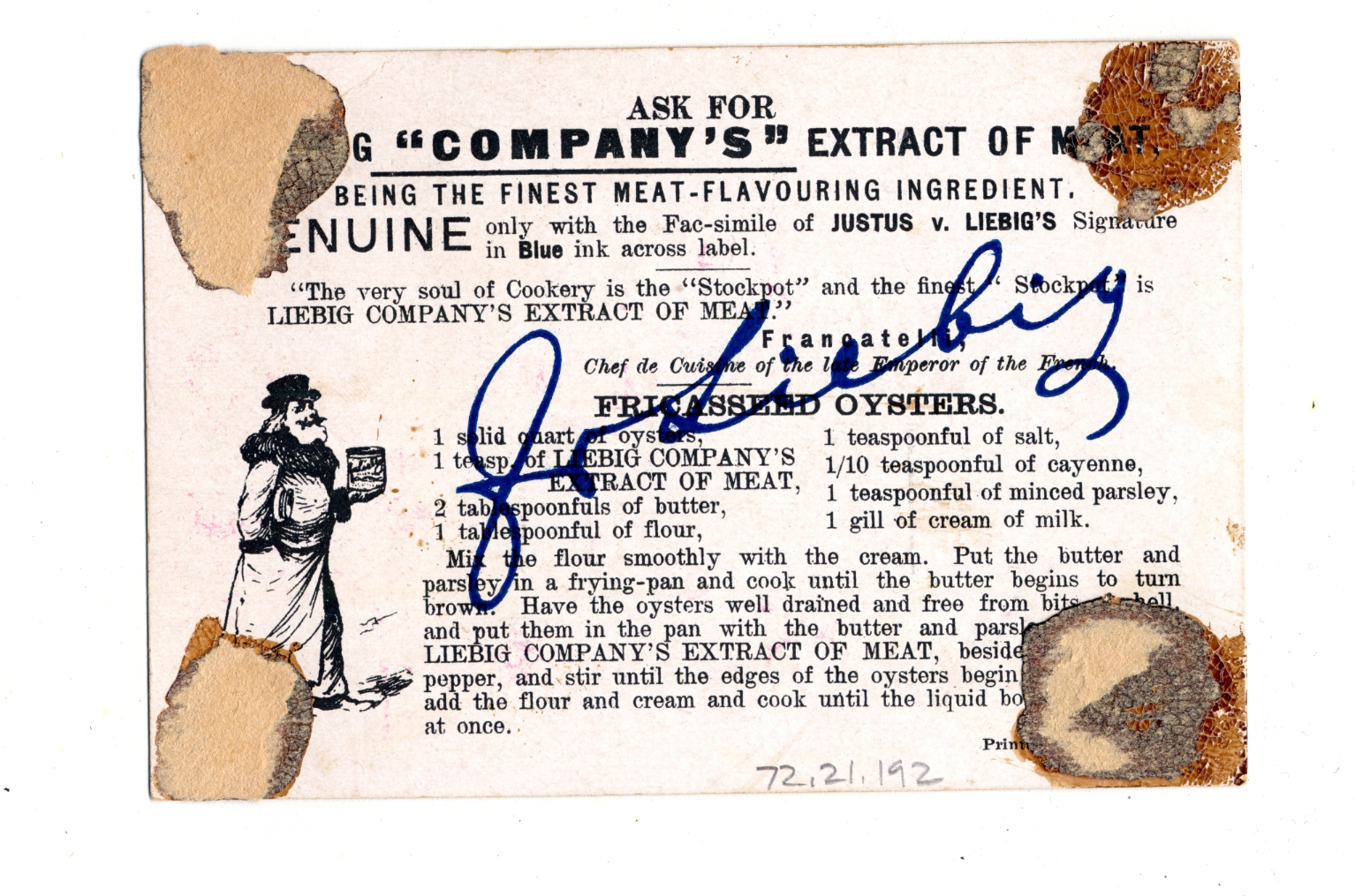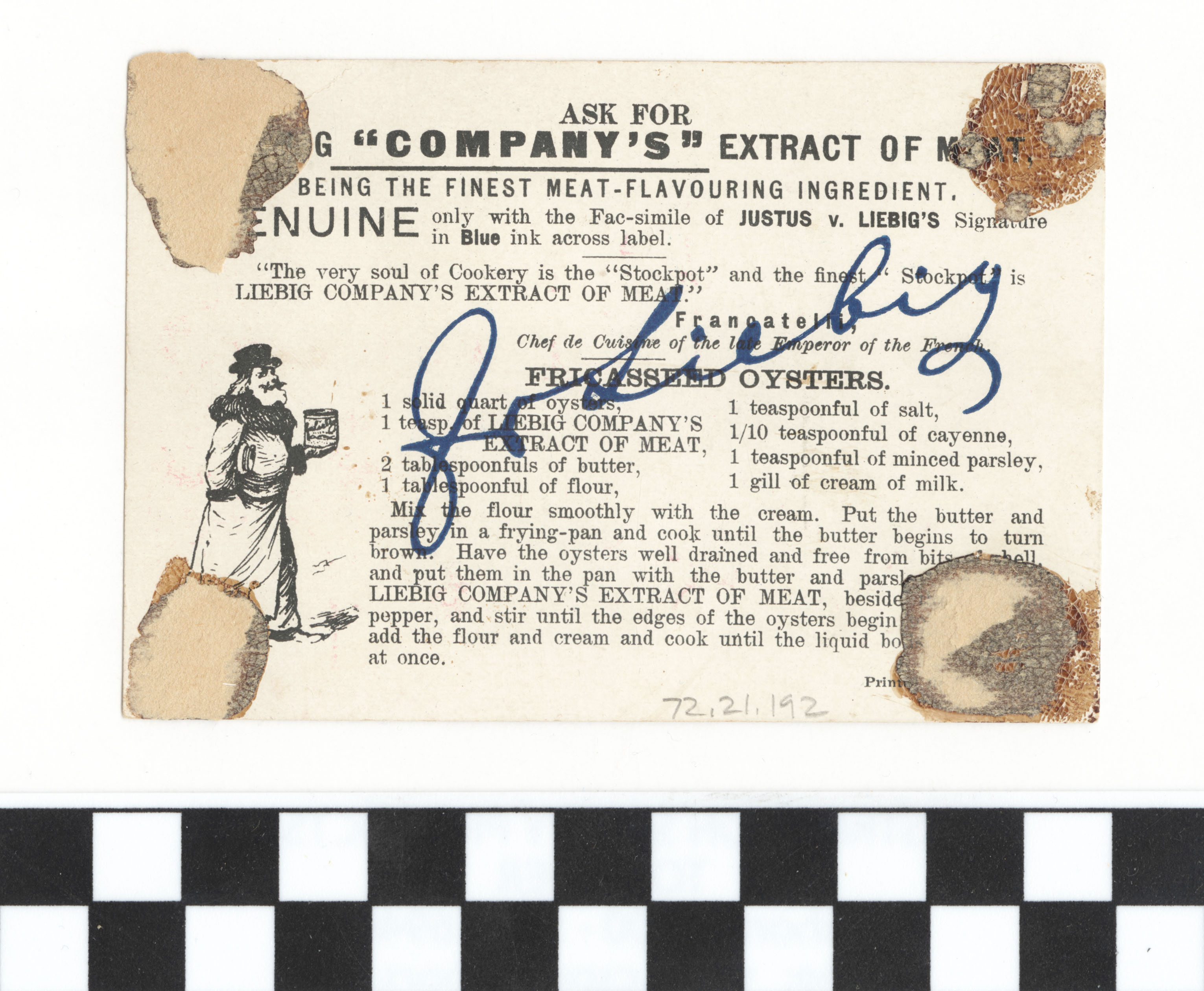 | Artifact Identification | Business Advertisement Card: "Liebig Company's Extract of Beef" (1972.21.0192) |