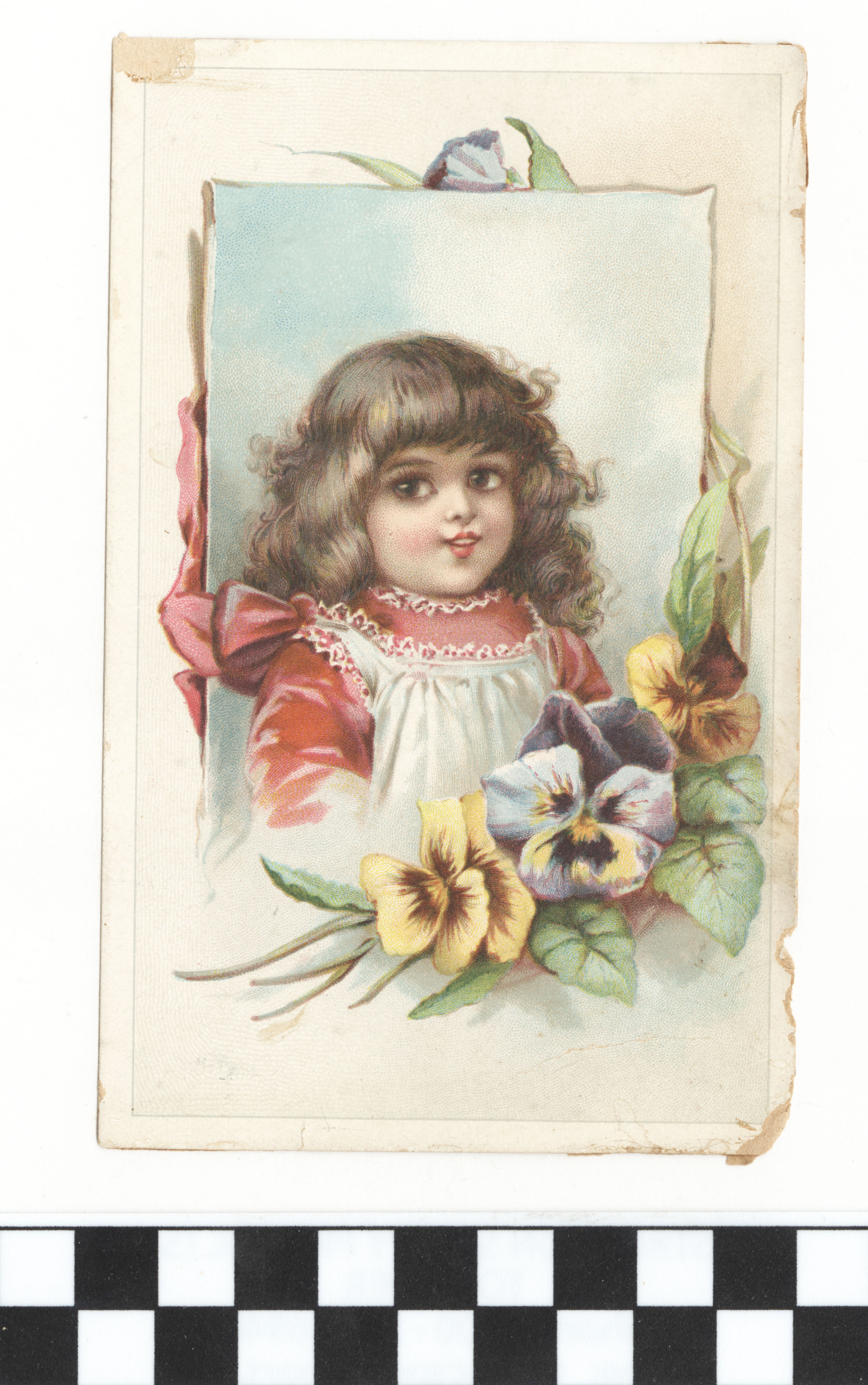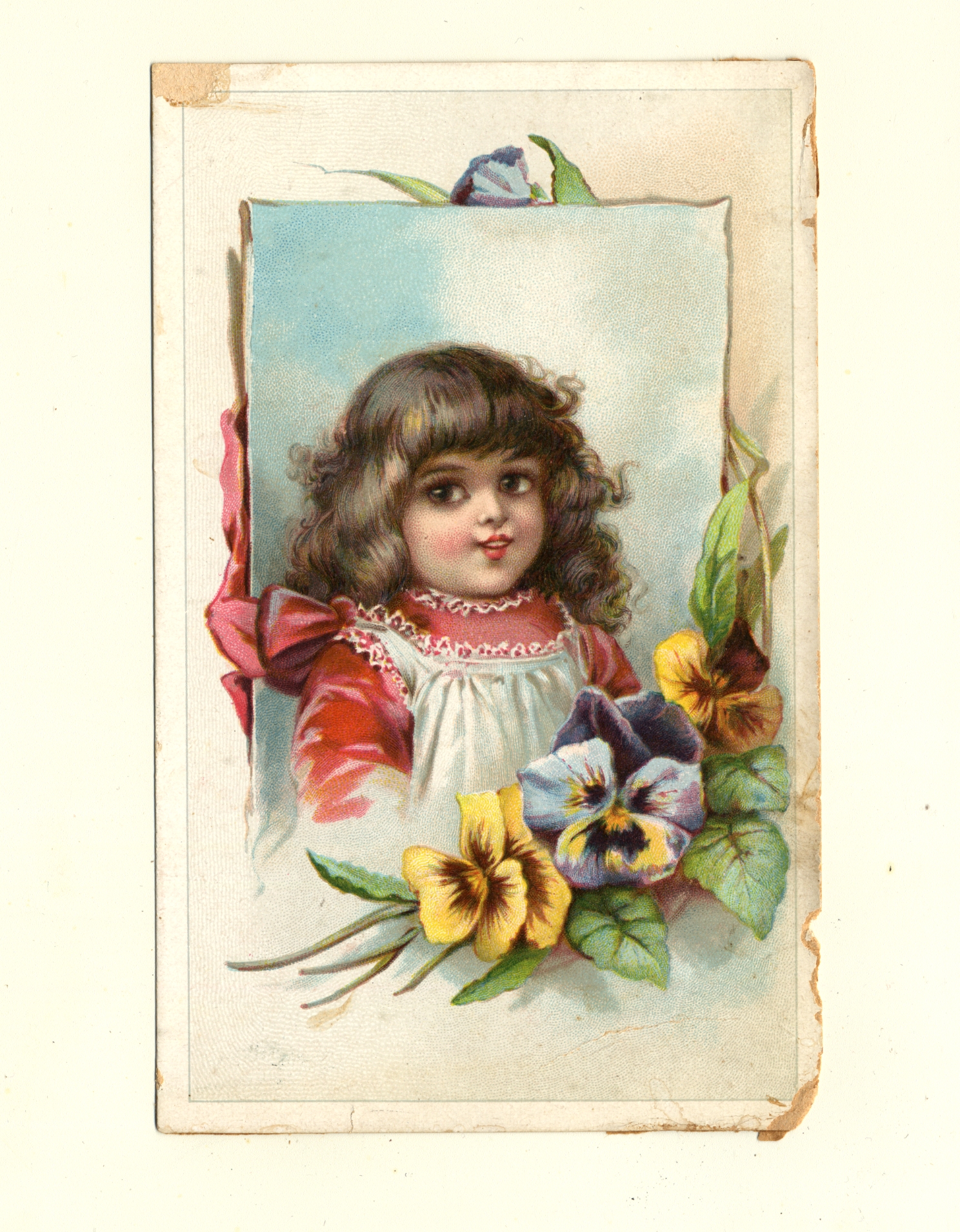 | Description | Advertising cards that featured children and young adults engaging in consumer lifestyles were appealing to young audiences. For young American girls, a demographic that often lived in constraining social environments, these cards were particularly endearing and relatable, especially when they featured girls of the same age group. The girls on the card participating in happy and even adventurous consumer activities were symbolic of what opportunities were available for young women in a new American industrialized era. This card for Phenix Insurance Co. includes a girl next to a set of flowers, insinuating that a girl’s quality of life can improve once they use the advertised product. |