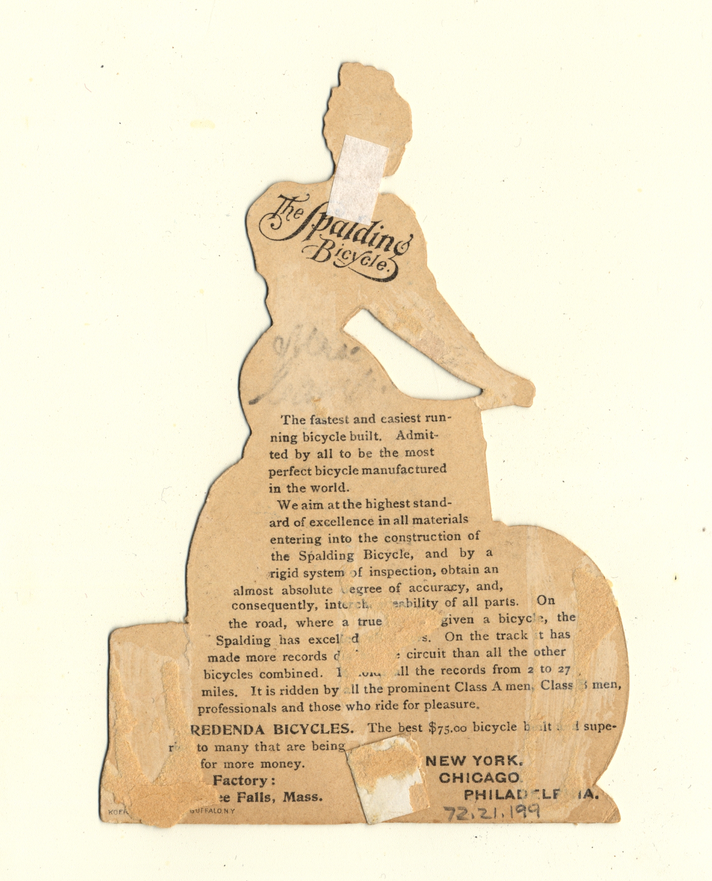 | Description | Advertising cards that featured children and young adults engaging in consumer lifestyles were appealing to young audiences. For young American girls, a demographic that often lived in constraining social environments, these cards were particularly endearing and relatable, especially when they featured girls of the same age group. The girls on the card participating in happy and even adventurous consumer activities were symbolic of what opportunities were available for young women in a new American industrialized era. This card for Spalding includes a woman experiencing the outdoors on a bicycle, suggesting that the outdoor items advertised are of high quality and can improve a girl’s quality of life. |