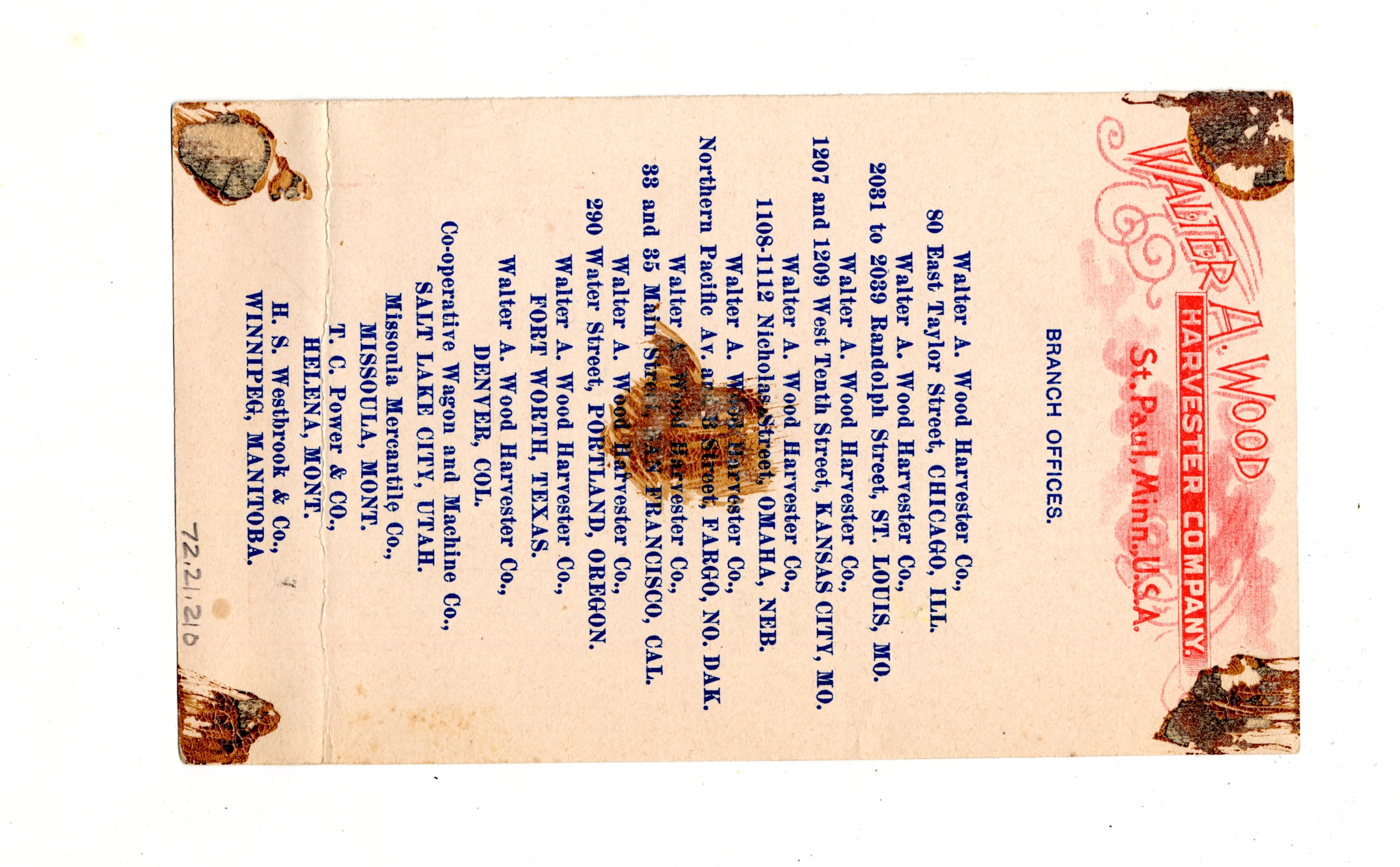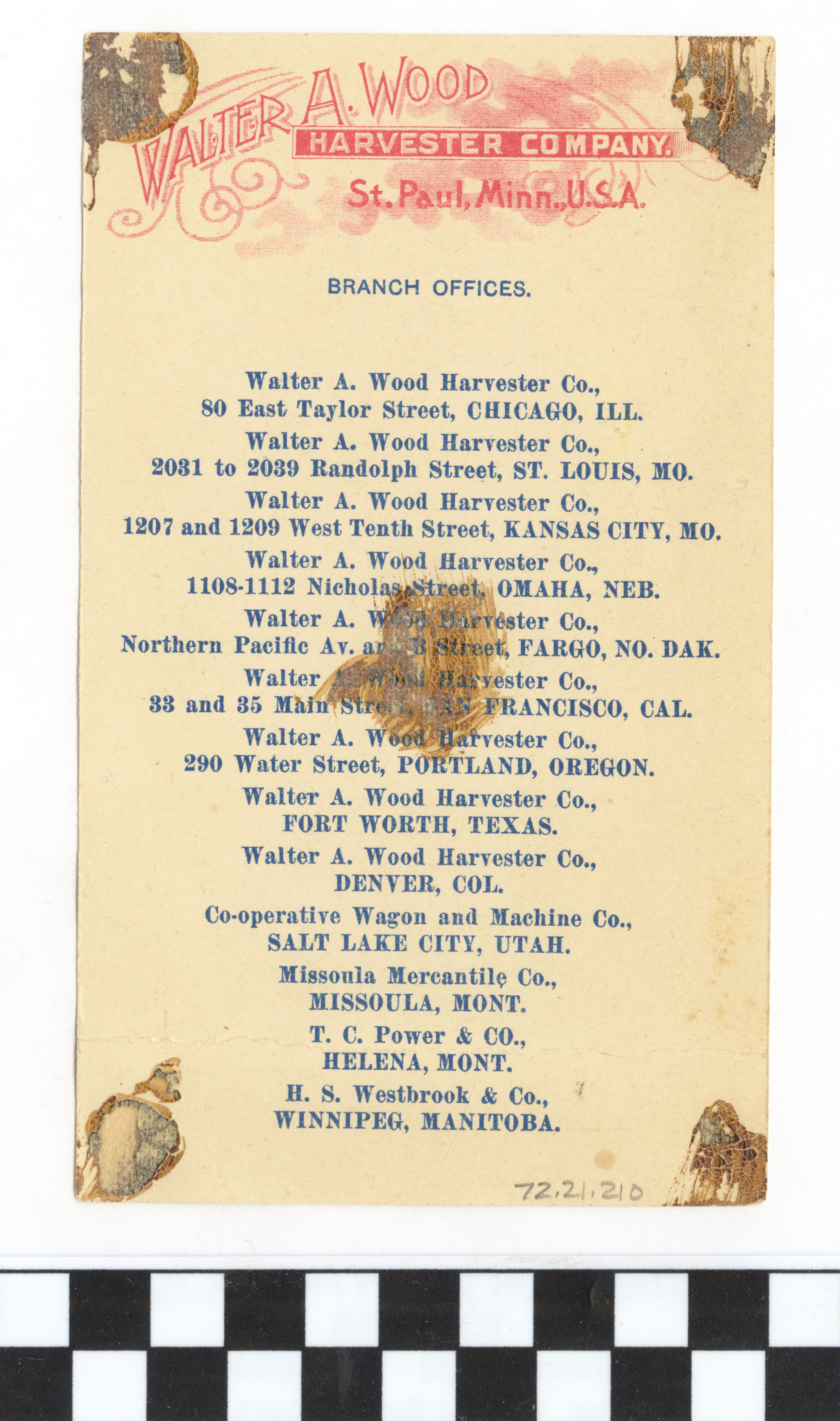 | Artifact Identification | Business Advertisement Card: Walter A. Wood Harvester Co. (1972.21.0210) |