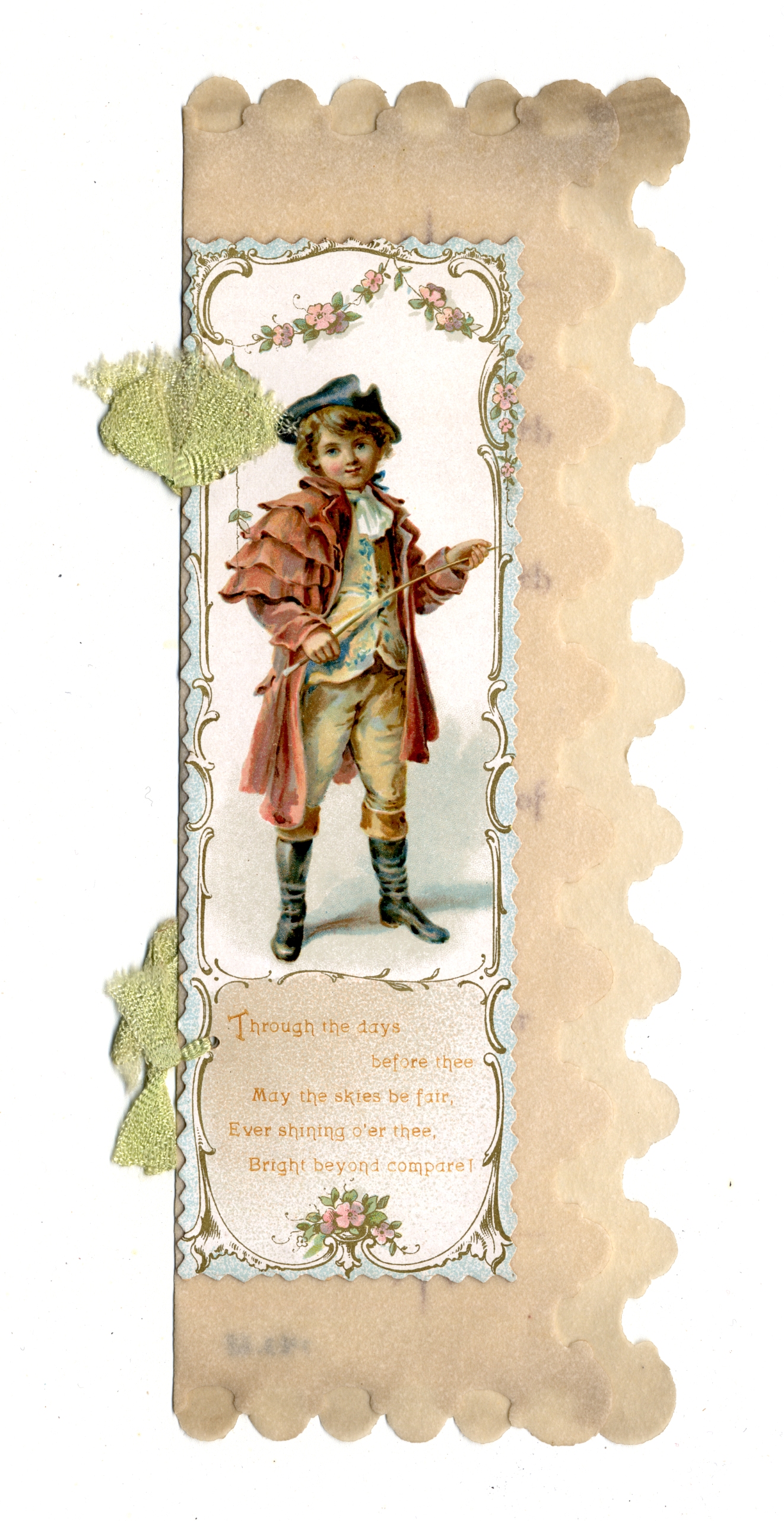 | Description | The “sentimental” Valentines of the 19th-century earned their name by frequently featuring Christian symbols, children, animals, and other saccharine images and themes. What made Valentines popular as greeting cards was their ability to convey strong emotions. Therefore, the designs of these Valentine types were meant to captivate an audience that found more wholesome love messages appealing. This card demonstrates the sentimental theme by featuring an image of a standing boy with flowers above him. Such a scene is meant to encourage warm and affectionate feelings. |