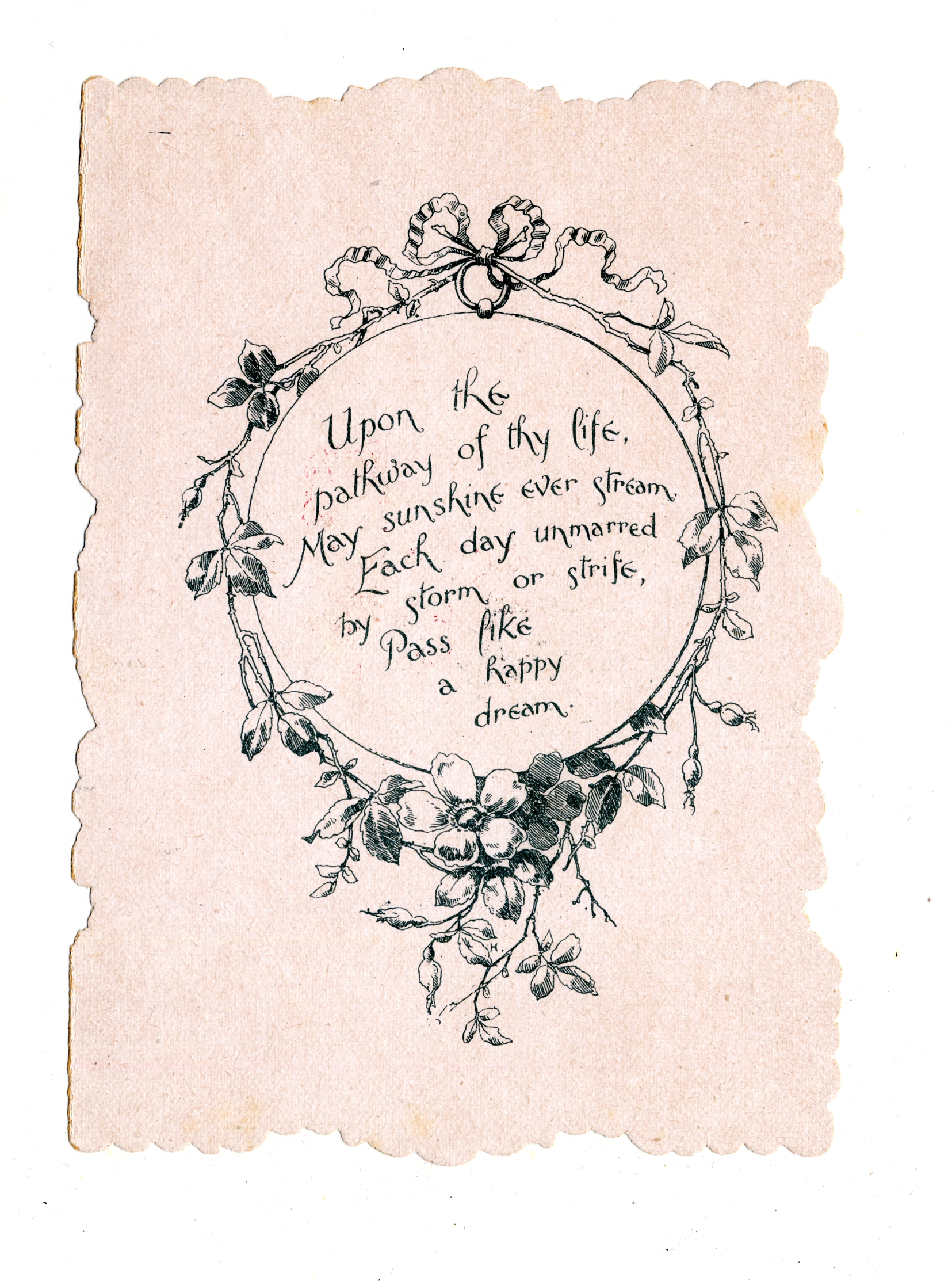 | Description | The “sentimental” Valentines of the 19th-century earned their name by frequently featuring Christian symbols, children, animals, and other saccharine images and themes. What made Valentines popular as greeting cards was their ability to convey strong emotions. Therefore, the designs of these Valentine types were meant to captivate an audience that found more wholesome love messages appealing. This card demonstrates the sentimental theme by featuring a ring covered with bows and flowers with a love message in the center. Such an image is meant to encourage warm and affectionate feelings. |