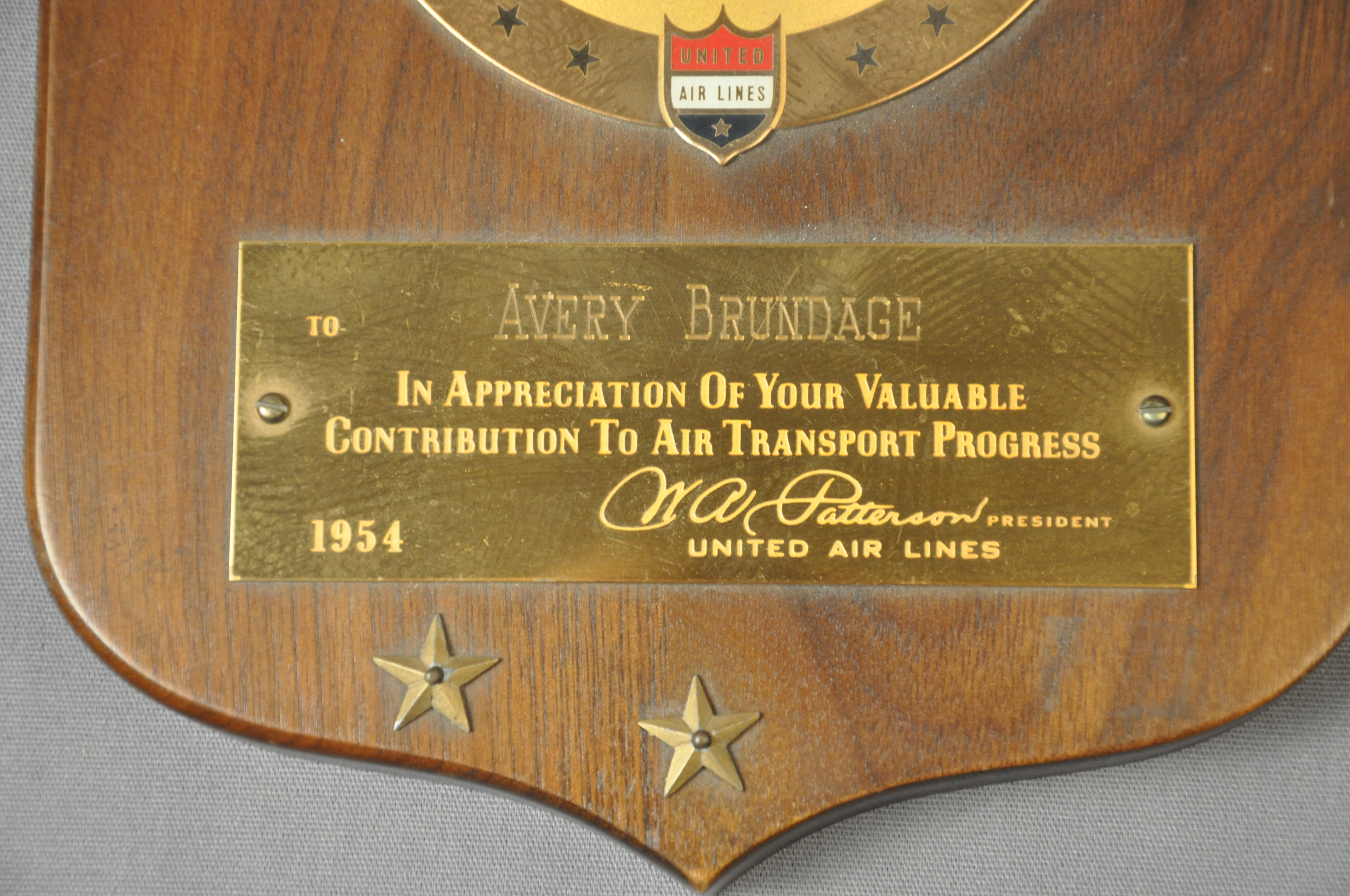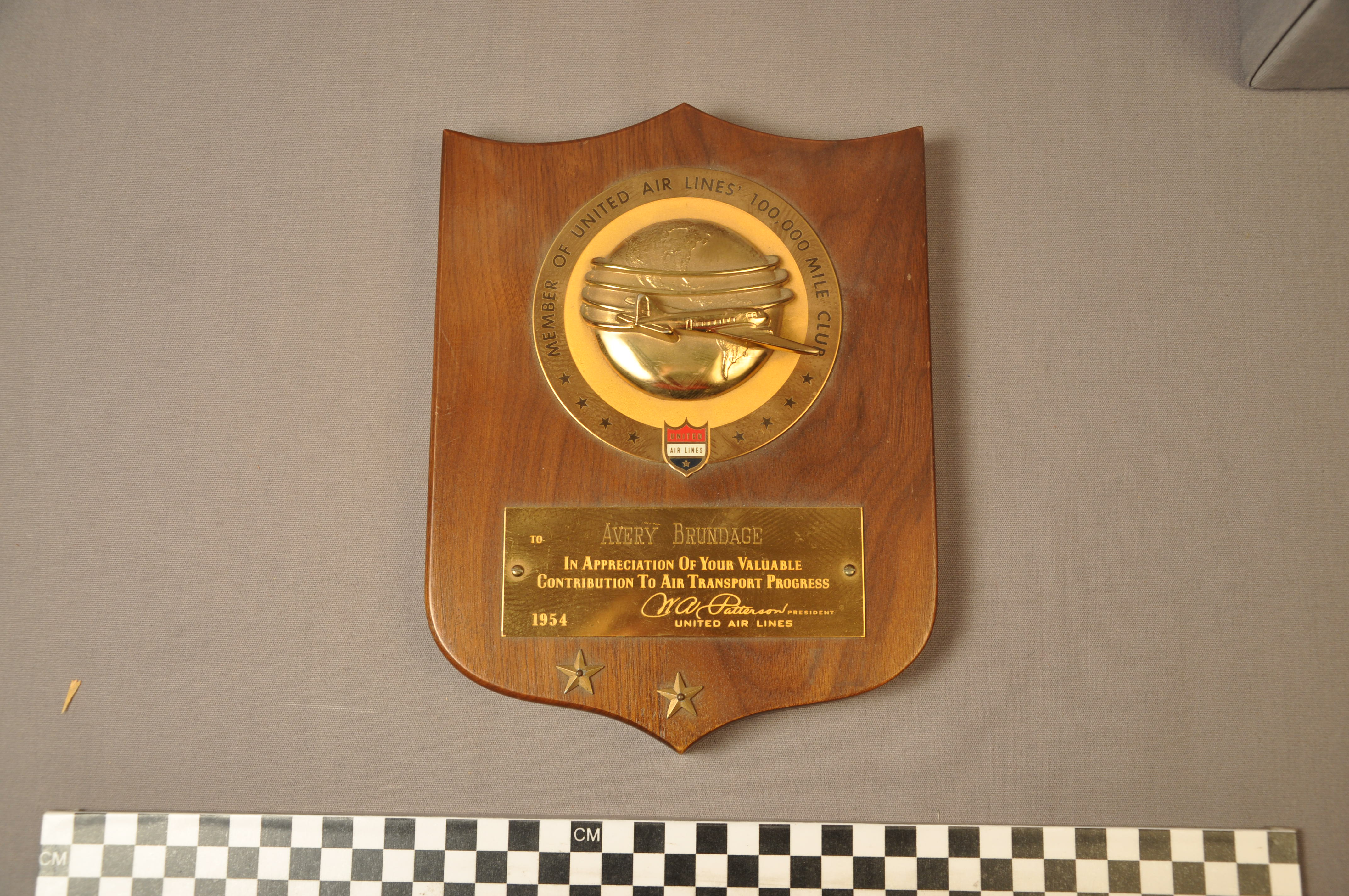 | Artifact Identification | Plaque: Member of United Air Lines 100,000 Mile Club (1977.01.0459) |