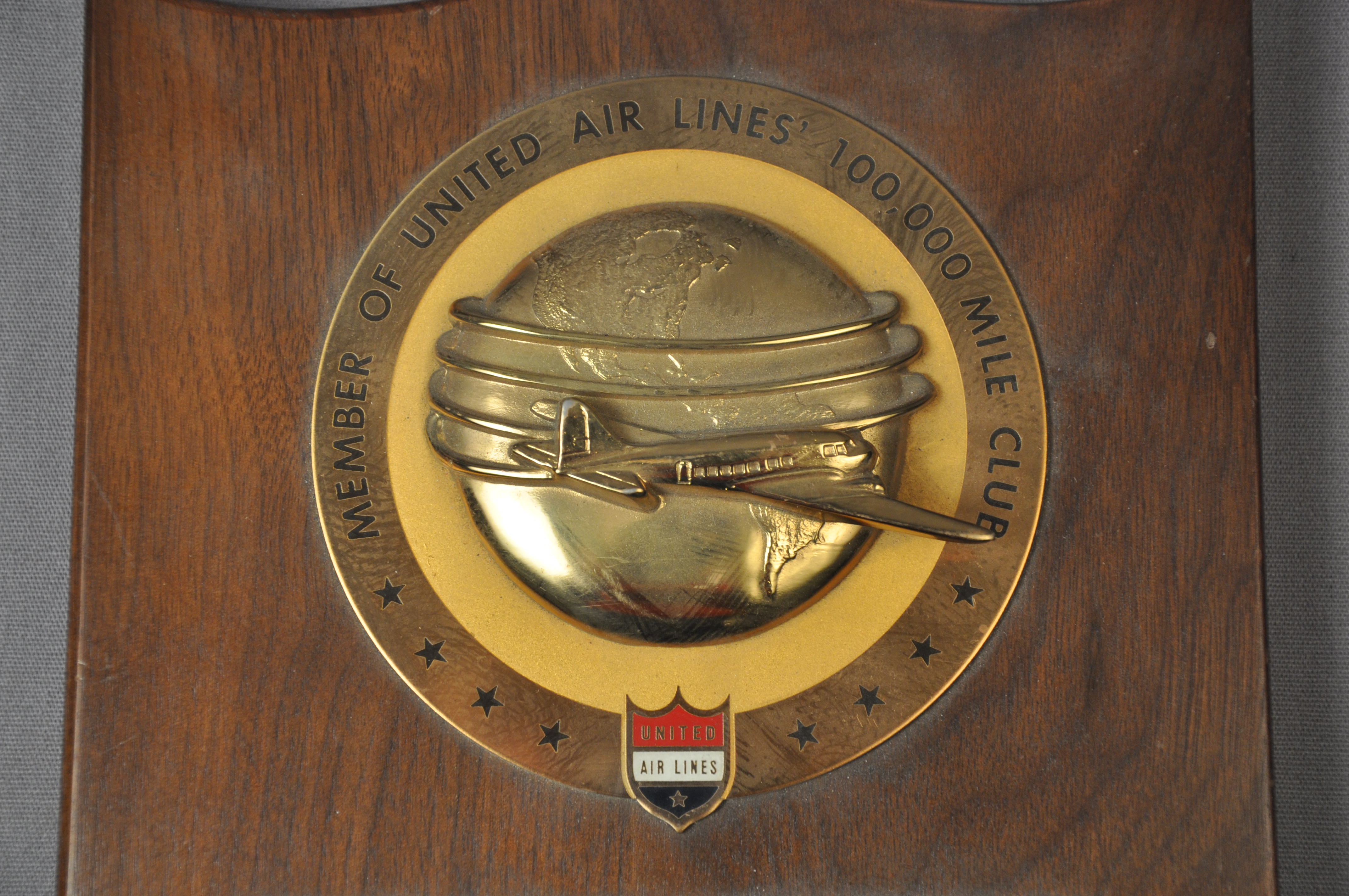 Plaque: Member of United Air Lines 100,000 Mile Club