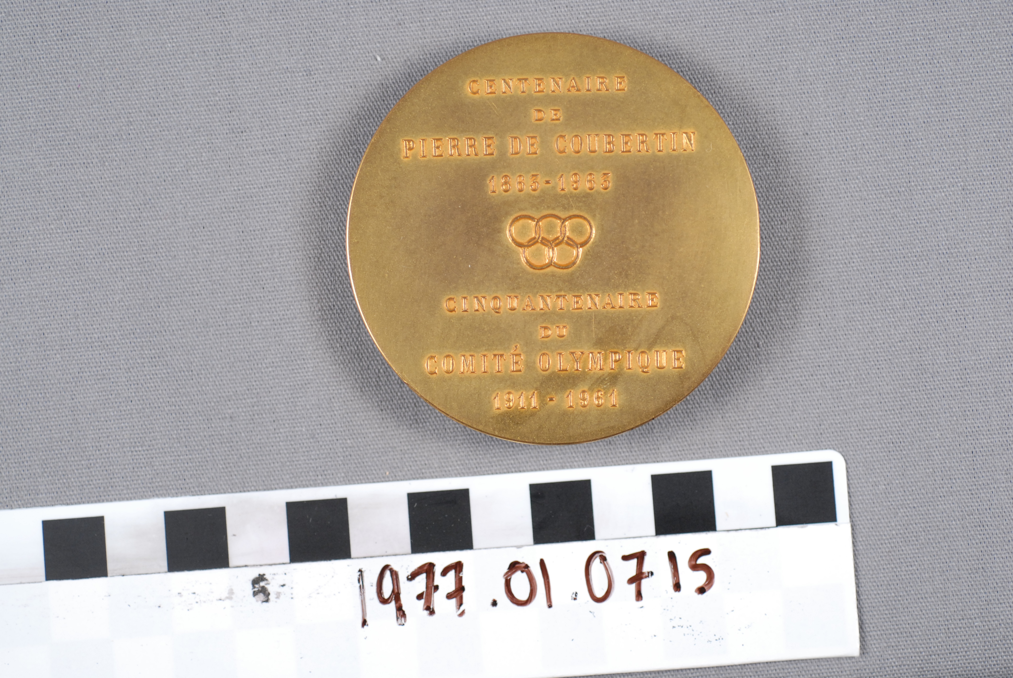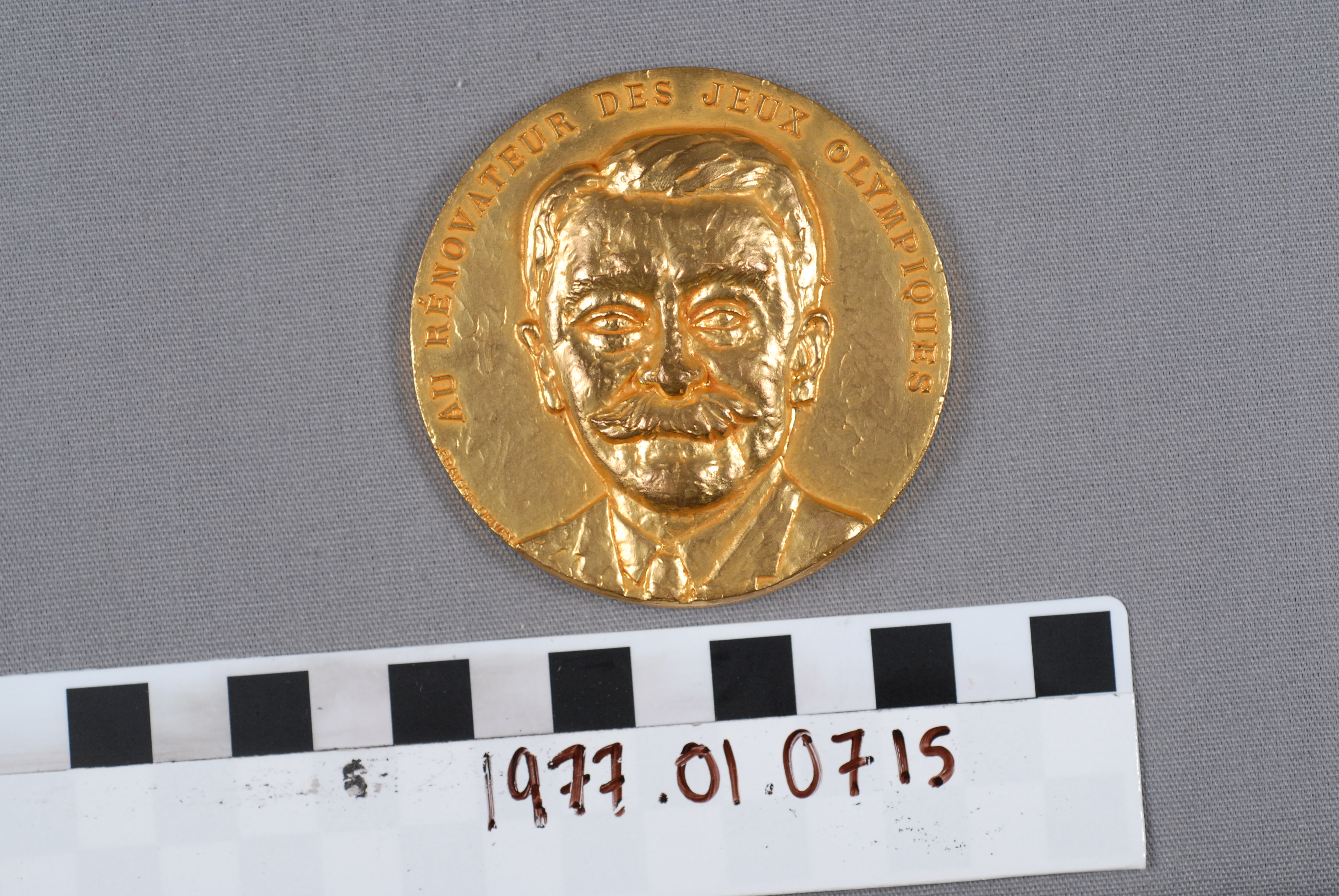 | Artifact Identification | Olympic Commemorative Medallion: Pierre de Coubertin "Au Renovateur Des Jeux Olympiques" (1977.01.0715) |