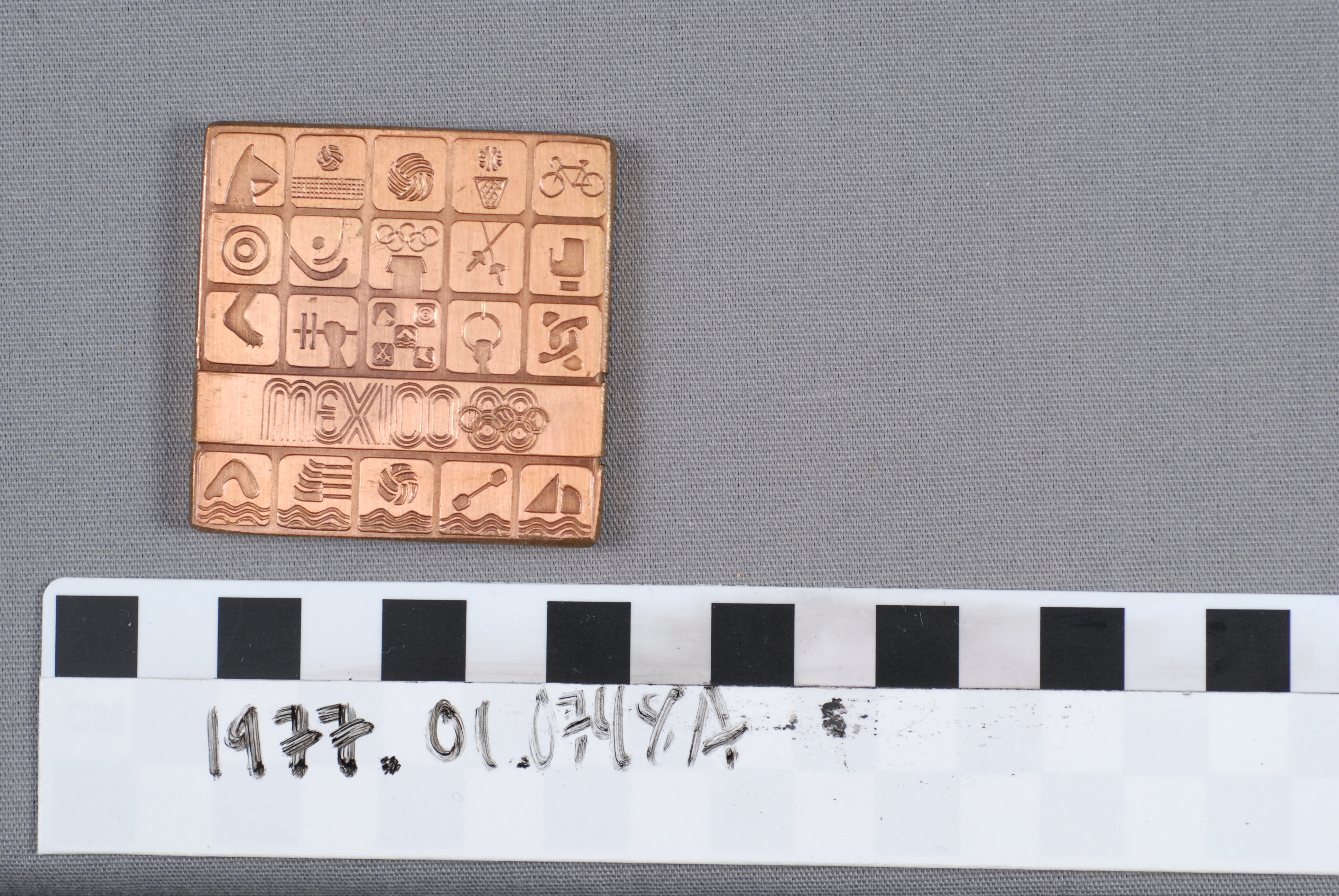 | Artifact Identification | Olympic Commemorative Plaque: "Juegos De La XIX Olympiada, Mexico" (1977.01.0748A) |