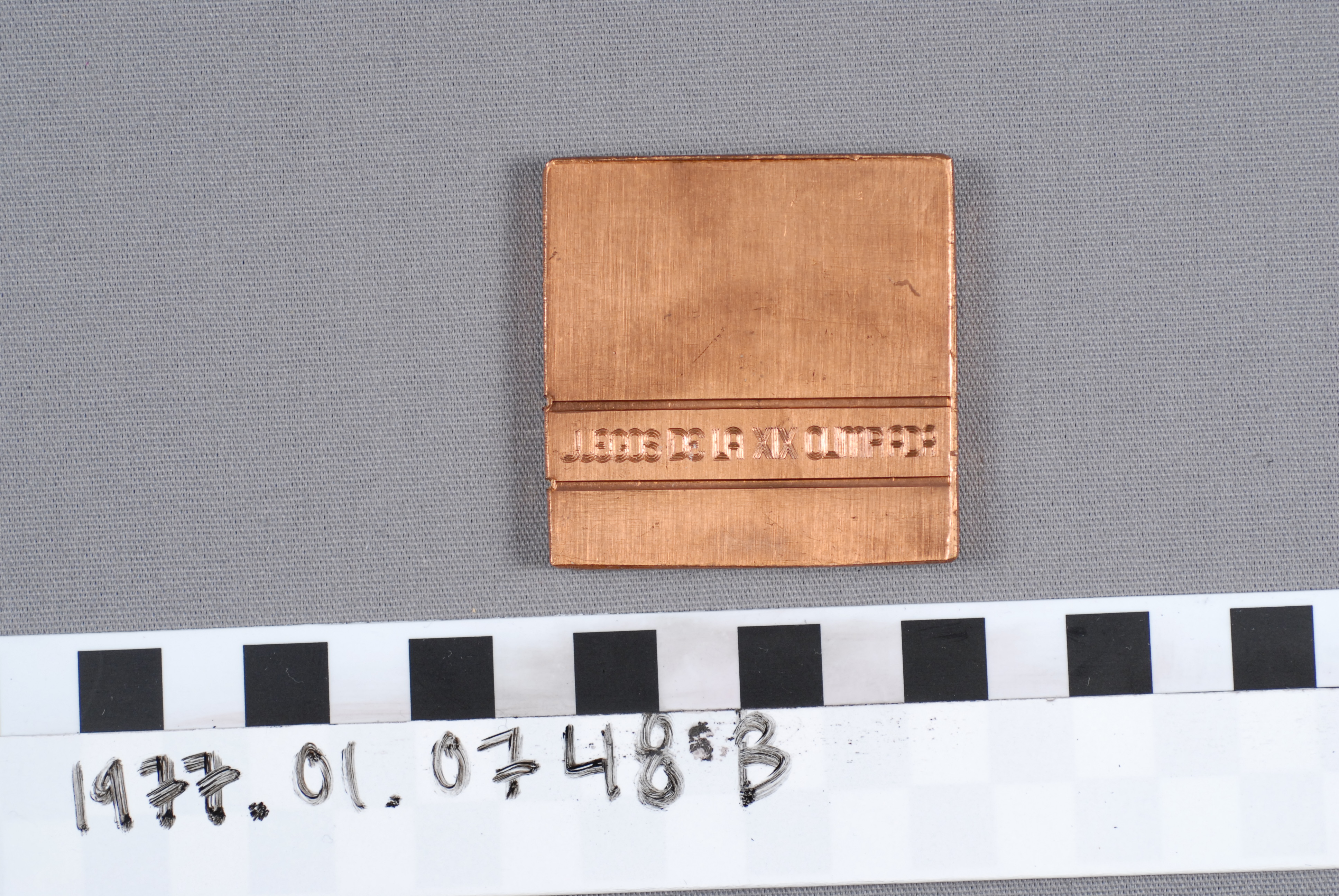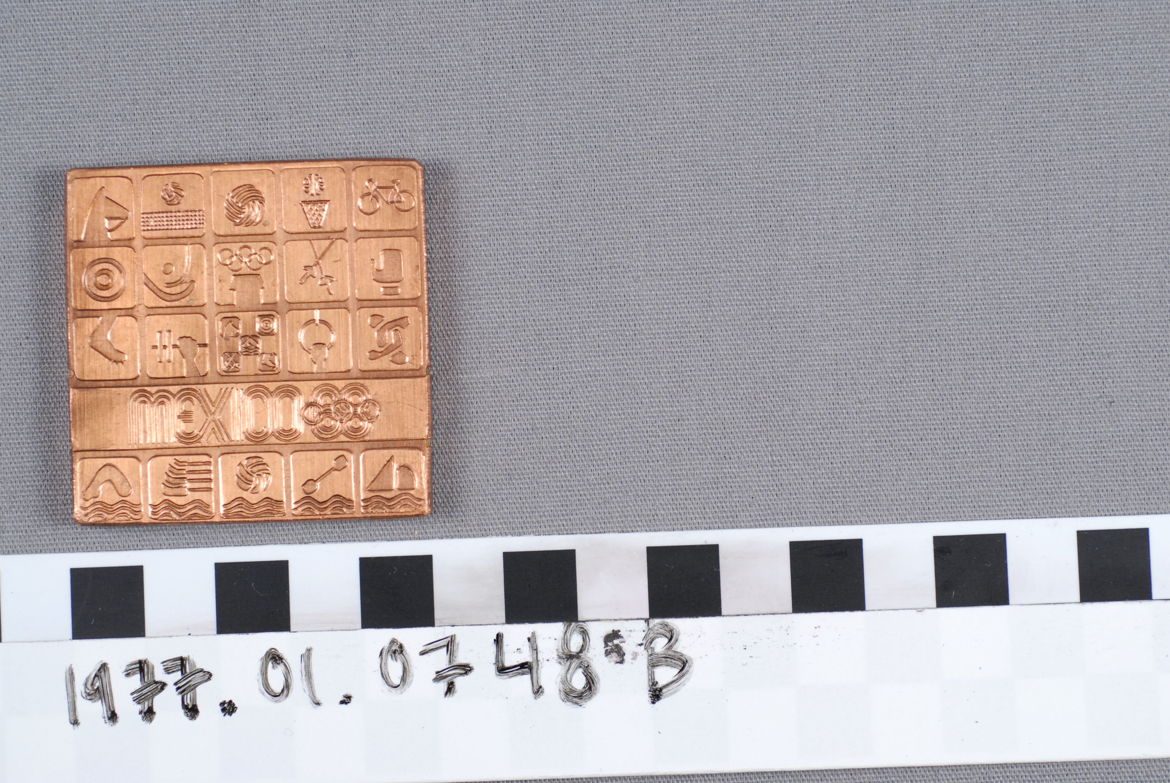 | Artifact Identification | Olympic Commemorative Plaque: "Juegos De La XIX Olympiada, Mexico" (1977.01.0748B) |