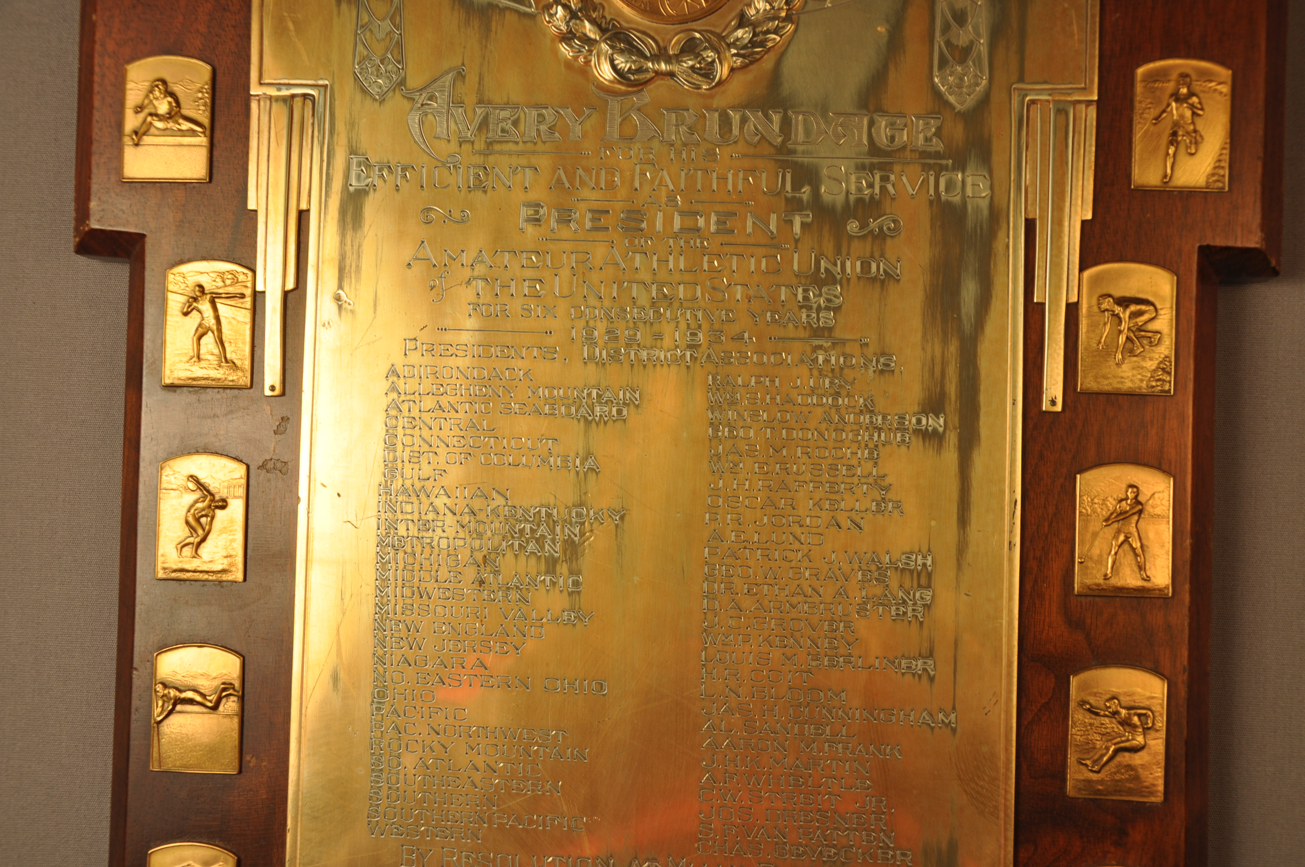 | Artifact Identification | Plaque: Amateur Athletic Union (1977.01.0763) |