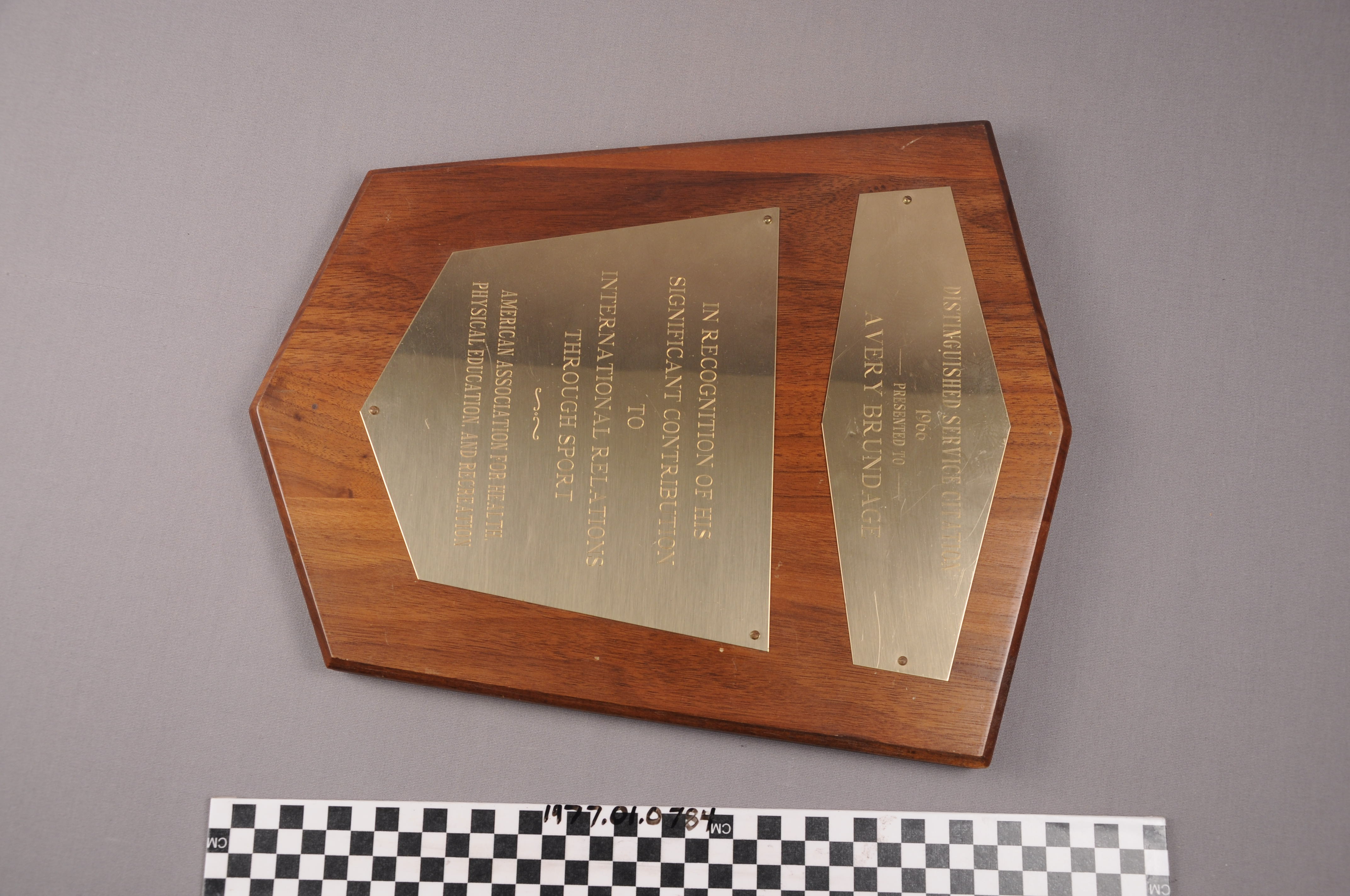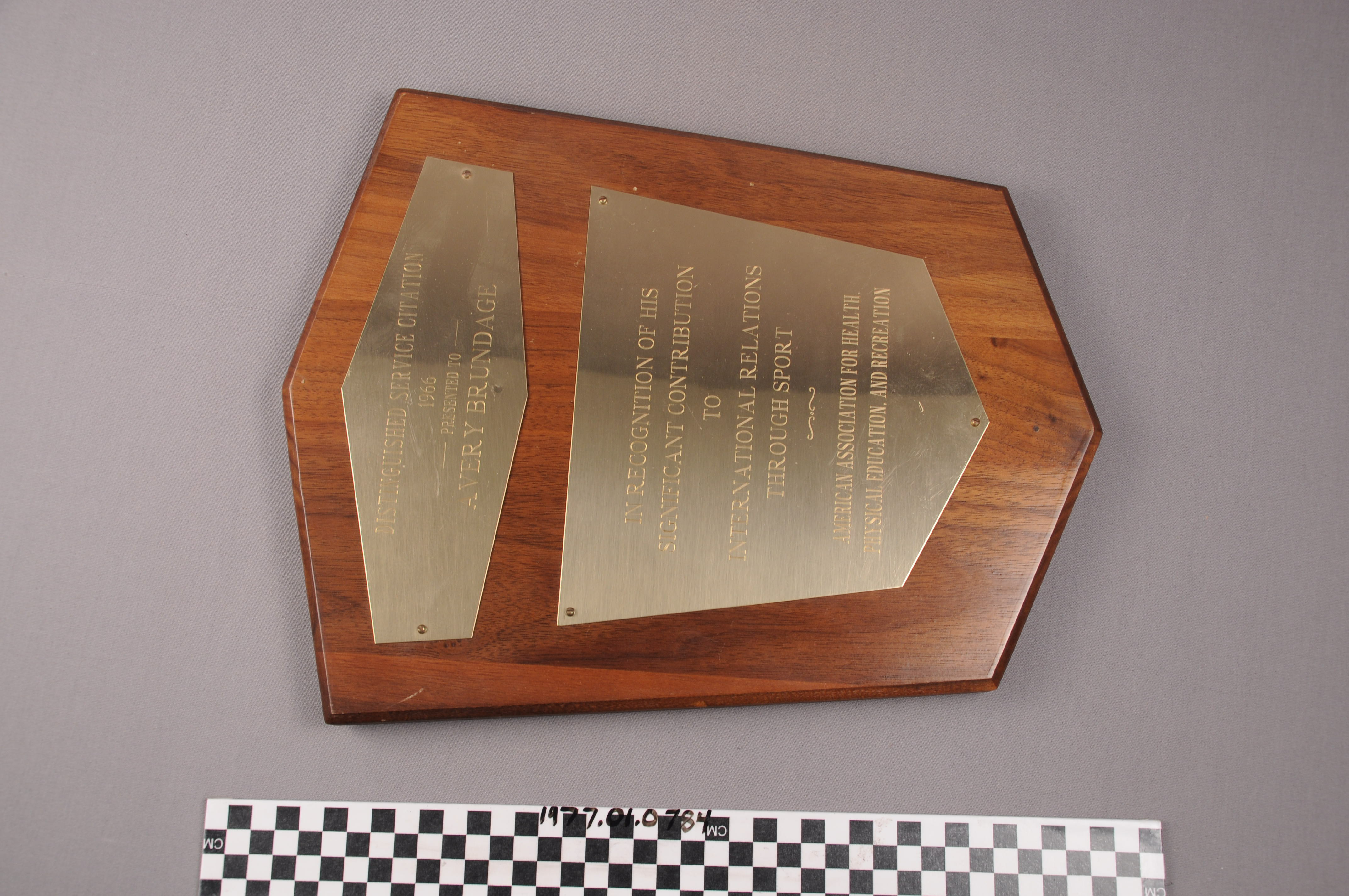 | Artifact Identification | Plaque: Distinguished Service Citation, American Association for Health, Physical Education, and Recreation (1977.01.0784) |