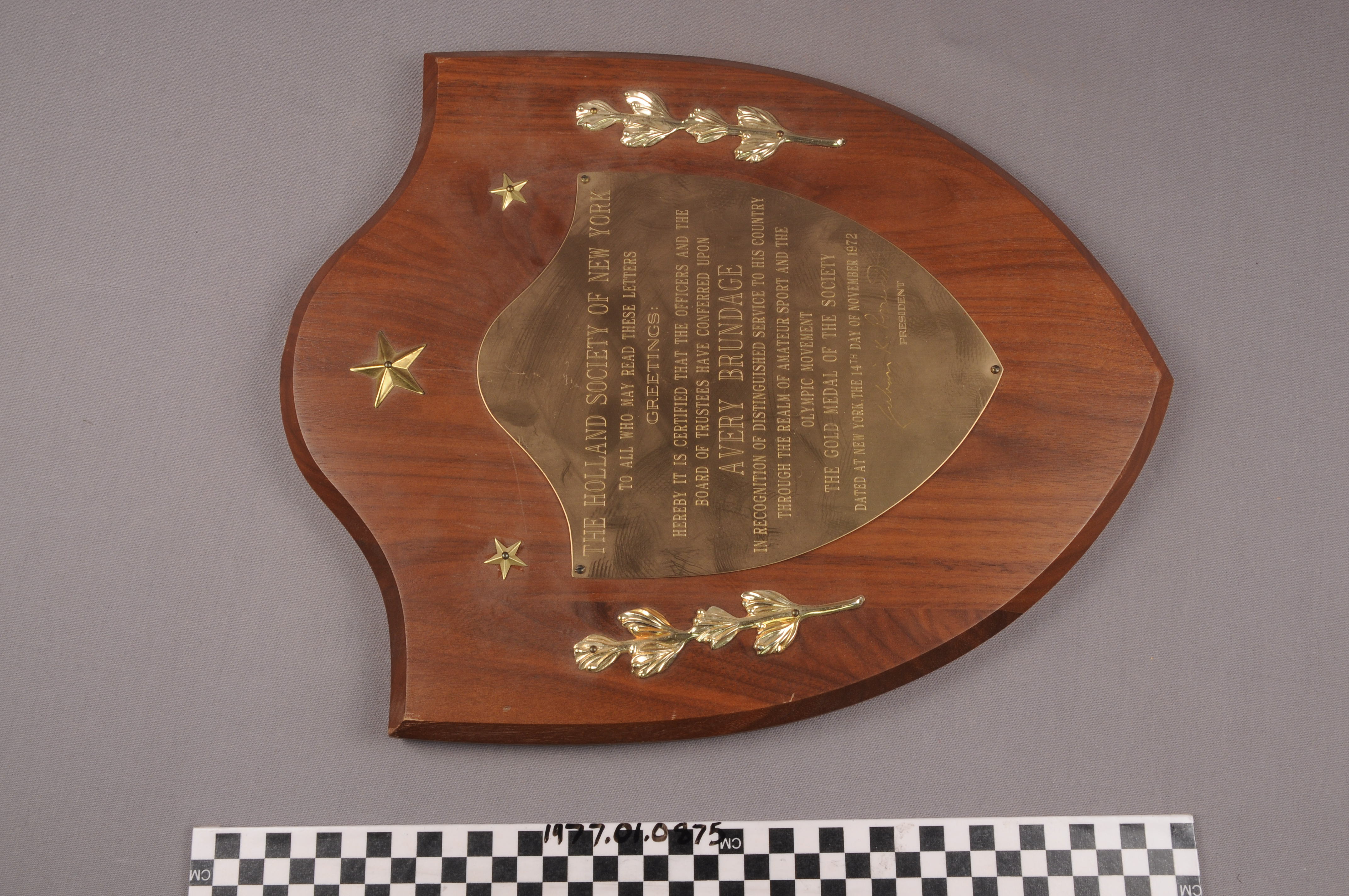 | Artifact Identification | Plaque: The Holland Society of New York Gold Medal Presentation (1977.01.0875) |