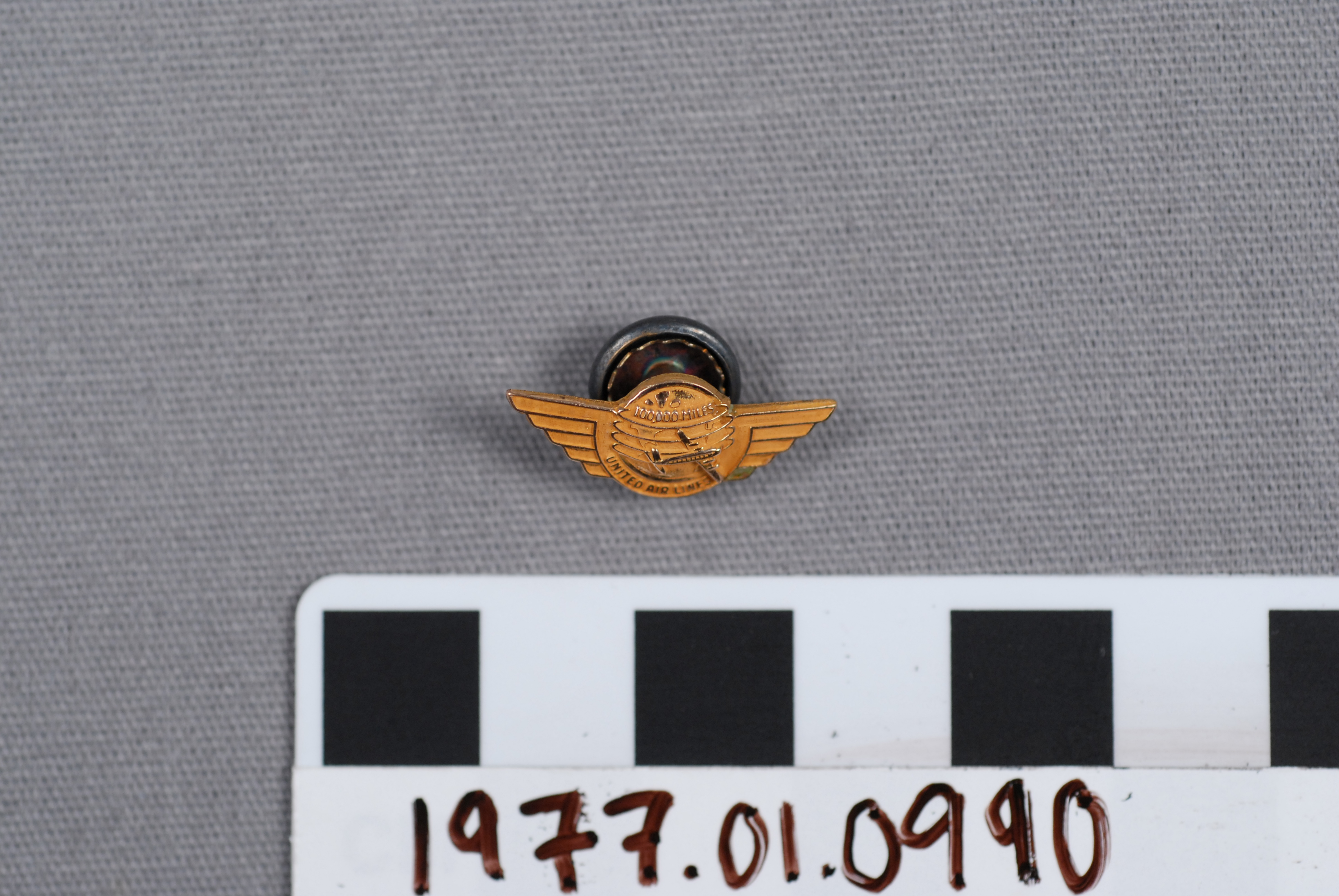 | Artifact Identification | Lapel Pin: United Air Lines 100,000 Miles (1977.01.0990) |
