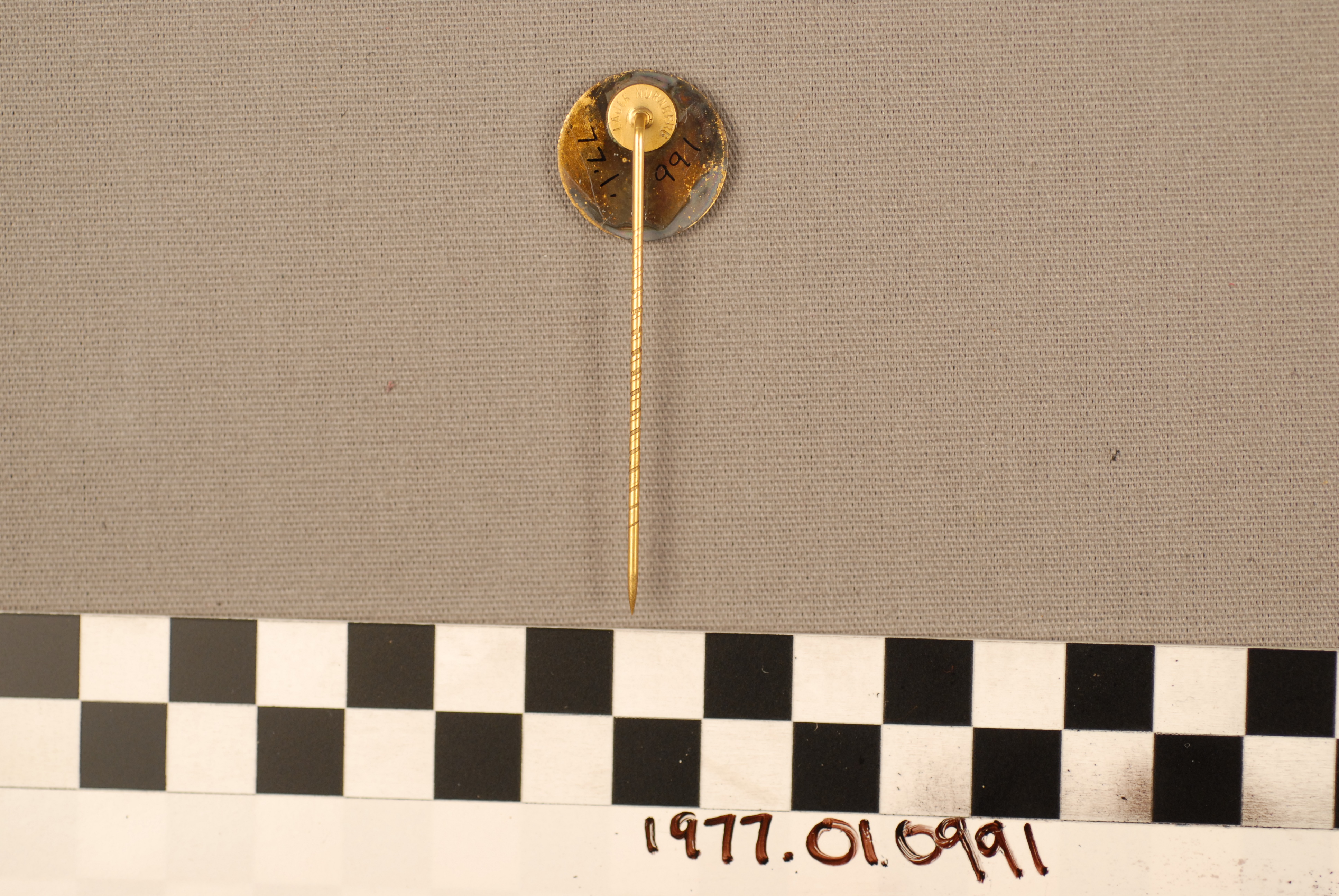 | Artifact Identification | Commemorative Stick Pin: "D.S.B." (1977.01.0991) |