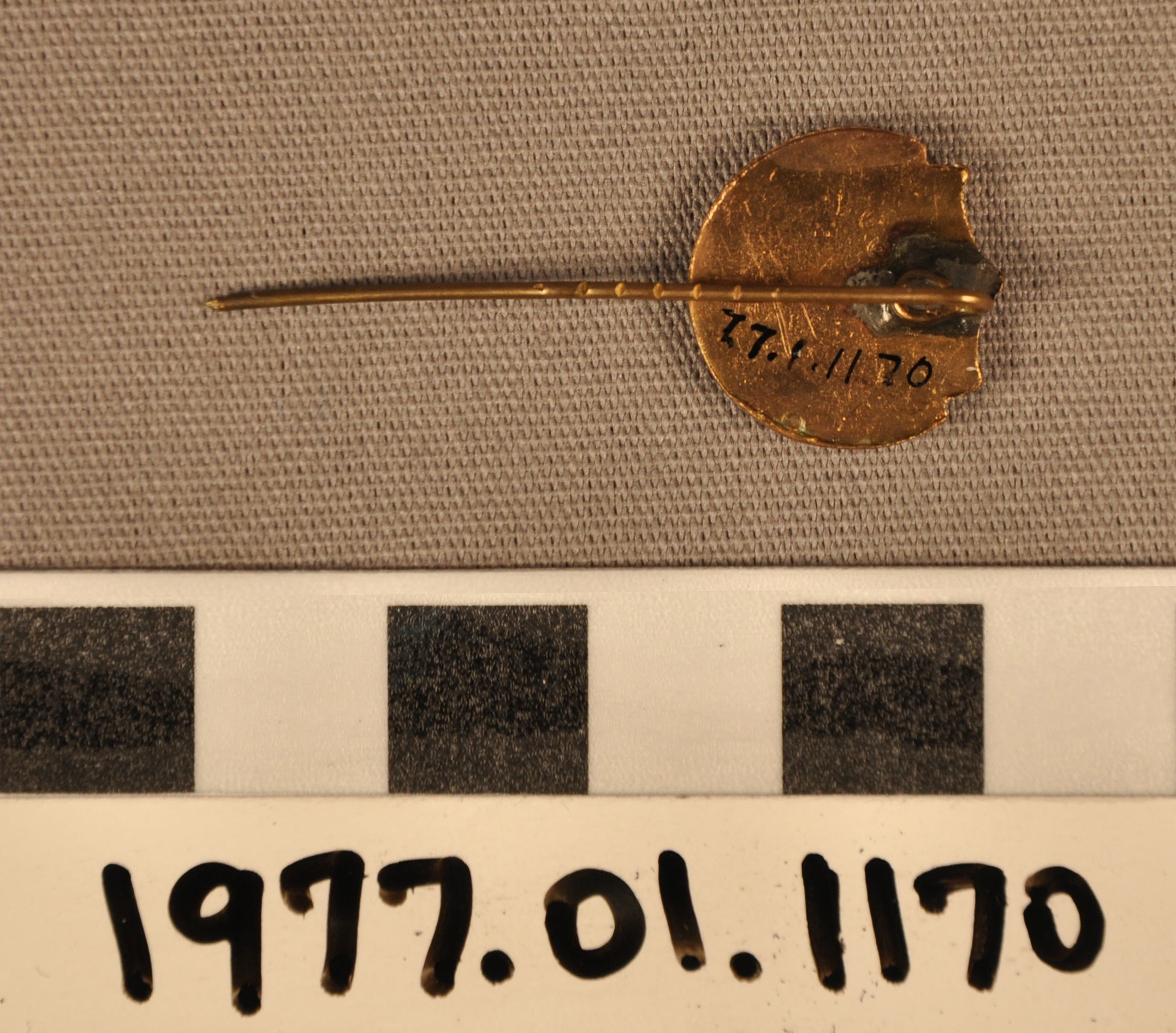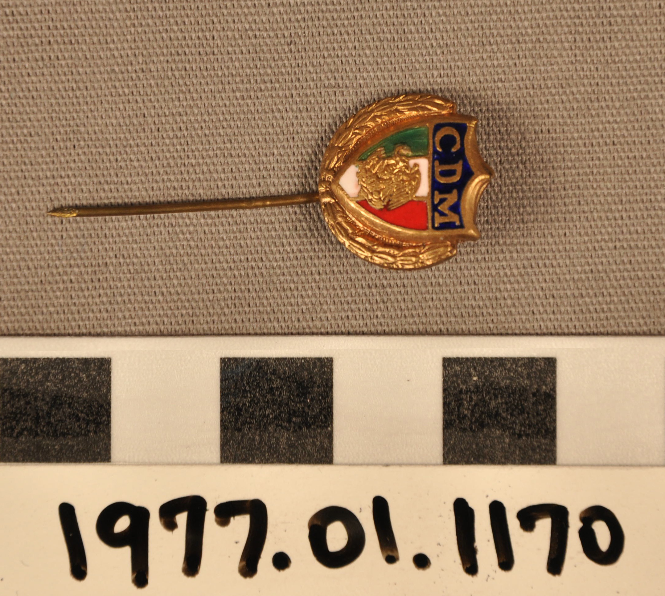 | Artifact Identification | Commemorative Stick pin: "C.D.M." (1977.01.1170) |