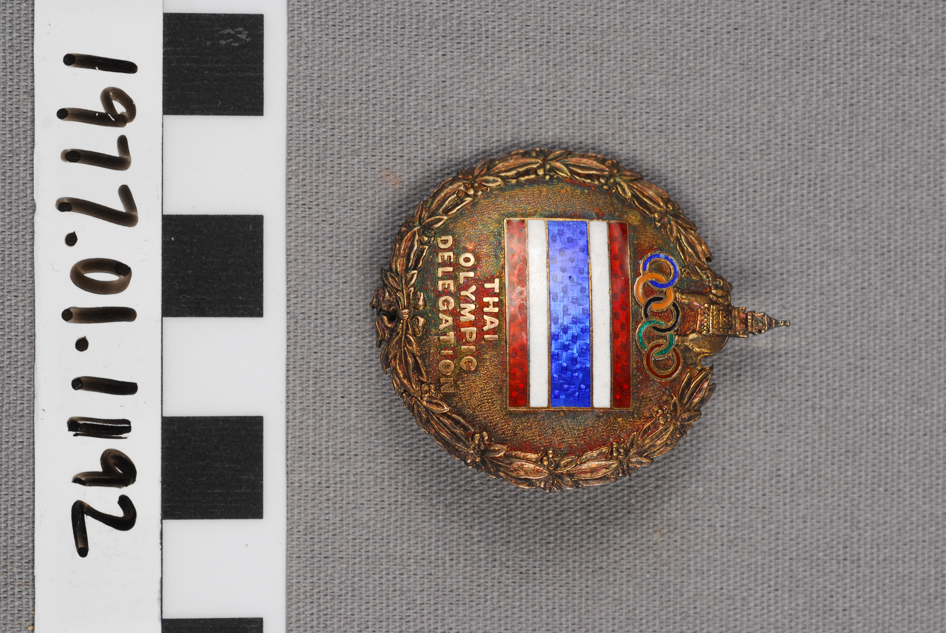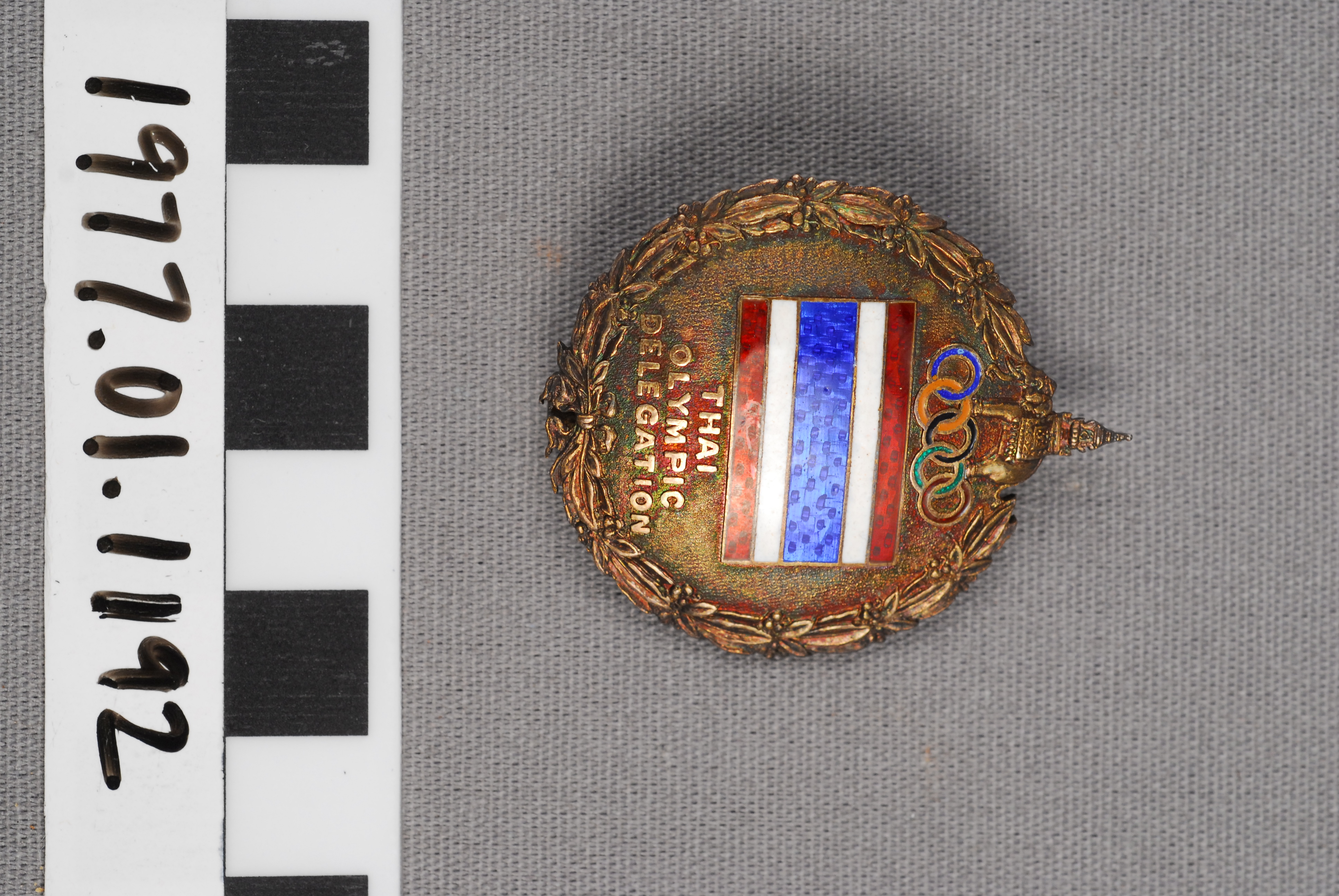 | Artifact Identification | Commemorative Pin: Thai Olympic Delegation, III Asian Games (1977.01.1192) |