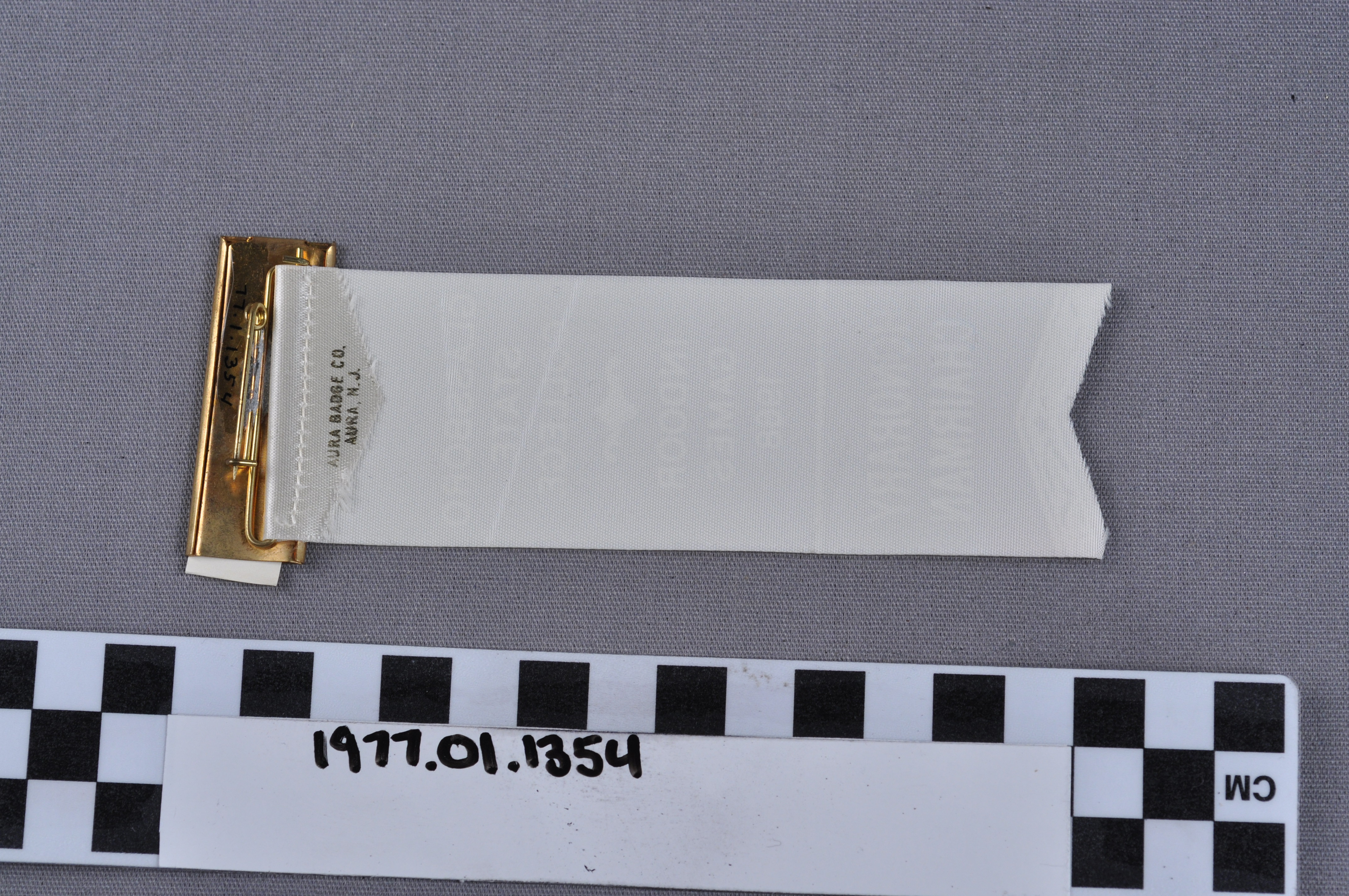 Artist/Maker | Printed on reverse of ribbon: Aura Badge Company, Aura, New Jersey. |