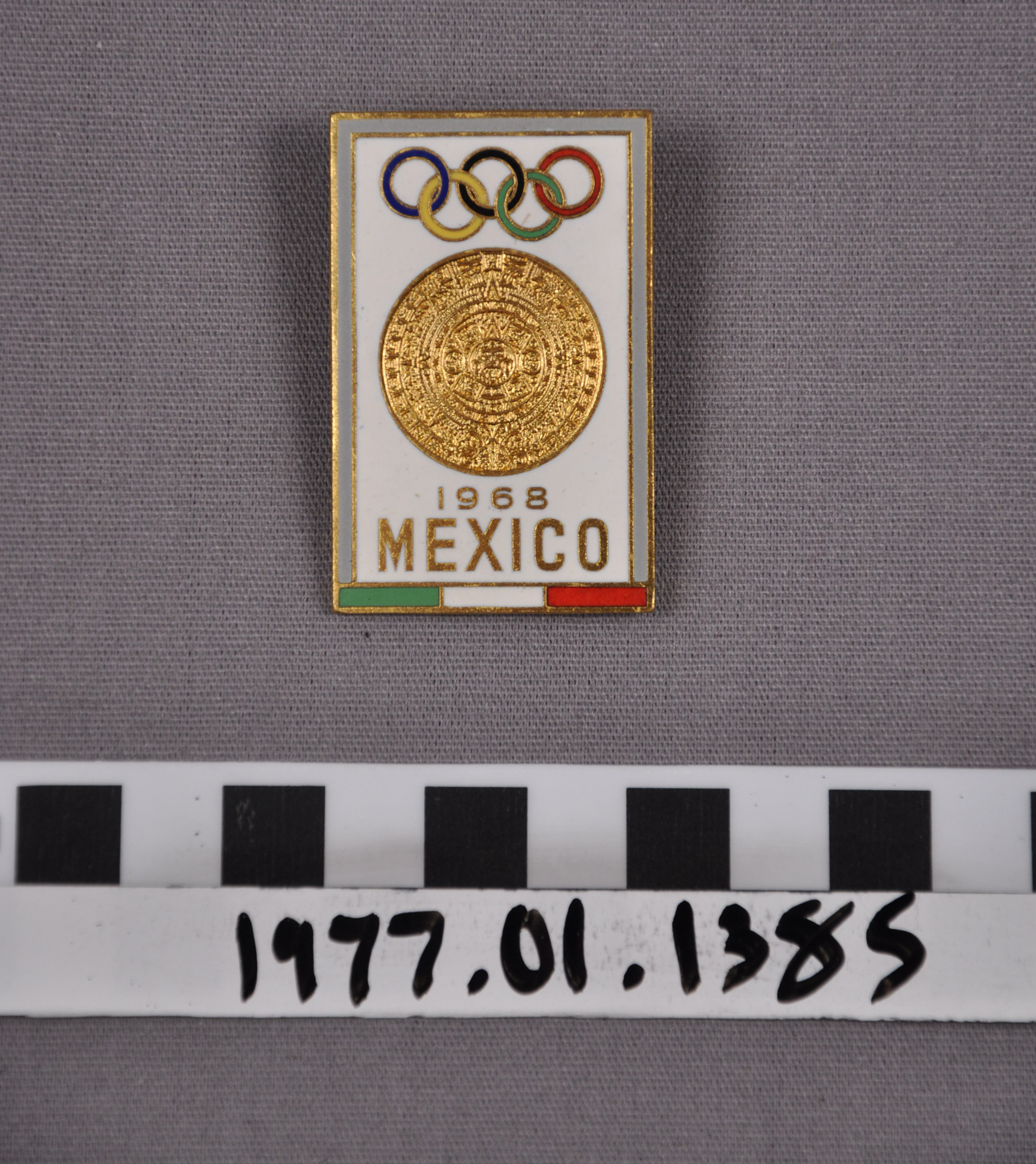 | Artifact Identification | Commemorative Pin for XIX Summer Olympics in Mexico City (1977.01.1385) |