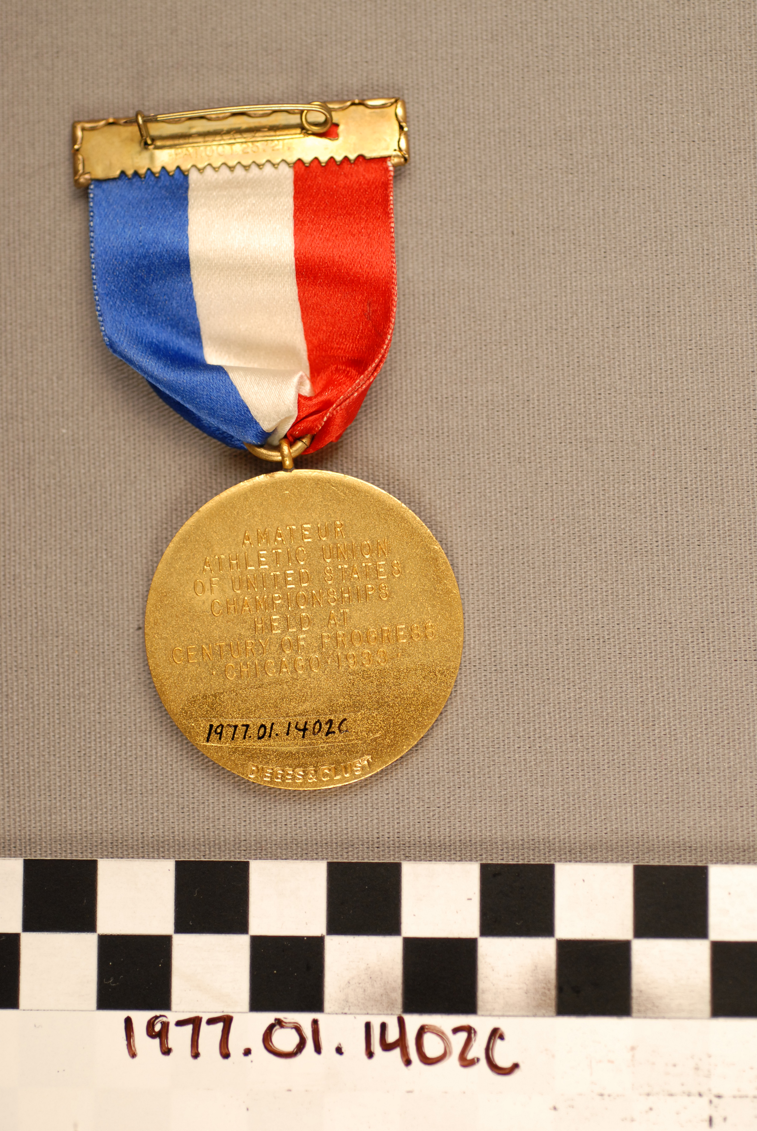 | Artifact Identification | Officials Badge: Century of Progress, Amateur Athletic Union of United States Championships (1977.01.1402C) |