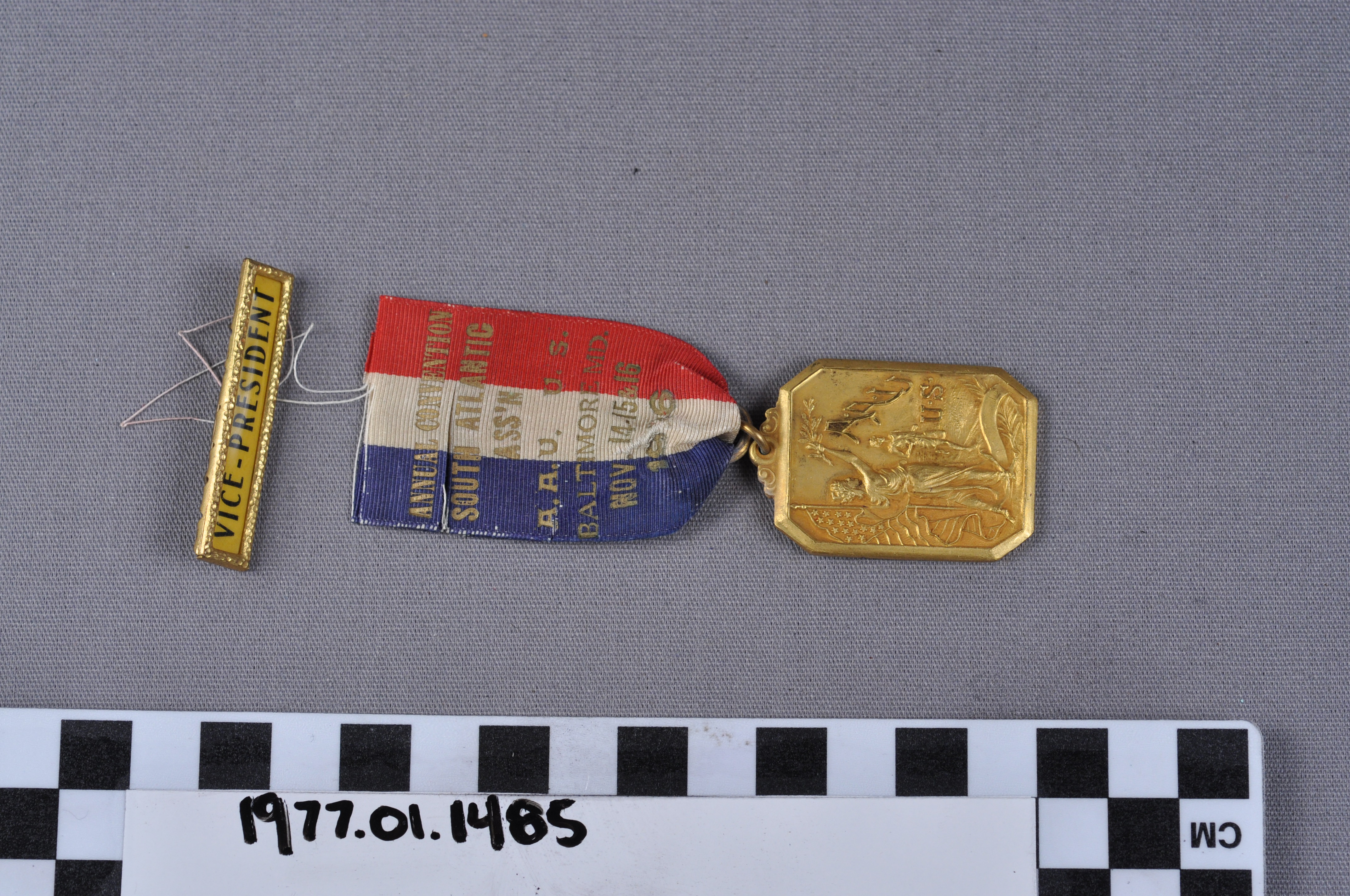 | Artifact Identification | Vice President Badge: Amateur Athletic Union Annual Convention, South Athletic Association (1977.01.1485) |